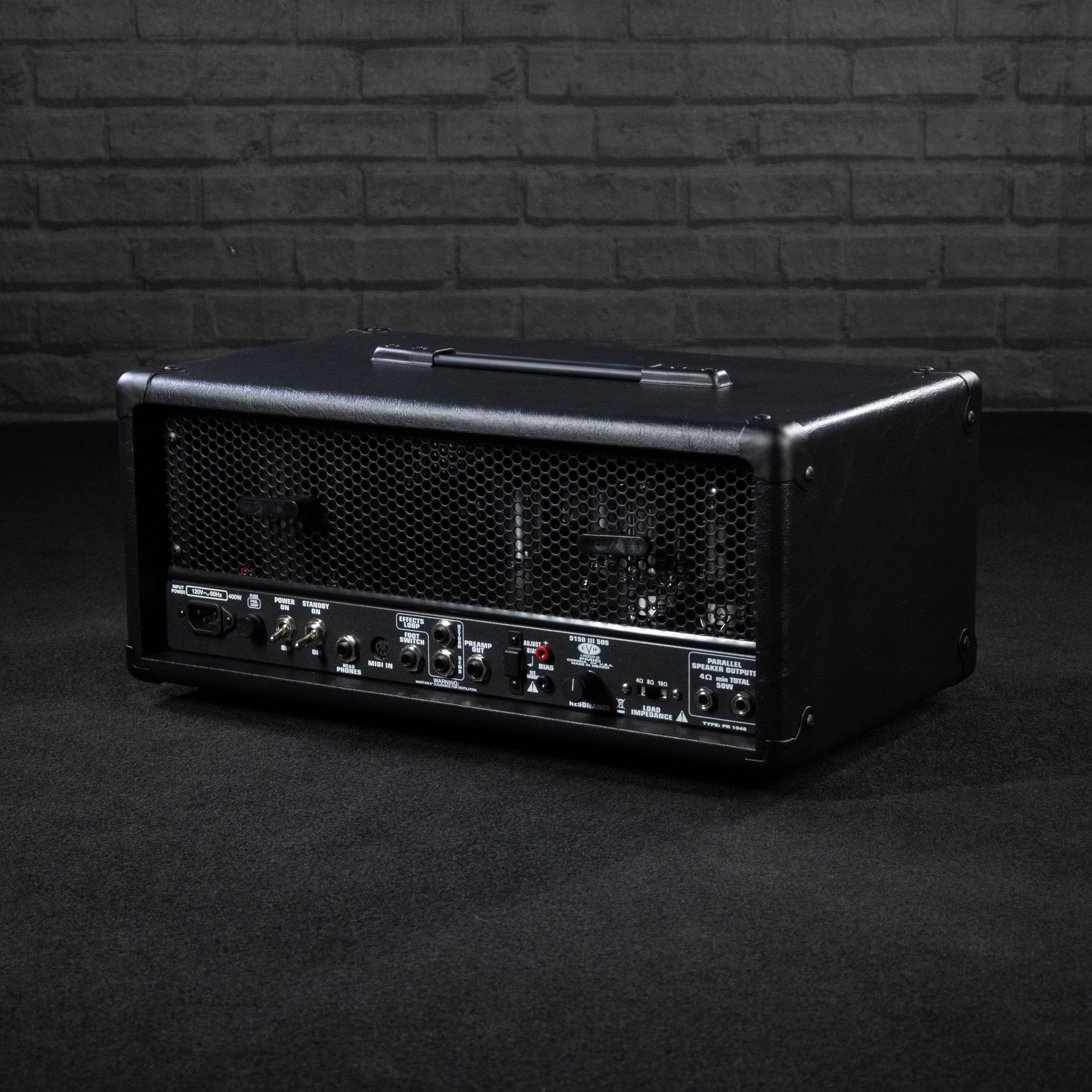 Tweaked to meet Eddie’s touring requirements, this 50-watt head delivers a full-spectrum of tone. Channel one powers crystal-clear clean tone; channel two features increased gain for greater sustain and is re-voiced for improved low-mid frequency definition; channel three also has improved range for the “low” control and oozes with increased liquid gain. Channels one and two each have dual concentric gain/volume controls, with shared EQ (low, mid, high). Channel three has its own gain, volume and EQ (low, mid, high) controls. All three channels also have global presence and global resonance controls.