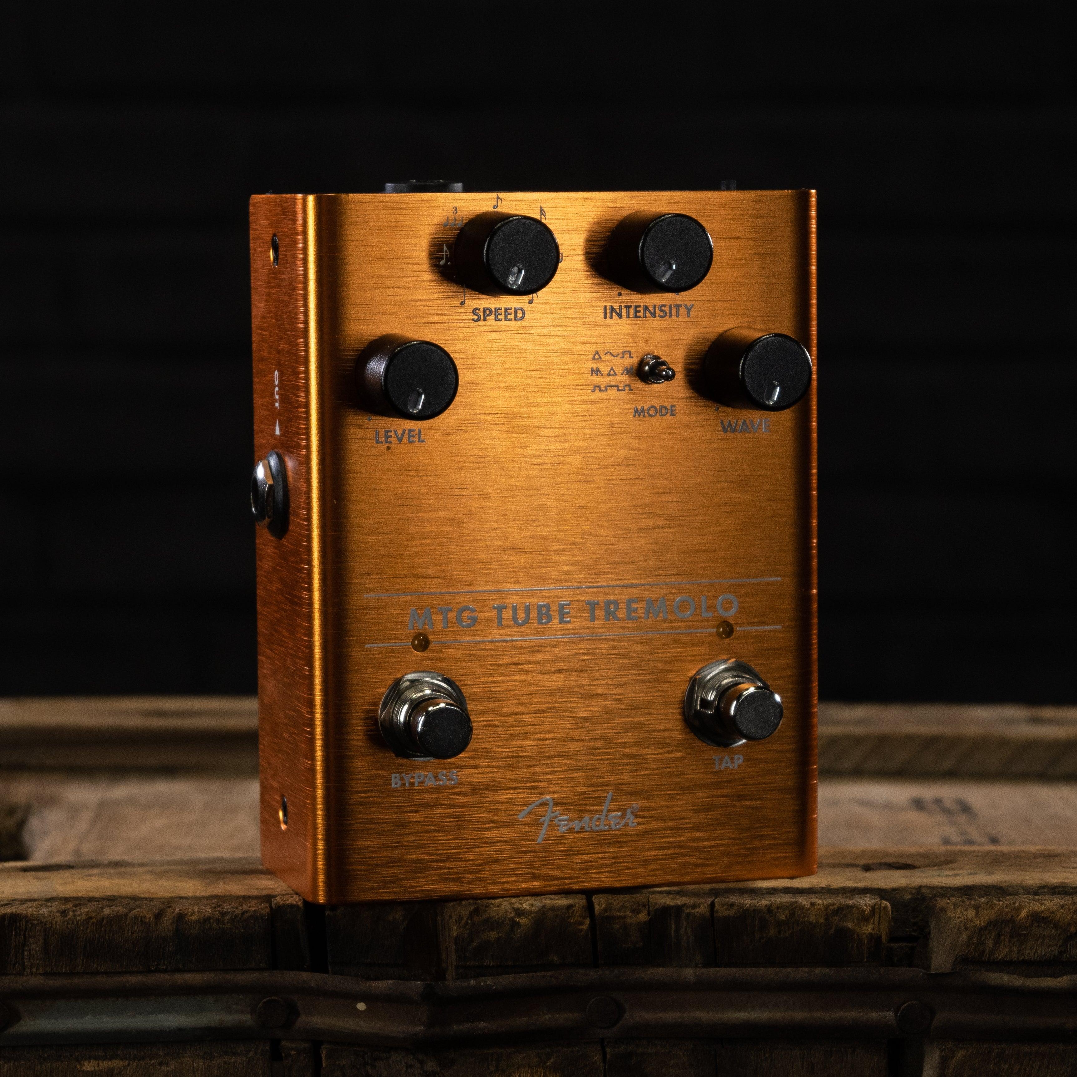 The name Fender is synonymous with real tube tone. The MTG Tube Tremolo brings the hypnotic sound typically found in vintage amps and conveniently places it into a stomp box based around a genuine, U.S. made NOS 6205 preamp tube. The pedal features Level, Intensity, and Speed controls, three oscillator wave shapes, and a dedicated tap tempo foot switch which allows access to various note subdivisions.