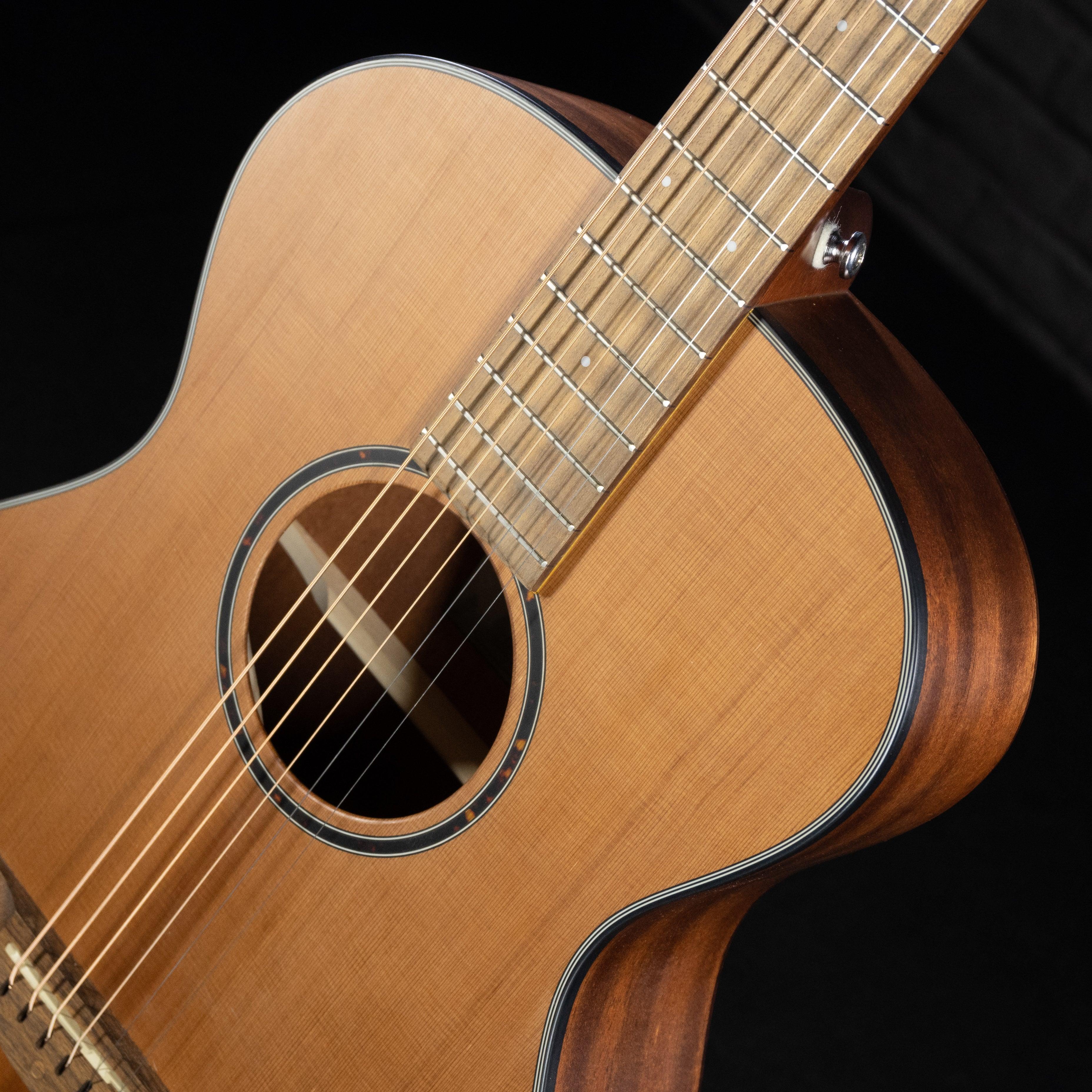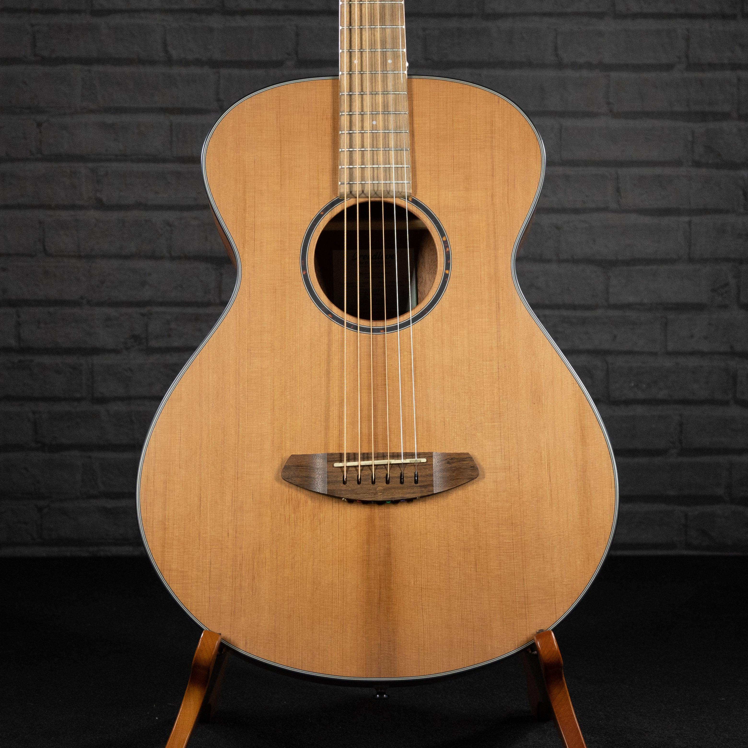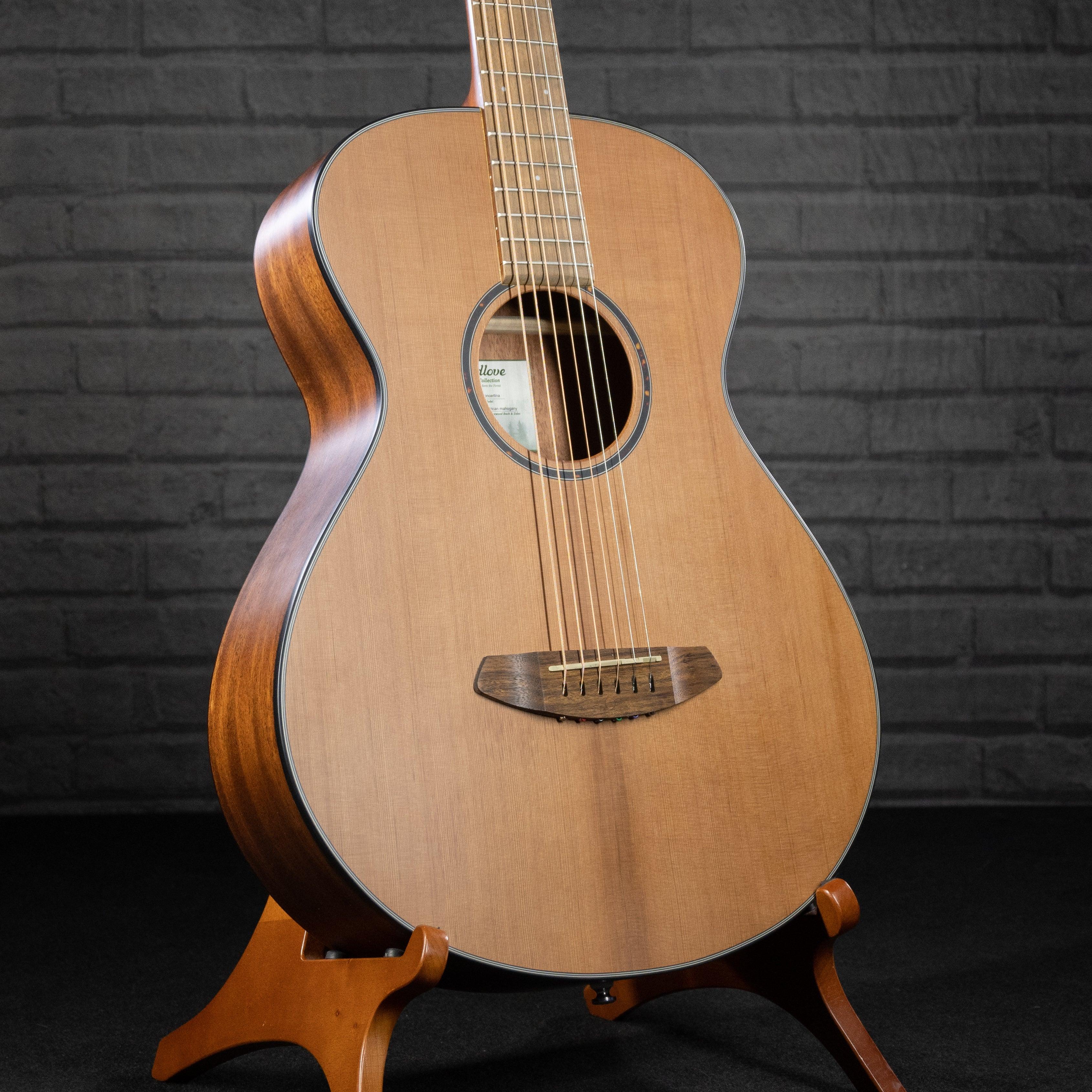 Sometimes undersung in the guitar world, western red cedar has a glowing warmth that responds quickly to fingerstyle play while offering a rosy definition to relaxed strumming. It finds a perfect duet partner in the clarity and cutting power of African mahogany. In a comfortable, easy to play, short-scale 12-fret parlor-like Concertina format, red cedar, simply put, is a folkie’s dream. This solid top, slim-necked Breedlove Discovery S Concertina, which features sustainable earth-conscious, sonically superior EcoTonewood technology, is spartan and gorgeous, with a striking faux tortoise rosette setting off the simple, iridescent natural beauty of the cedar grain. Discover the Breedlove ECO Collection—where the guitar meets the forest.