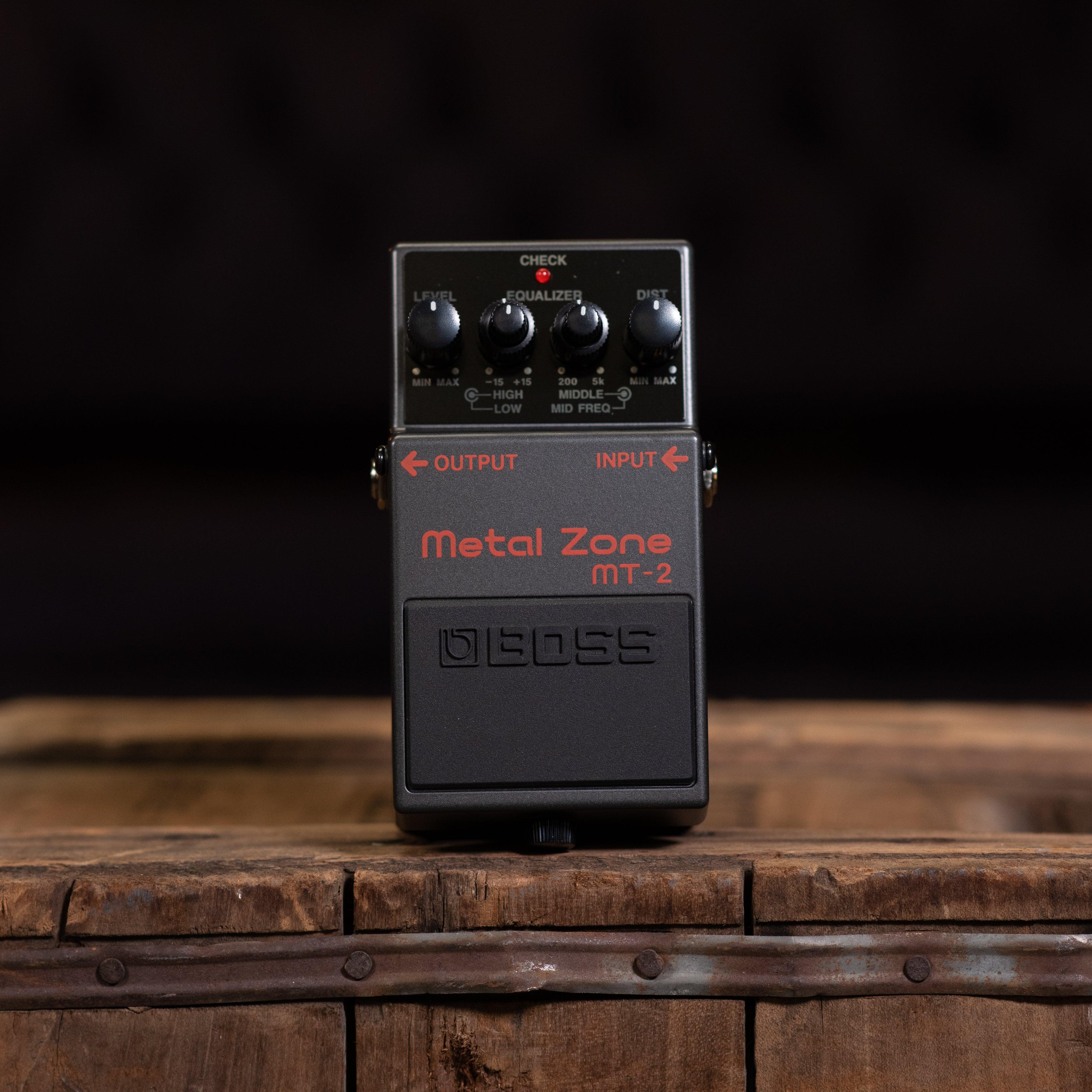 El MT-2 Metal Zone es uno de los pedales más populares de BOSS. Este stompbox proporciona algunos de los tonos de distorsión más exagerados y locos del mundo, con medios y graves enormes y un sonido ultrasaturado.