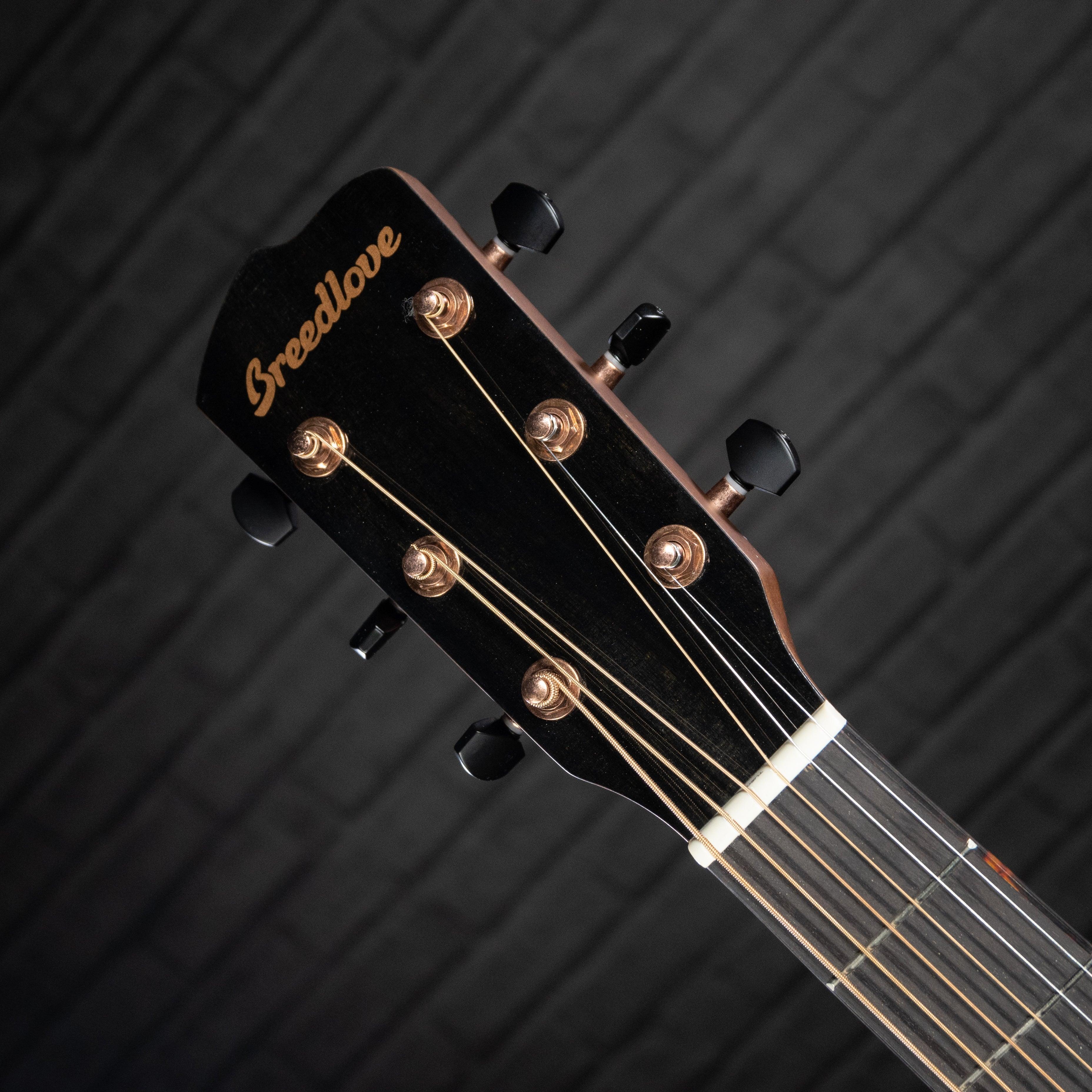 Myrtlewood, aunque originario de la costa del Pacífico de Oregón, podría ser la más "exótica" de todas las maderas tonales, ya que captura los graves profundos del palisandro, la calidez pura de la caoba y los agudos dulces y vidriosos del arce en un paquete exquisito y visualmente encantador: aquí bajo un acabado brillante Tiger's Eye con ribete de tortuga igualmente cautivador. Este concierto acústico eléctrico sostenible Pursuit Exotic S tiene que ver con la versatilidad musical de marca registrada y la comodidad de tocar personal. Elige durante horas, rasguea para siempre, deja que tus sueños deambulen. Un mástil rápido y delgado y un acceso recortado suave a cada traste permiten que tus dedos y tu corazón tengan su opinión. Suene mejor que nunca con la tecnología ecológicamente superior EcoTonewood de Breedlove. Ponte feroz con un tigre