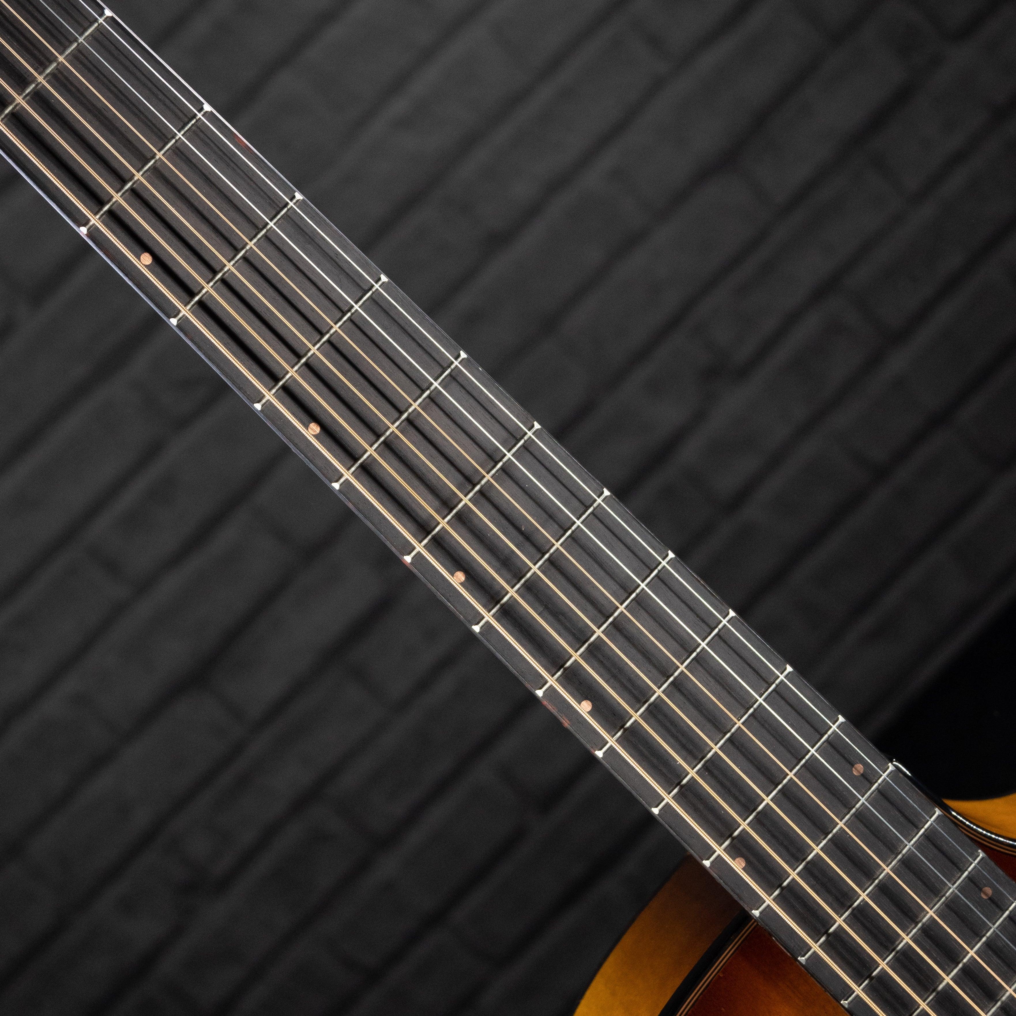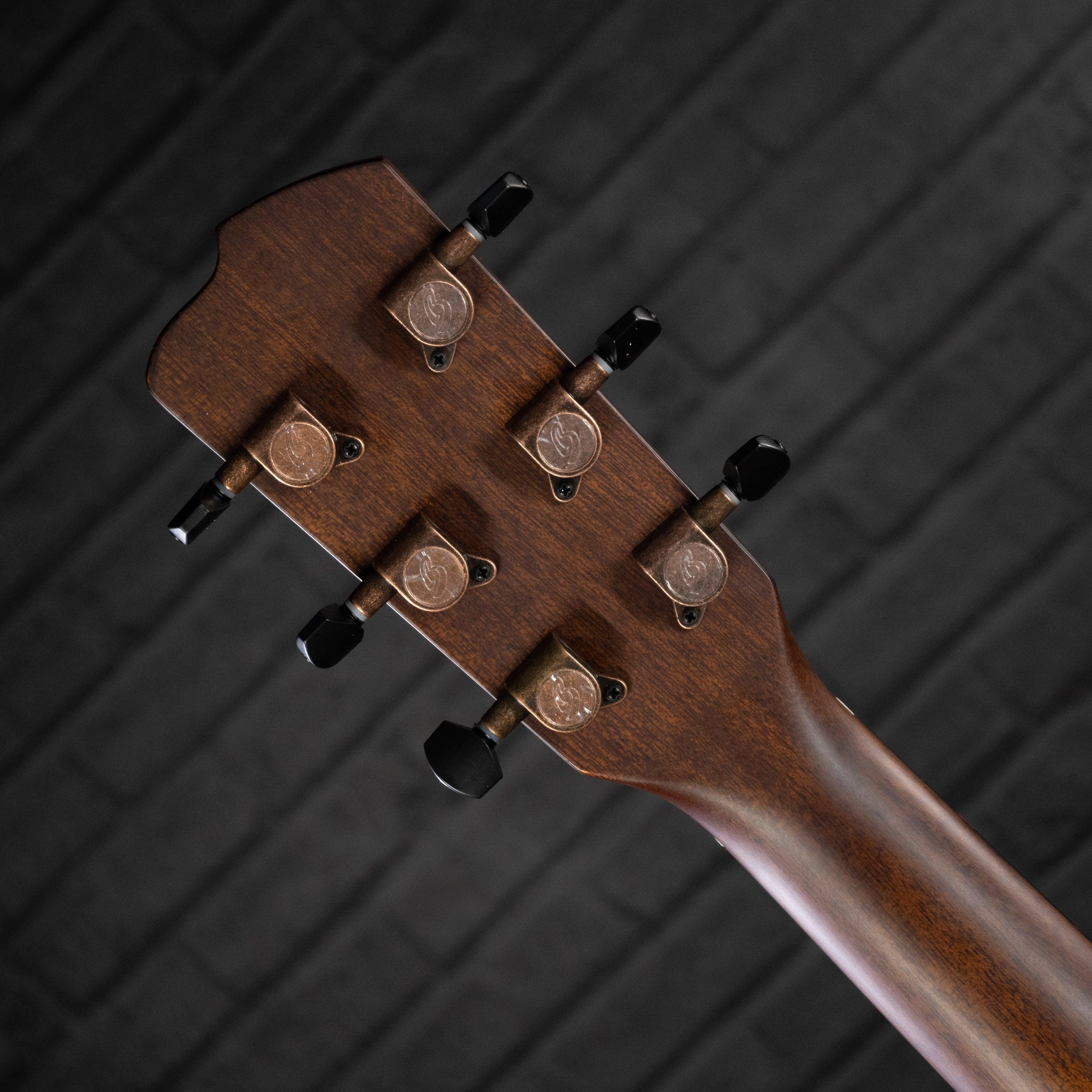 Myrtlewood, aunque originario de la costa del Pacífico de Oregón, podría ser la más "exótica" de todas las maderas tonales, ya que captura los graves profundos del palisandro, la calidez pura de la caoba y los agudos dulces y vidriosos del arce en un paquete exquisito y visualmente encantador: aquí bajo un acabado brillante Tiger's Eye con ribete de tortuga igualmente cautivador. Esta concertina acústica eléctrica sostenible Pursuit Exotic S tiene todo el encanto de una guitarra de salón de 12 trastes de escala corta vintage, pero con un sonido moderno completo y contundente y la máxima comodidad al tocar. Un mástil rápido y delgado y un acceso recortado suave a cada traste permiten que tus dedos y tu corazón tengan su opinión. Suene mejor que nunca con la tecnología ecológicamente superior EcoTonewood de Breedlove. ¡Ponte feroz con un ojo de tigre!