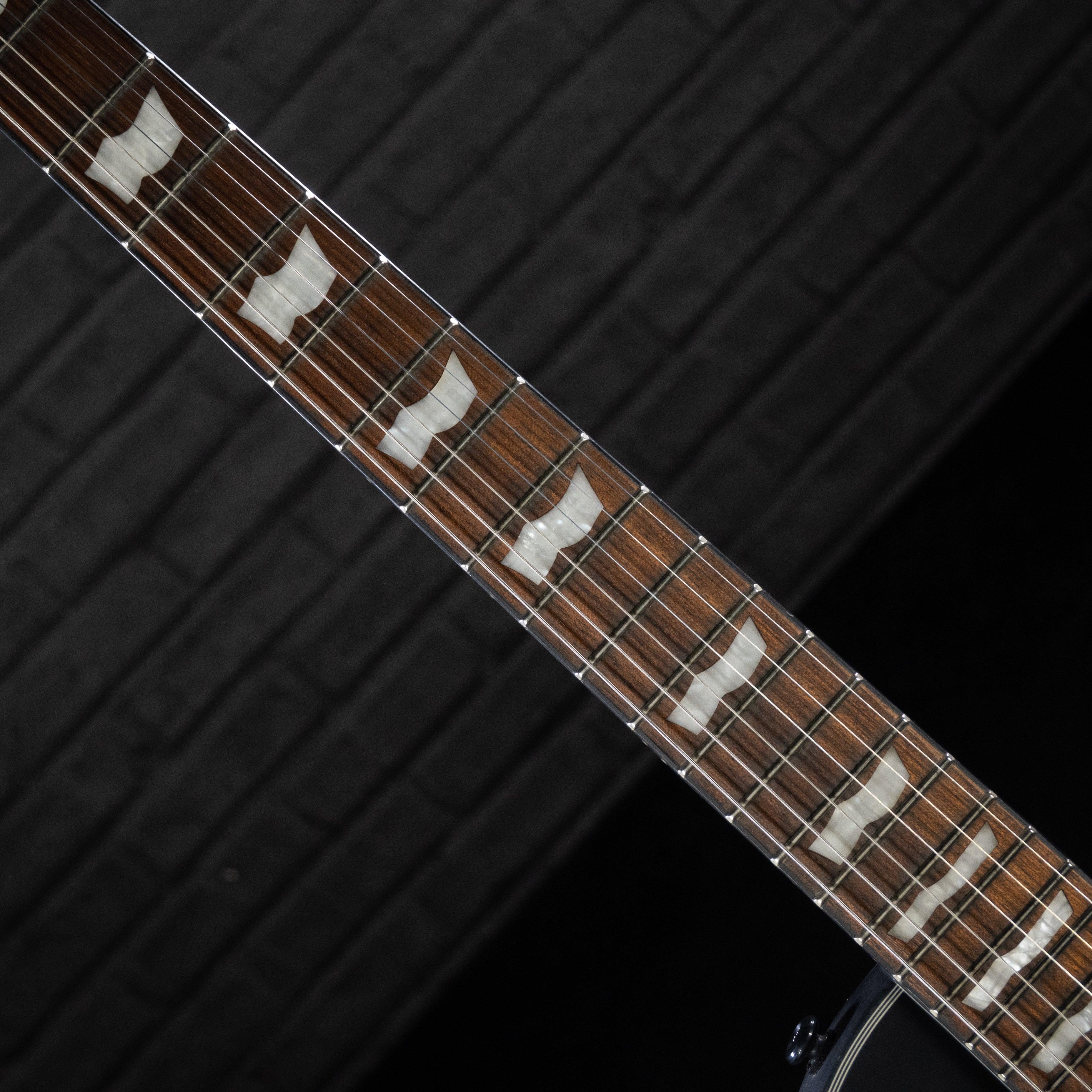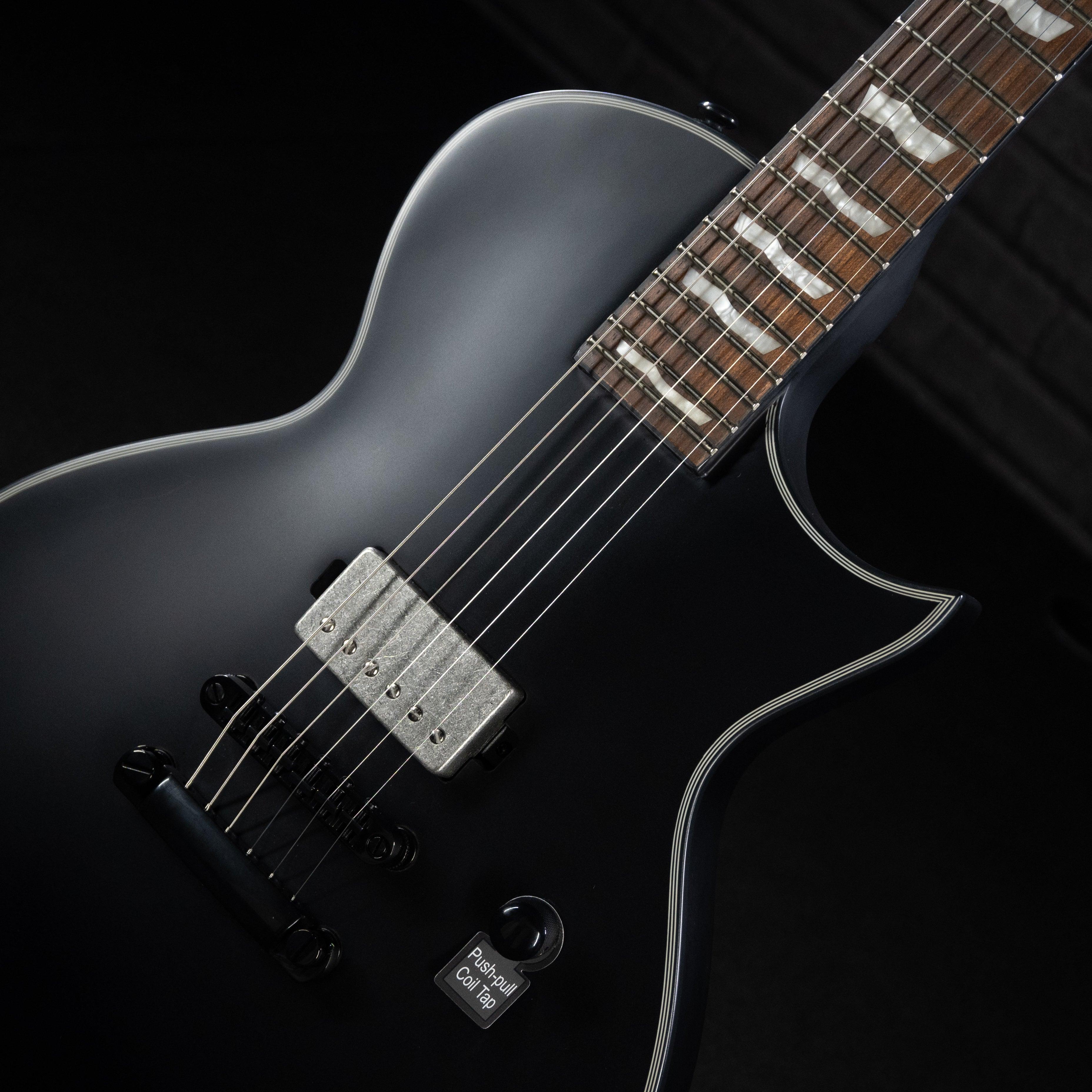 El LTD EC-201 ofrece una excelente manera de conocer los aspectos más geniales de la serie LTD EC a un precio que realmente puede pagar. Con una forma clásica que es excelente para todos los estilos y géneros musicales, el EC-201 se ve increíble con múltiples ribetes en el cuerpo y el clavijero de caoba y ribetes negros en el diapasón de jatoba tostado. La EC-201 también es una guitarra de gran sensación con construcción de mástil fijo para un acceso rápido y fácil a los trastes más altos. Ofrece 24 trastes extra-jumbo e incrustaciones de bandera ESP, herrajes negros y cuenta con un puente LTD y cordal. Quizás lo más importante en el gran tono del EC-201 es la única pastilla ESP LH-150B con cubierta de níquel antiguo. La salida caliente del LH-150B es perfecta para rock y metal, pero también se puede dividir para sonidos de bobina simple con la perilla de volumen push-pull.