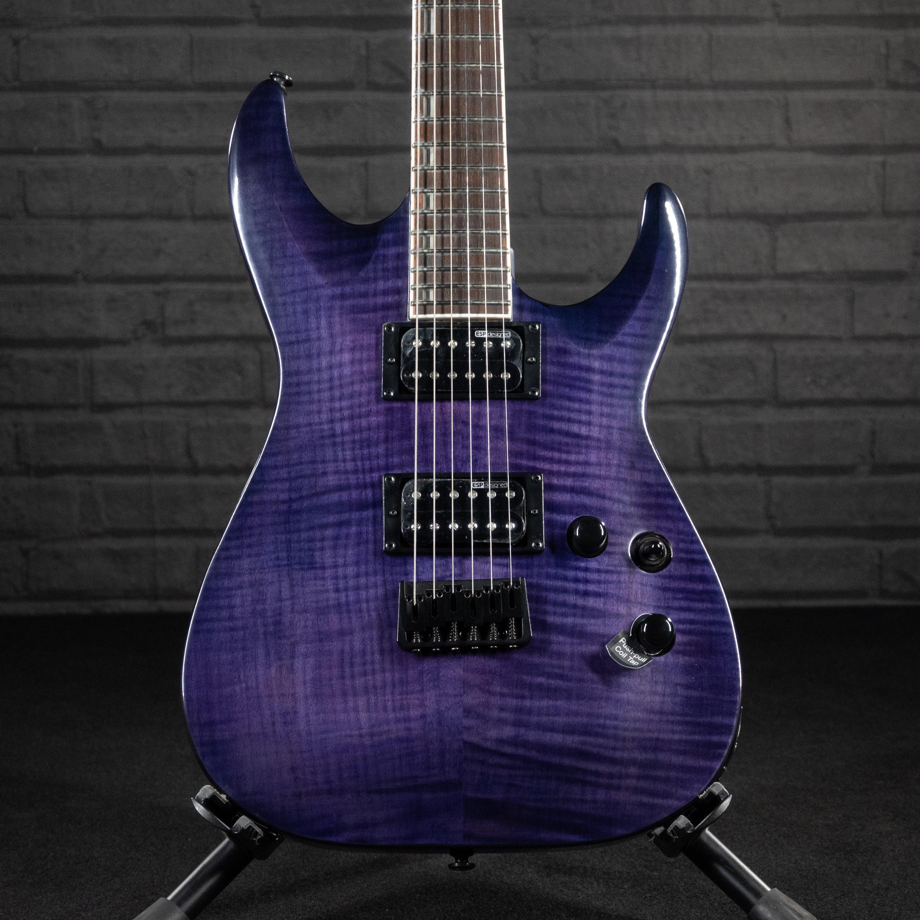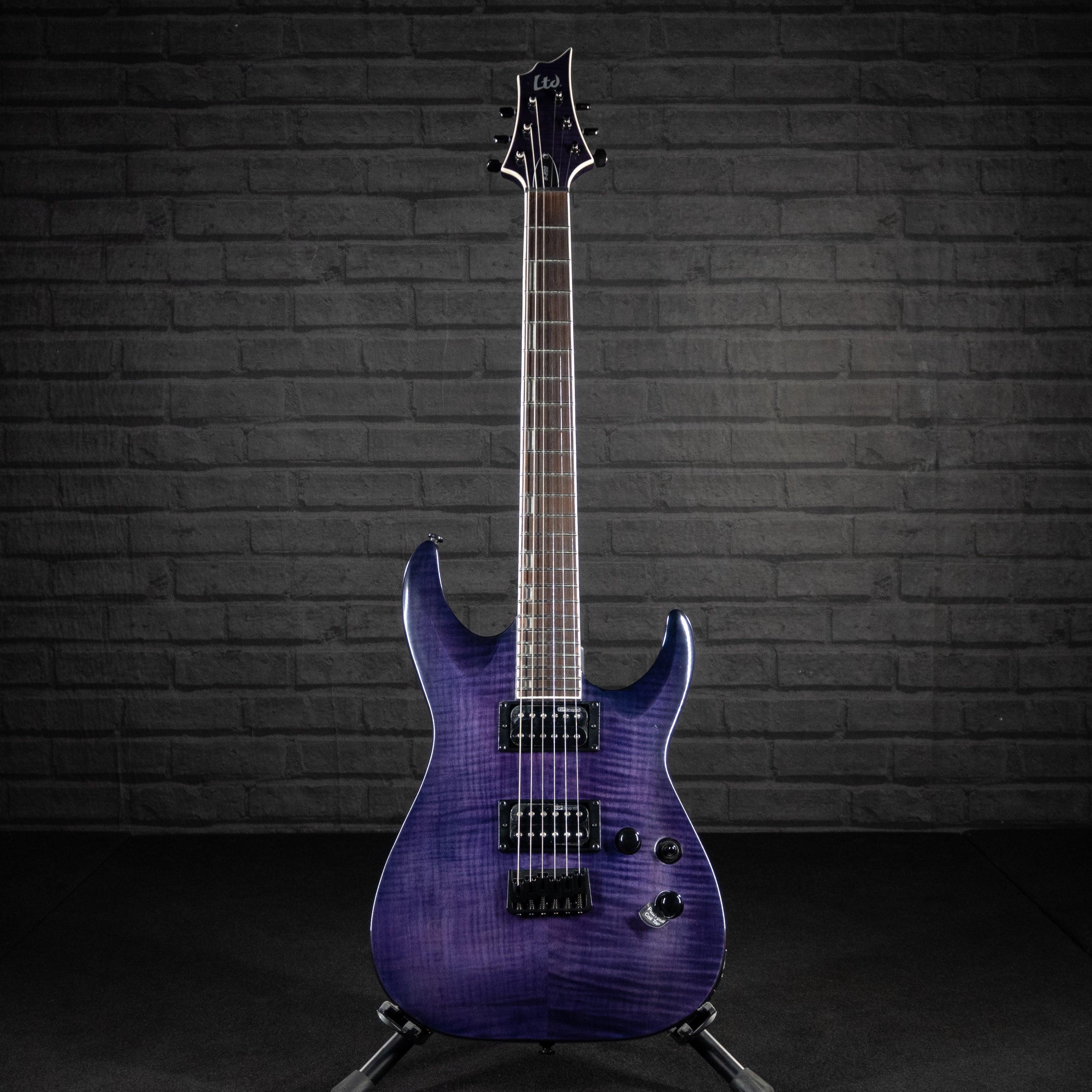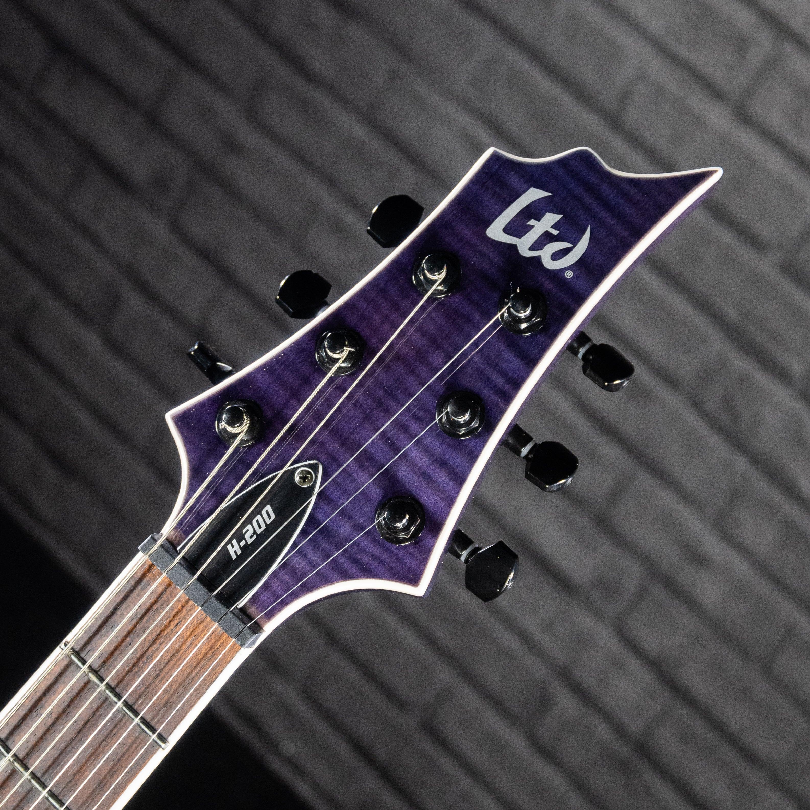 La H-200FM es una excelente guitarra para cualquier persona que requiera alta calidad y facilidad de ejecución con un presupuesto ajustado. El H-200FM tiene una construcción de mástil fijo para un tono agradable y redondeado. Su sonido está alimentado por un par de pastillas humbucking ESP Design y ofrece un puente rígido, cuerpo de caoba, mástil de arce de tres piezas y diapasón de jatoba tostado con 24 trastes extra jumbo.