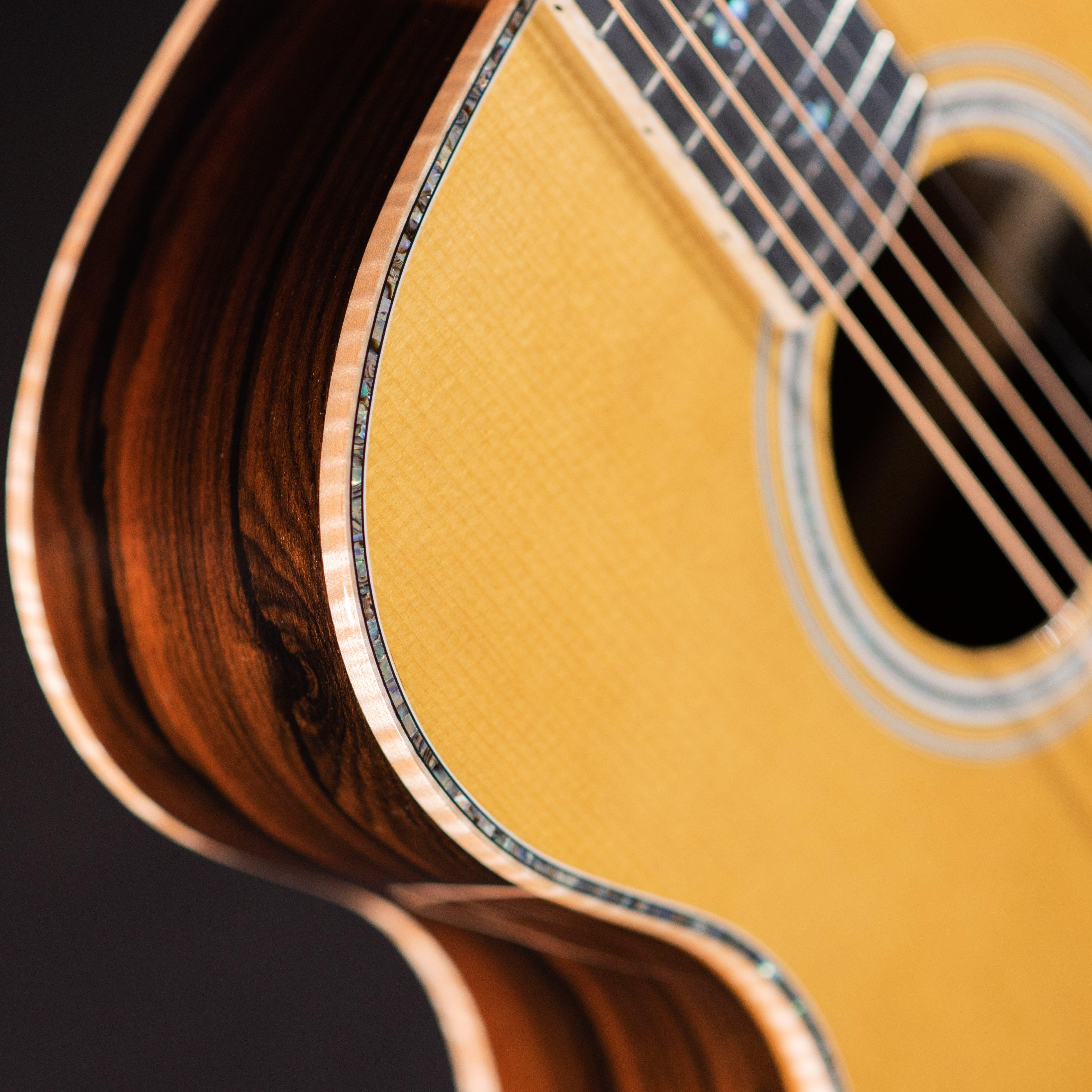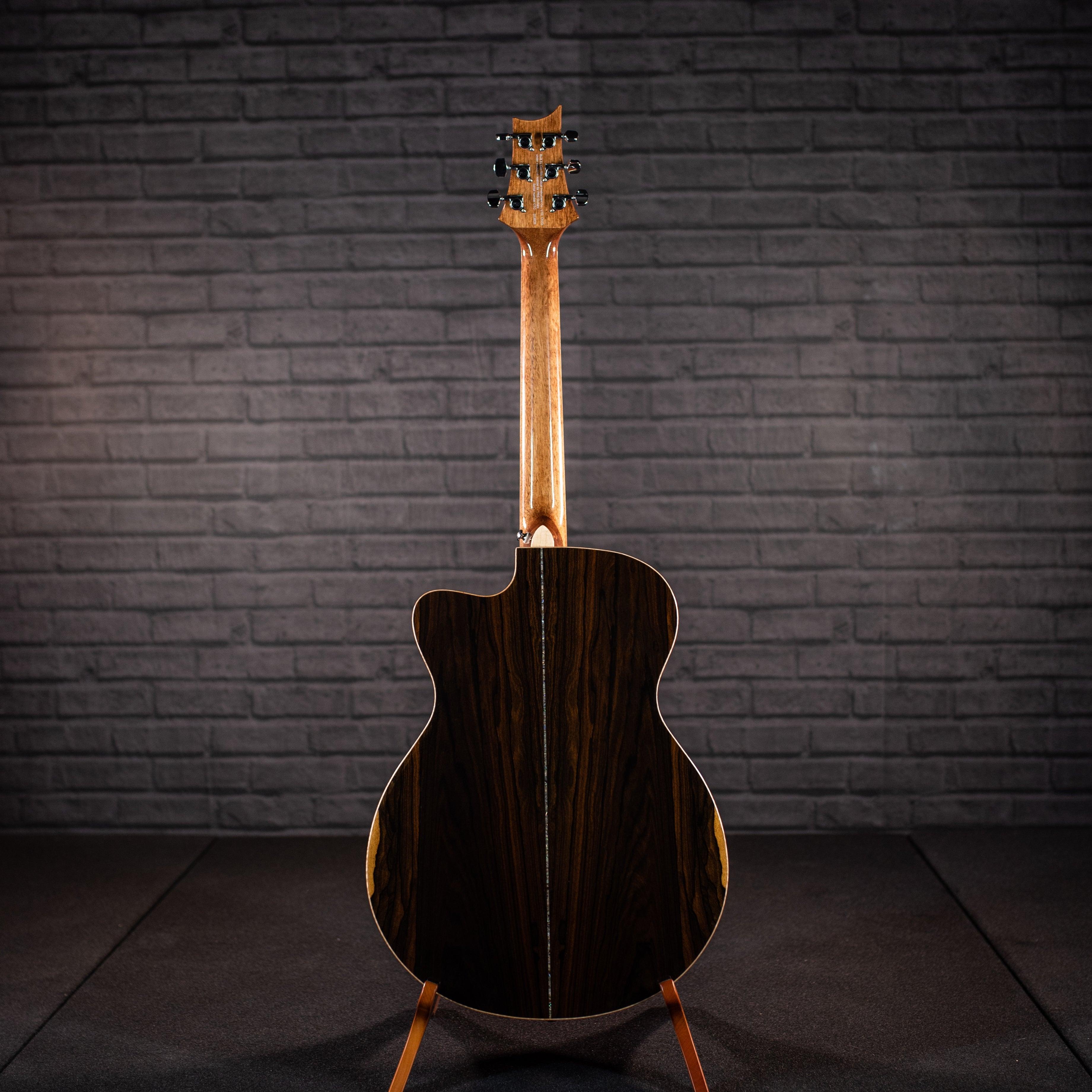 Él PRS SE A60E combina aros y fondo de ziricote con una tapa de abeto macizo. El tono favorece un extremo inferior completo con agudos atenuados que recuerdan a algunas guitarras acústicas antiguas. Cuando se combina con el refuerzo híbrido “X”/Classical de PRS, que permite que la parte superior vibre libremente, la voz del SE A60E se proyecta con un volumen impresionante y matices delicados. La forma del cuerpo Angelus Cutaway brinda comodidad y jugabilidad, muy adecuada para tocar con punteo y con los dedos.