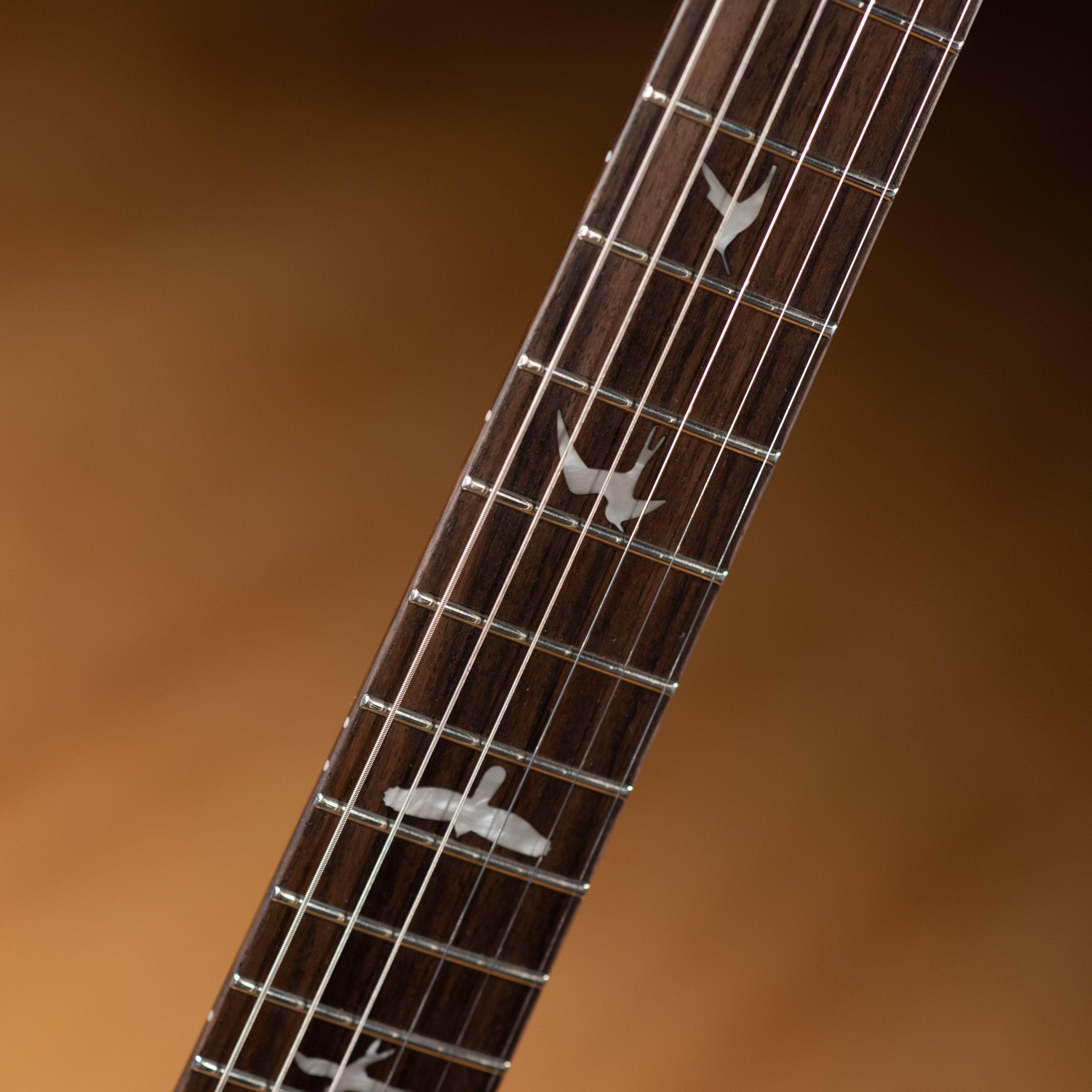 Él SE personalizado 24 trae la plataforma de diseño PRS original a la línea de instrumentos SE más asequible y de alta calidad. Interpretado por artistas de gira internacional, músicos en vivo y aspirantes a músicos, el SE Custom 24 presenta una tapa de arce, parte posterior de caoba, mástil de arce ancho y delgado, diapasón de palisandro con incrustaciones de pájaros y el puente de trémolo moldeado patentado por PRS. Sus sonidos versátiles provienen de las pastillas 85/15 "S" combinadas con un volumen, control de tono push/pull y selector de pastillas de hoja de 3 vías.
