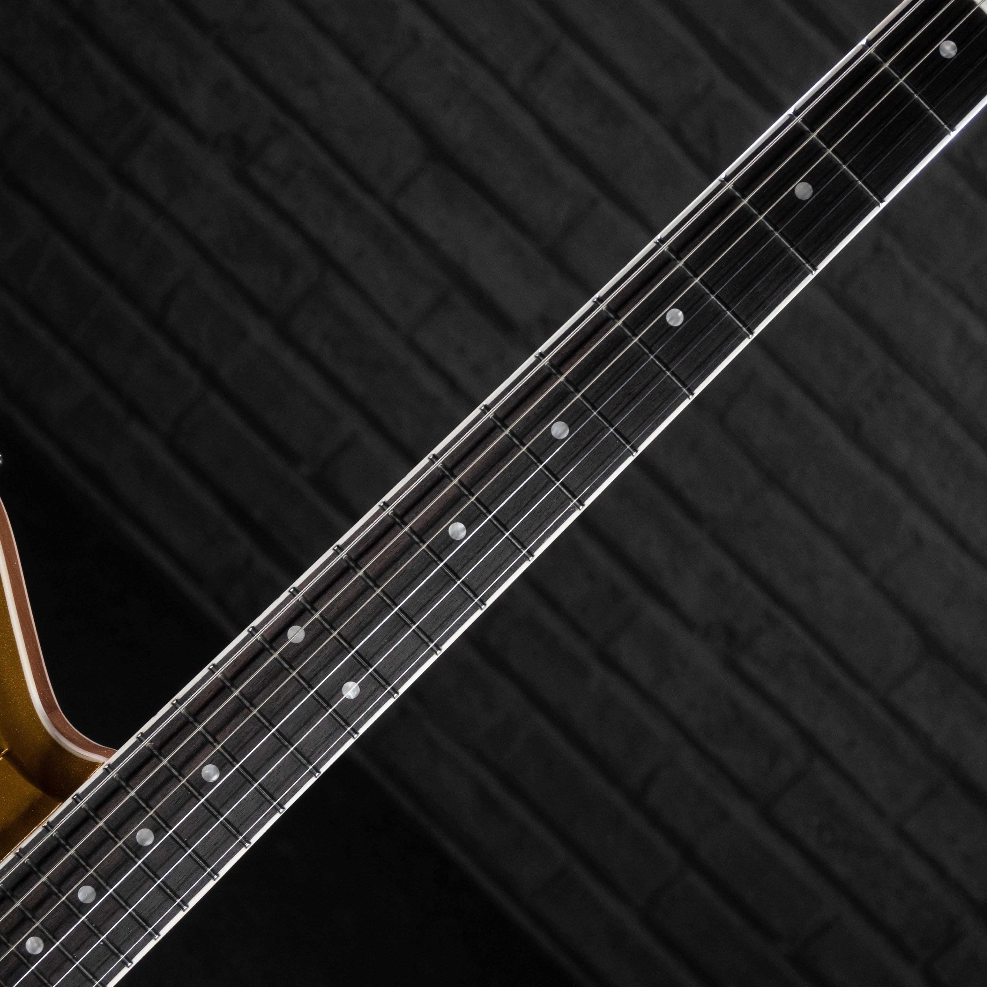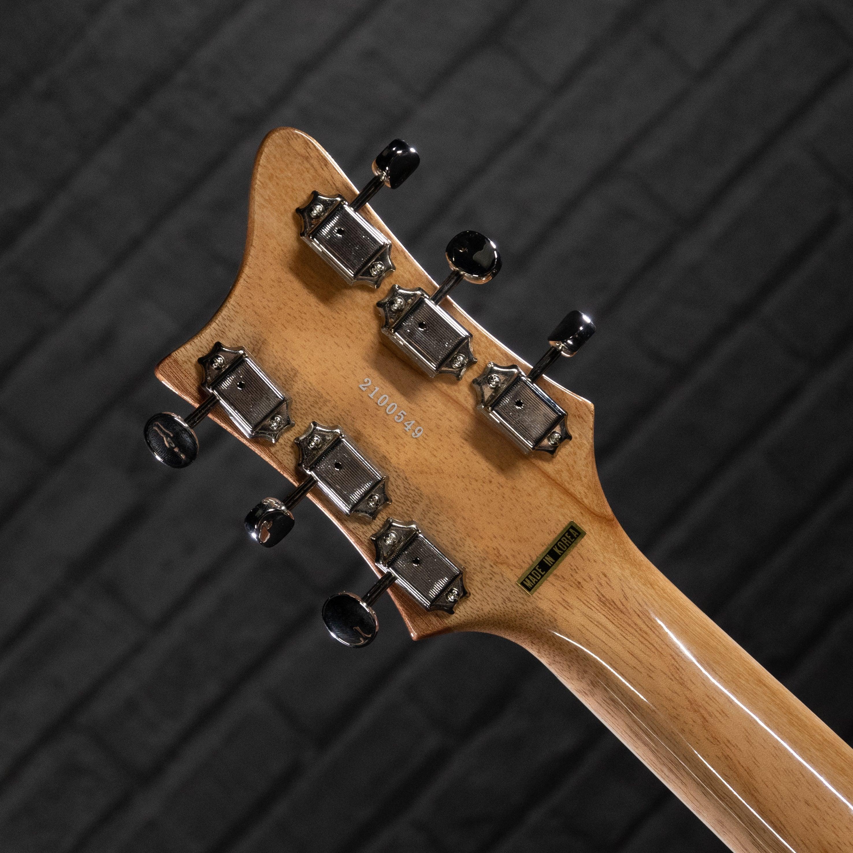 El Mondo Combinata es la evolución de un diseño con el que los seguidores de Dennis Fano deberían estar muy familiarizados. El cuerpo más grande y ligeramente desplazado le da al Combinata una silueta bien formada y una sensación más sustancial. El cuerpo de caoba con cámara presenta una elegante talla alemana que agrega una apariencia clásica y vintage y profundidad a la estética de Combinata. El mástil fijo de caoba con escala de 25″ luce el cómodo perfil de mástil “Rivolta Chunky C”, con 24 trastes medium jumbo.