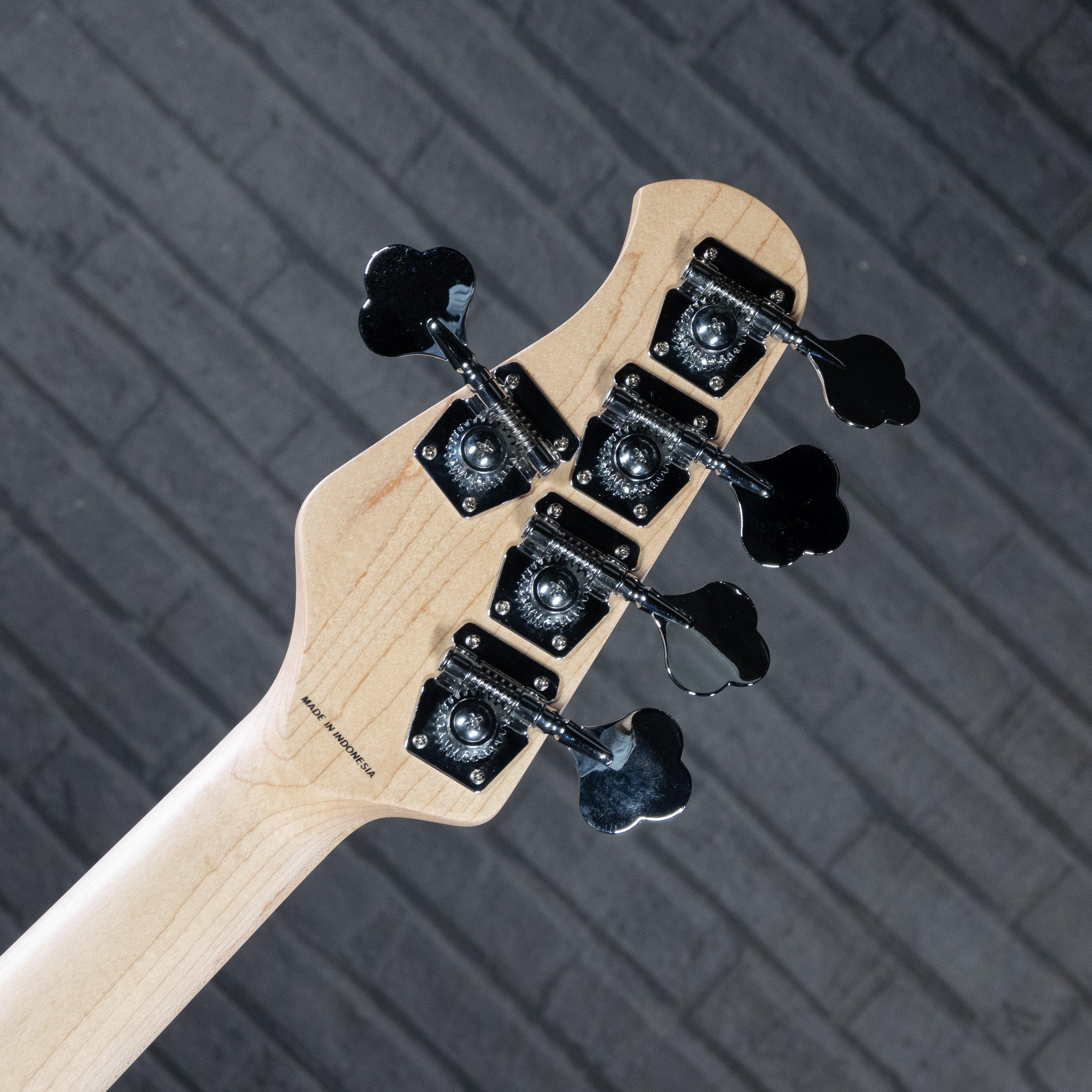 El bajo StingRay Ray5 cuenta con un preamplificador activo de 9v, pastillas humbucking de bajo ruido y un puente resistente totalmente ajustable.