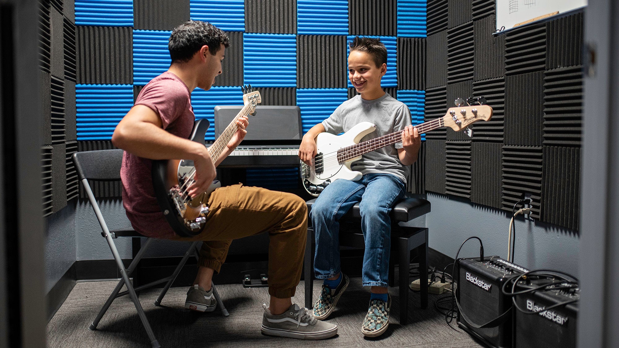 All of our teachers are pros in the industry! Our facility is equipped with 10 lesson rooms, 2 of them have acoustic drums sets (for both teacher and student), 8 rooms with electric pianos/keyboard and amplifiers. The whole academy is integrated through an app!