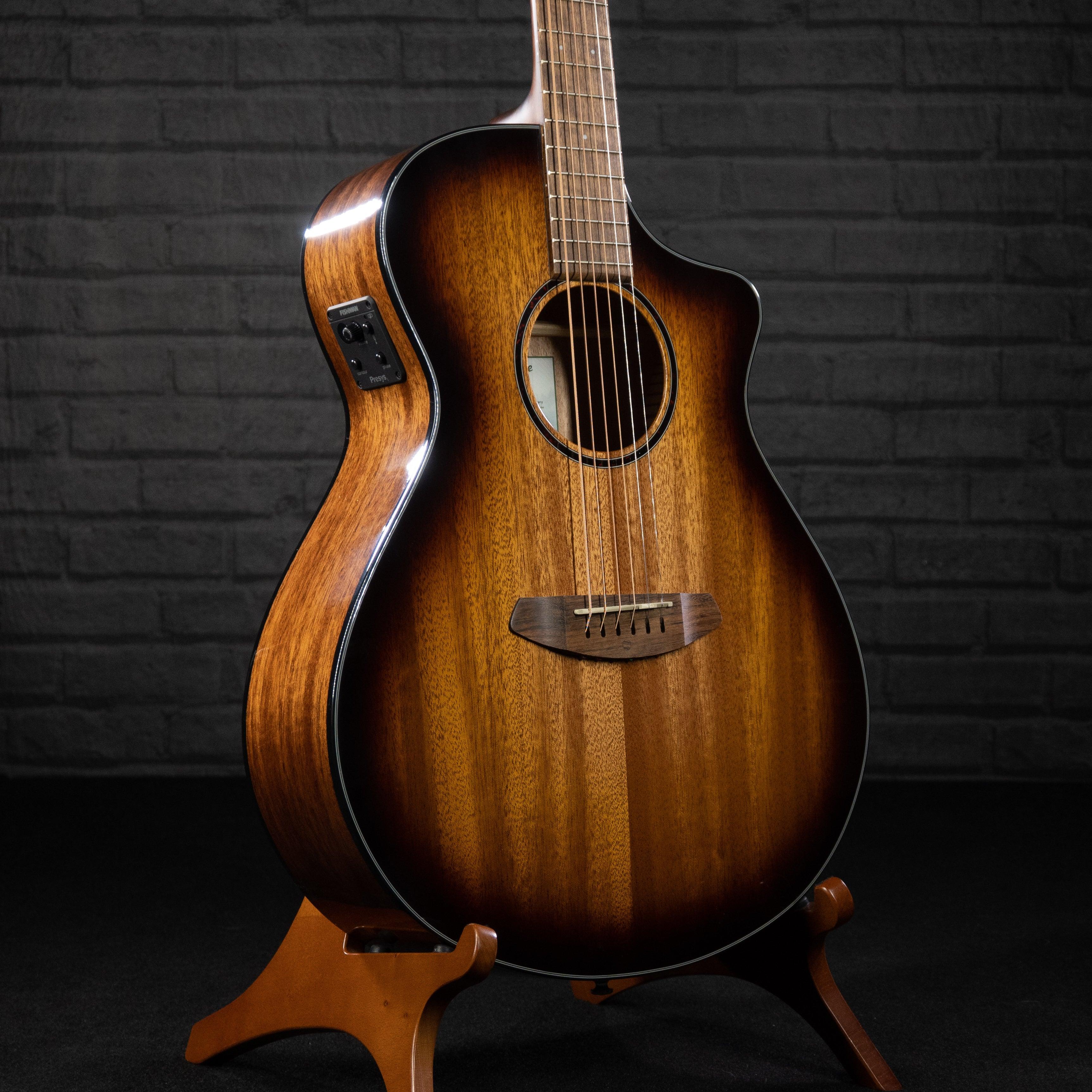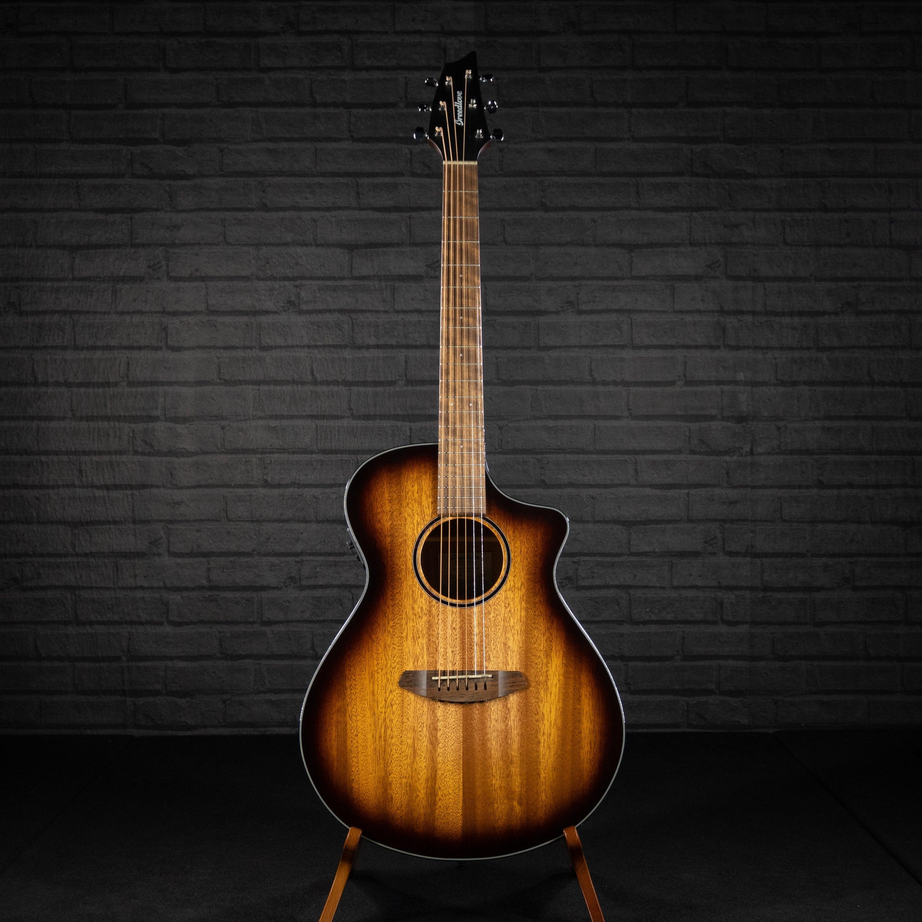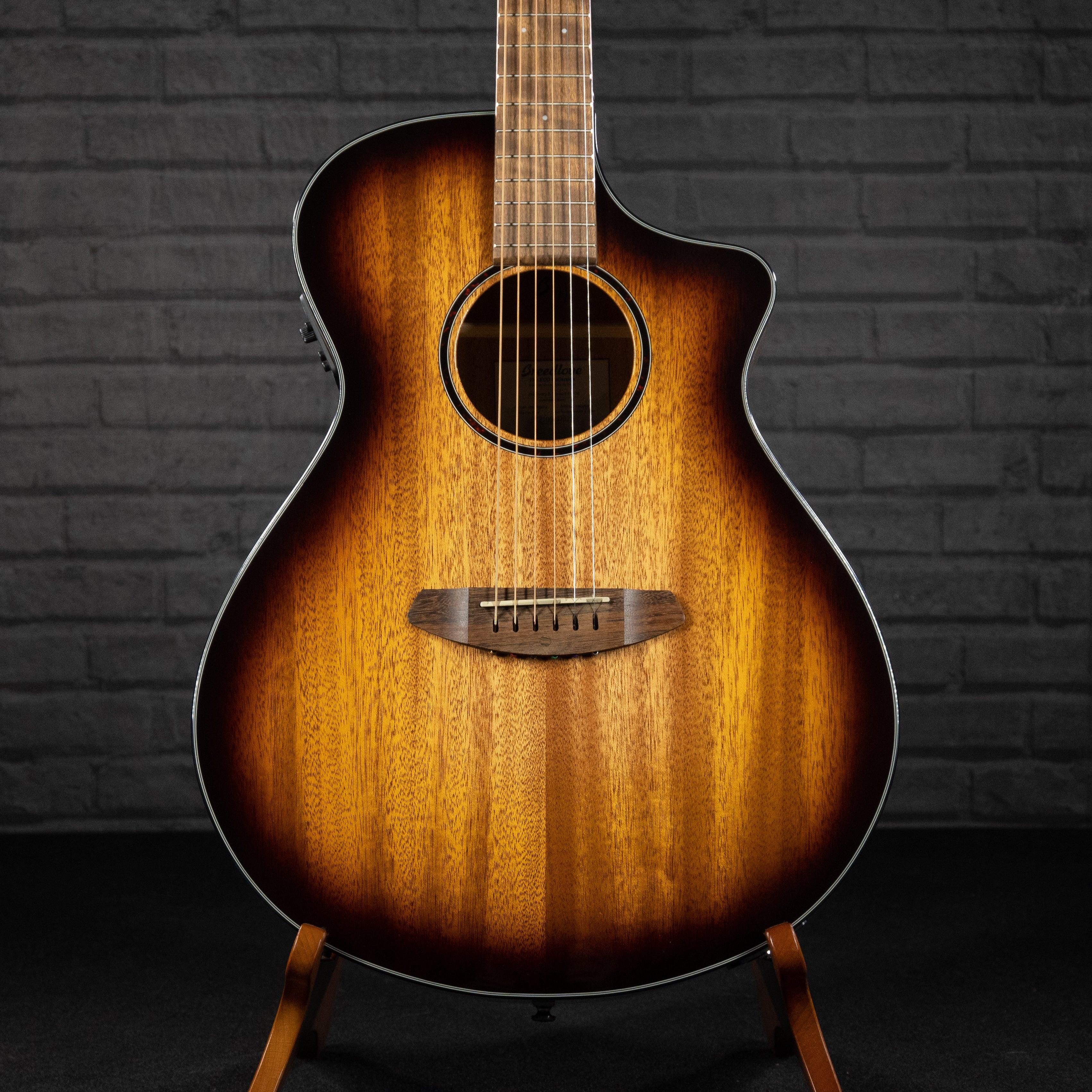 Sometimes undersung in the guitar world, western red cedar has a glowing warmth that responds quickly to fingerstyle play while offering a rosy definition to relaxed strumming. It finds a perfect duet partner in the clarity and cutting power of African mahogany. The pioneering Concert shape, a standard for 30 years, is balanced, versatile and resonant. Boasting a beguiling gloss Edgeburst finish, this solid top soft cutaway Breedlove Discovery S Concert features sustainable earth-conscious, sonically superior EcoTonewood technology. Comfortable and easy to play, with a slim, fast neck and beginner-friendly narrow nut width, the guitar comes equipped with Fishman Presys I electronics, with built-in tuner. Discover the Breedlove ECO Collection—where the guitar meets the forest.