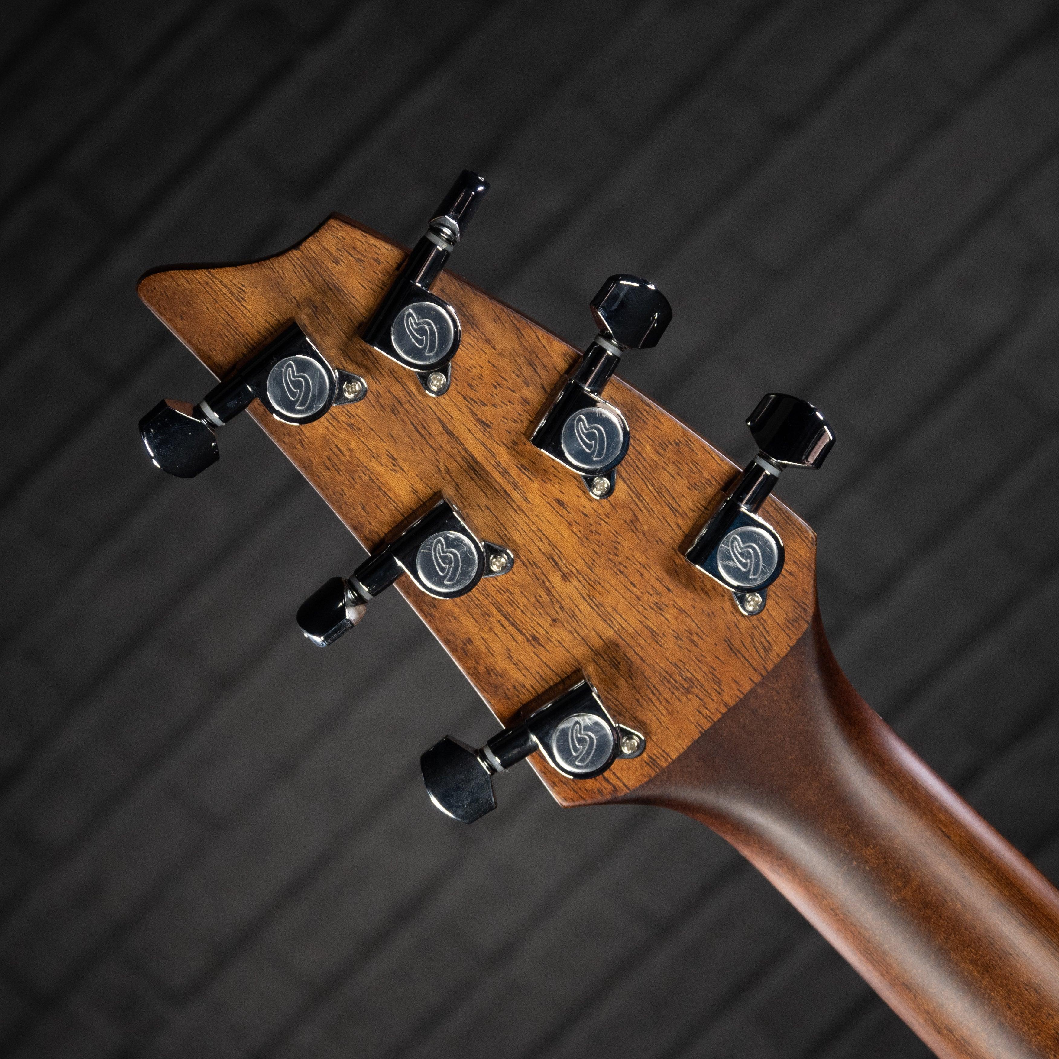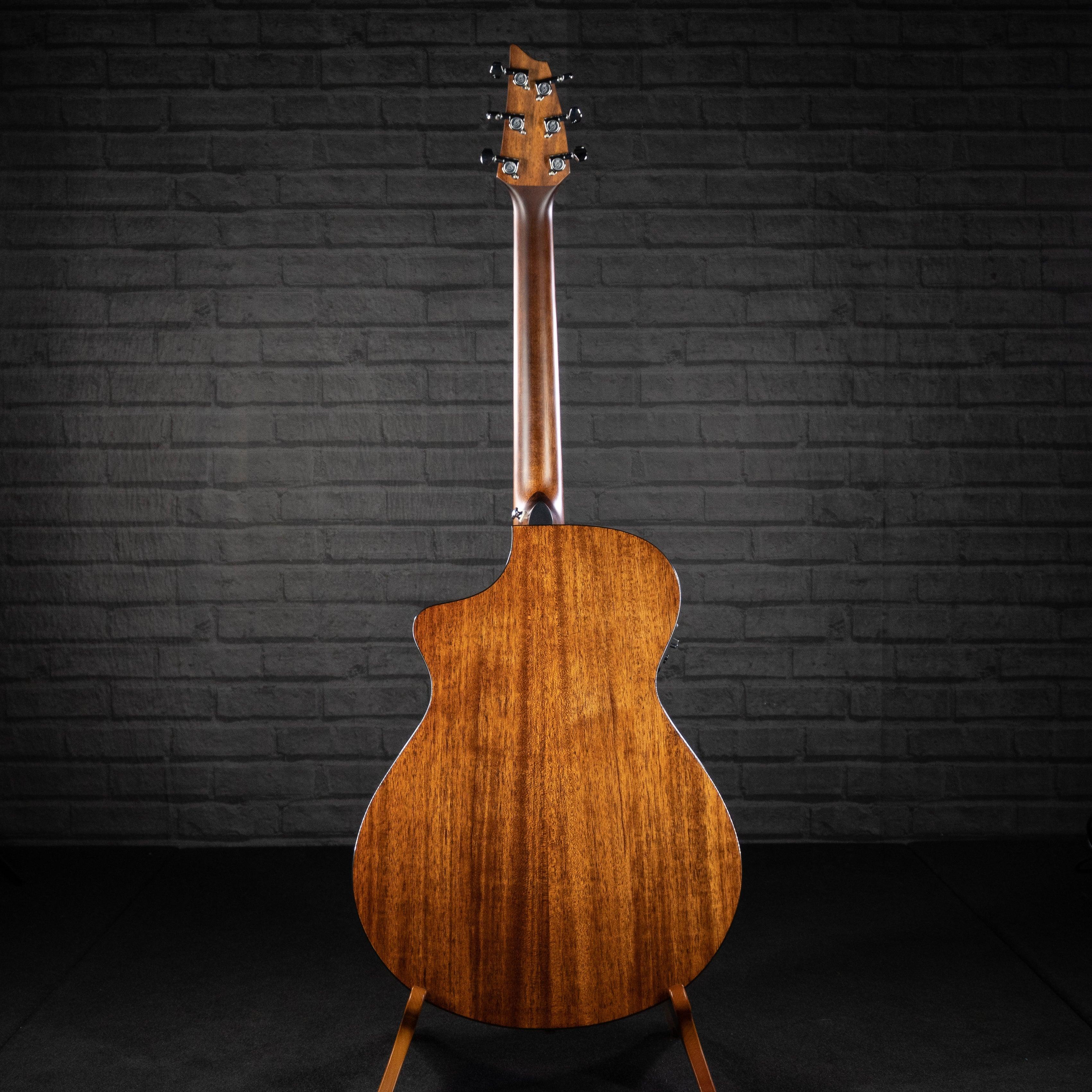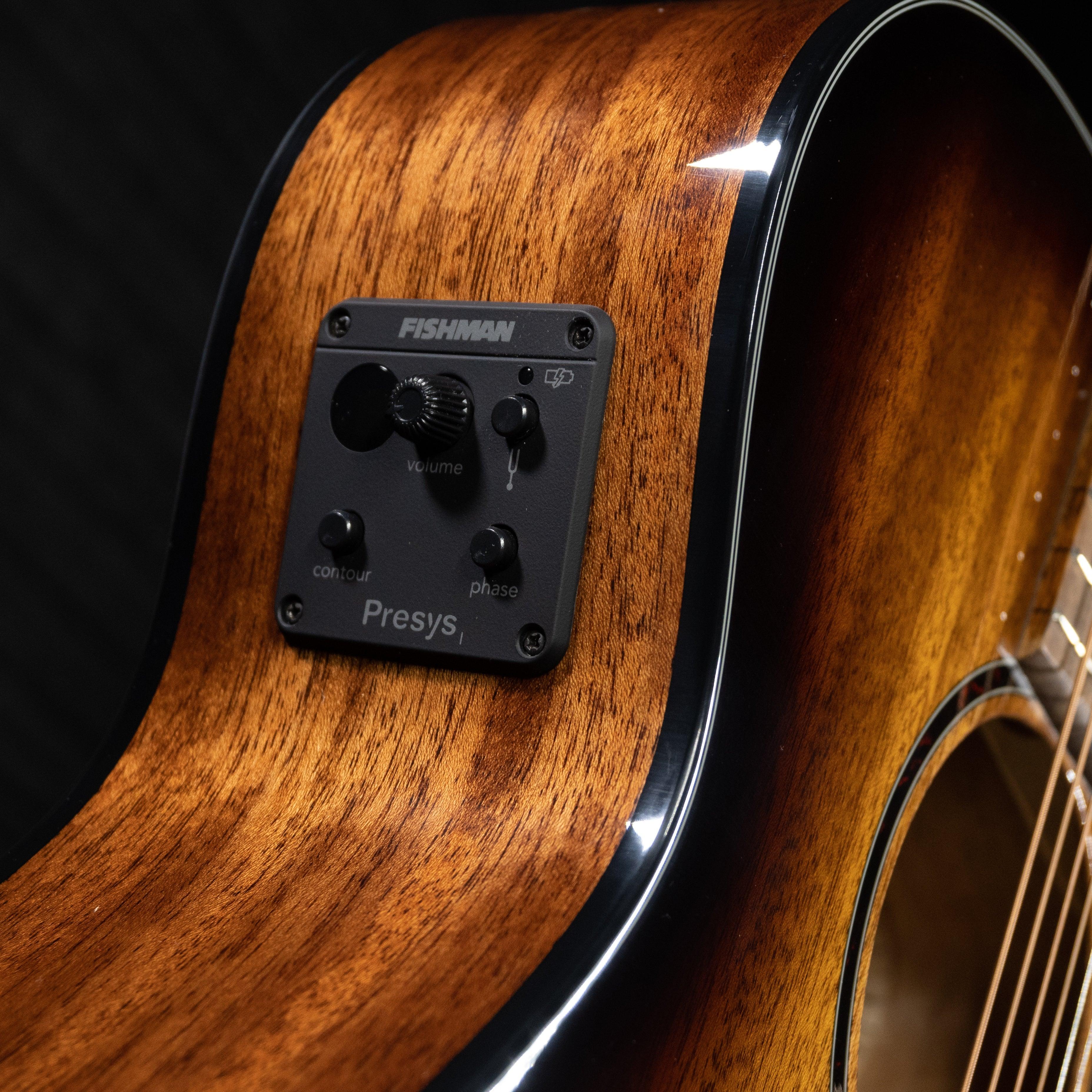 Sometimes undersung in the guitar world, western red cedar has a glowing warmth that responds quickly to fingerstyle play while offering a rosy definition to relaxed strumming. It finds a perfect duet partner in the clarity and cutting power of African mahogany. The pioneering Concert shape, a standard for 30 years, is balanced, versatile and resonant. Boasting a beguiling gloss Edgeburst finish, this solid top soft cutaway Breedlove Discovery S Concert features sustainable earth-conscious, sonically superior EcoTonewood technology. Comfortable and easy to play, with a slim, fast neck and beginner-friendly narrow nut width, the guitar comes equipped with Fishman Presys I electronics, with built-in tuner. Discover the Breedlove ECO Collection—where the guitar meets the forest.