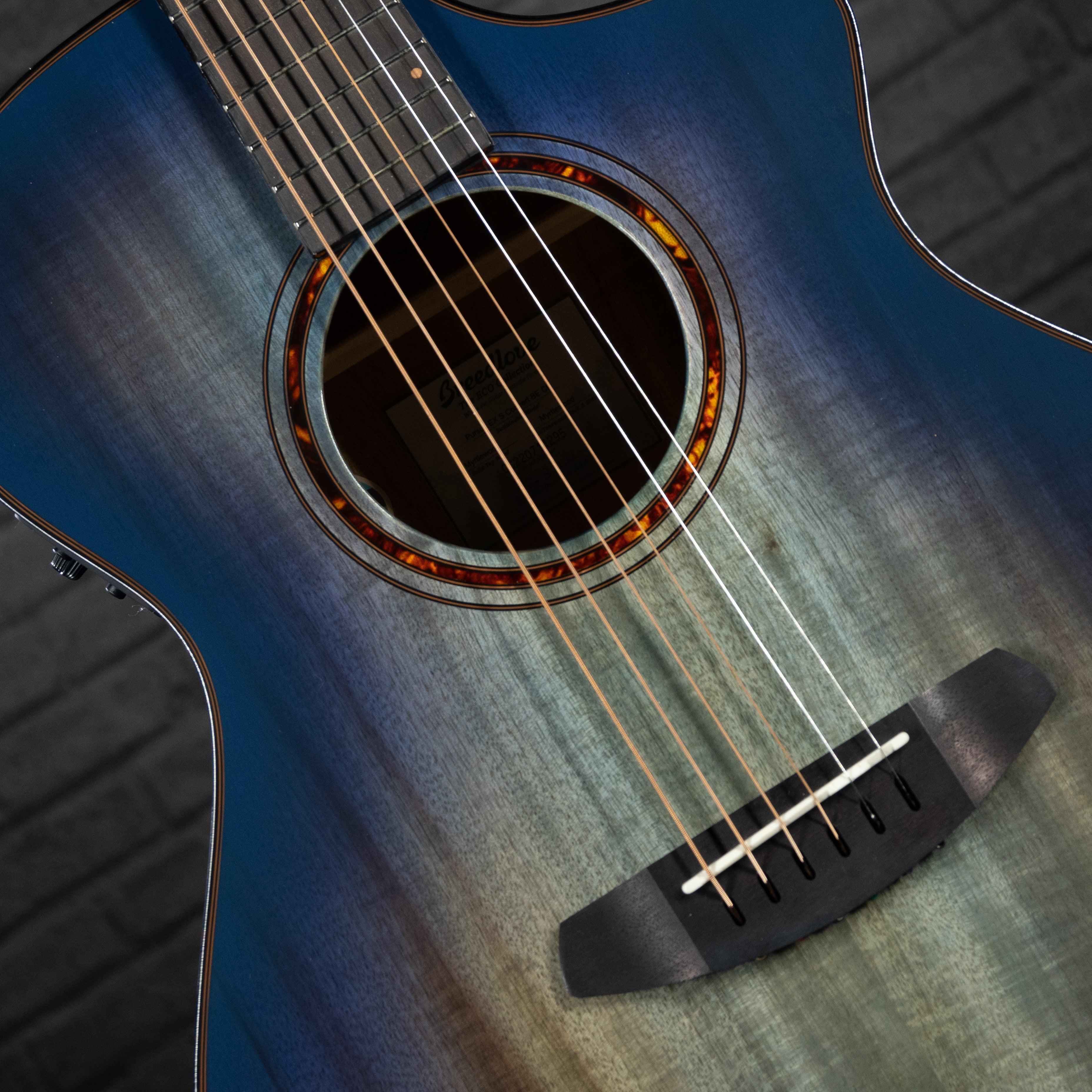 A gloss Blue Eyes finish highlights the unique, complex beauty of myrtlewood in this visually arresting acoustic electric guitar. Breedlove’s sonically superior, fully sustainable EcoTonewood technology ensures that you sound as good as you look and feel playing this instrument. Myrtle’s magic mix of rosewood's bottom, mahogany's