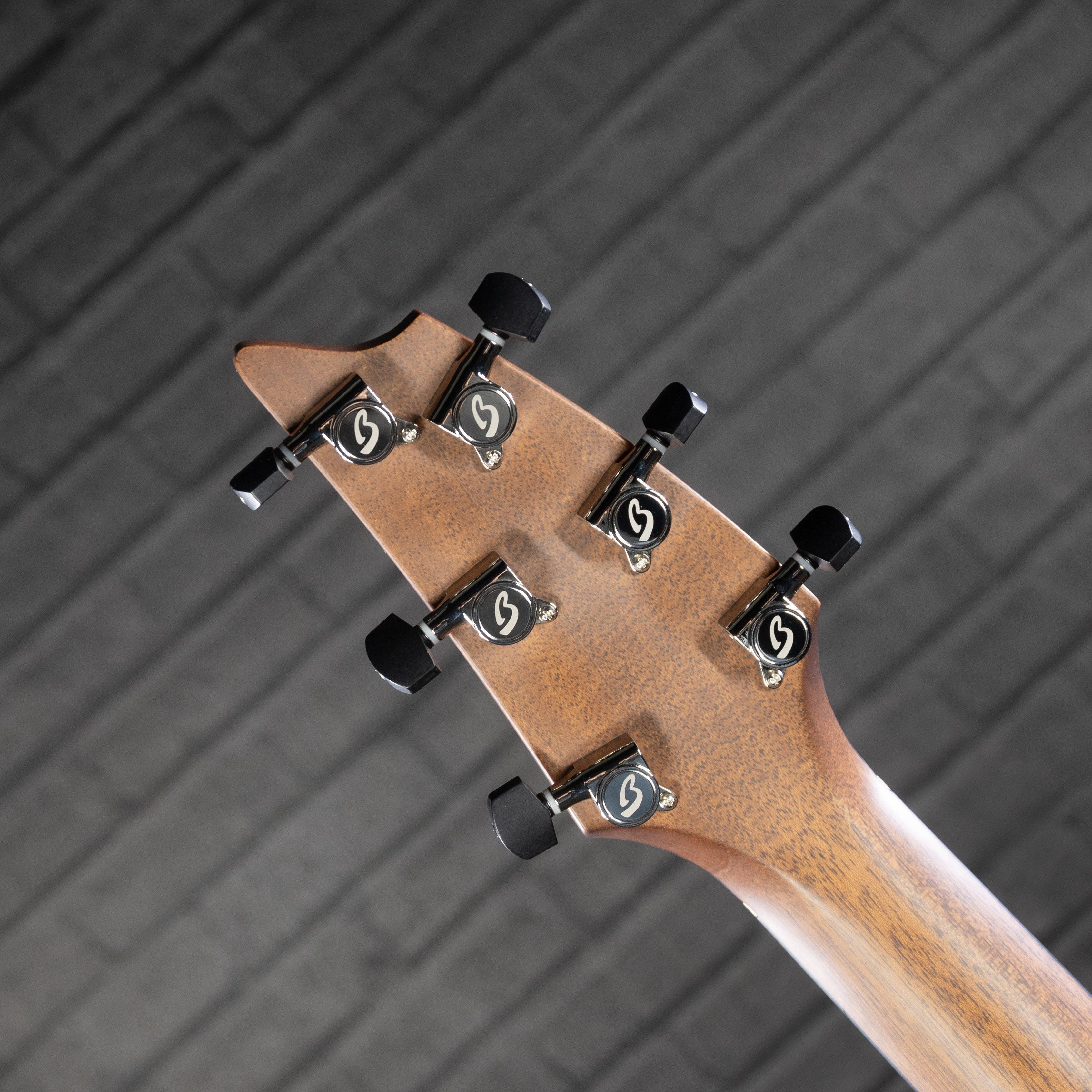 Tone first. Stake your claim with a professional grade Premier Concert. Connoisseurs love redwood’s immediate, responsive symmetry of cedar’s warmth and spruce’s brilliance. Favored by fingerstylists, but growing in popularity with all types of players, redwood enhances rosewood’s blossom of overtones for a new, enchanting guitar experience. The pioneering light, versatile soft cutaway Concert body is suited equally to fingers or flatpick, with unparalleled dynamics, projection and sustain—it’s all you want in a stage-ready, studio-worthy guitar, and more.