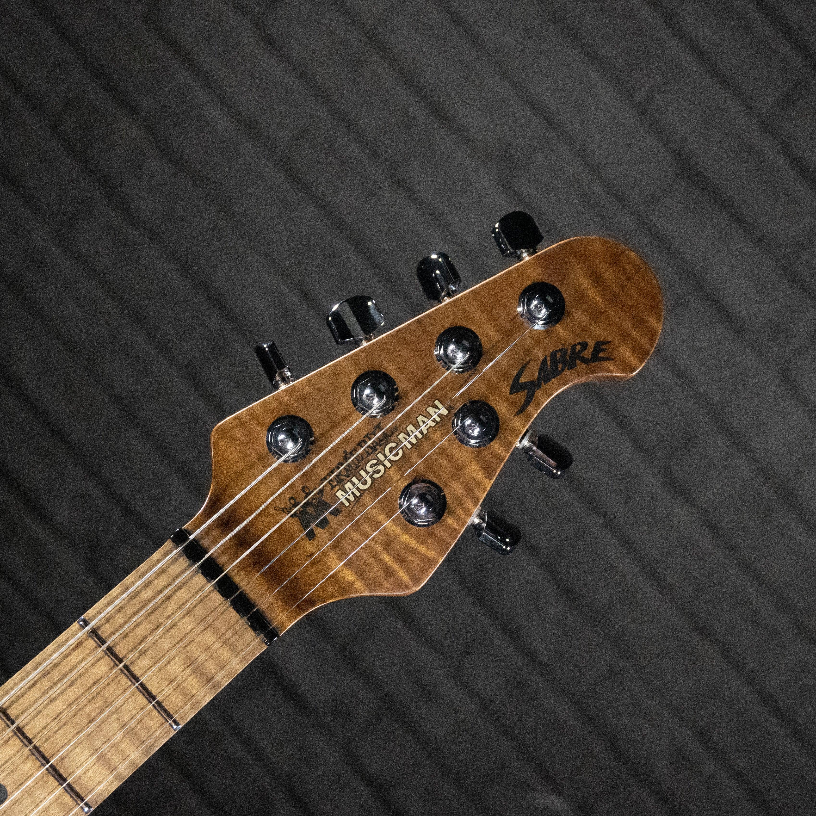 The Ernie Ball Music Man Sabre HT guitar is the newest edition to the ever-growing family of Ernie Ball Music Man instruments. Featuring the familiar shape and feel of the original Sabre, the Sabre HT showcases new custom Music Man pickup technology inspired by over a decade of guitar string research delivering an incredibly dynamic and responsive playing experience. The pickups are able to achieve an ultra-high-output, powerful low-end response while retaining a distinctively clean, clear tone and definition at lower volume levels. The HT (Heat Treated) bridge pickup utilizes patent-pending heat-treated pole pieces with a large ceramic magnet and an overwound coil that gives the pickup higher frequency harmonics and excellent touch sensitivity.