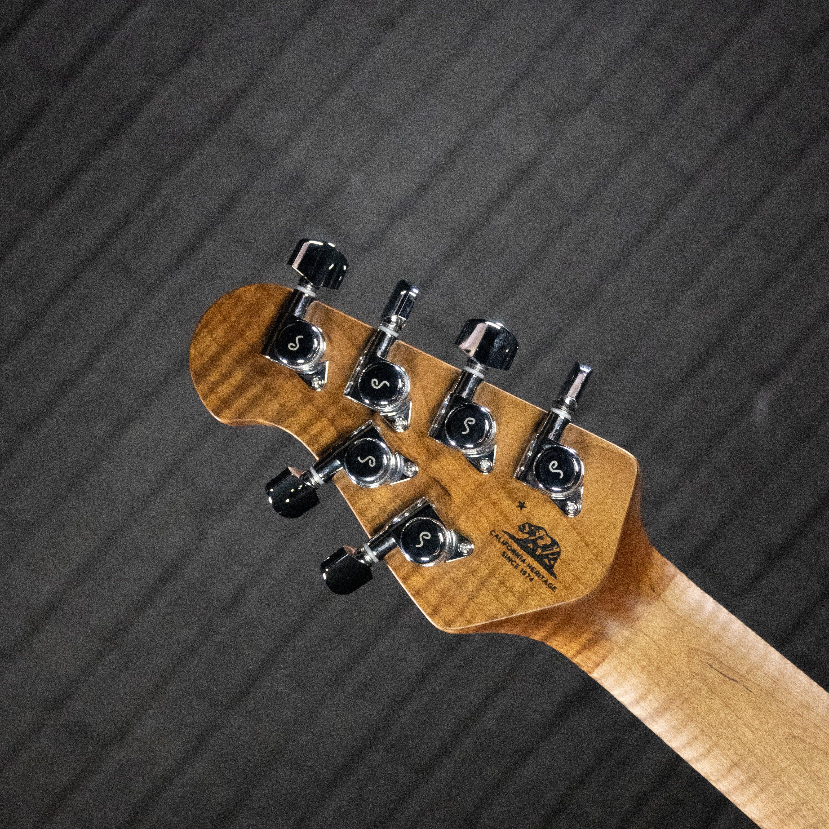 | Bridge: | Music Man® Modern tremolo with crescent cover and vintage bent steel saddles |
