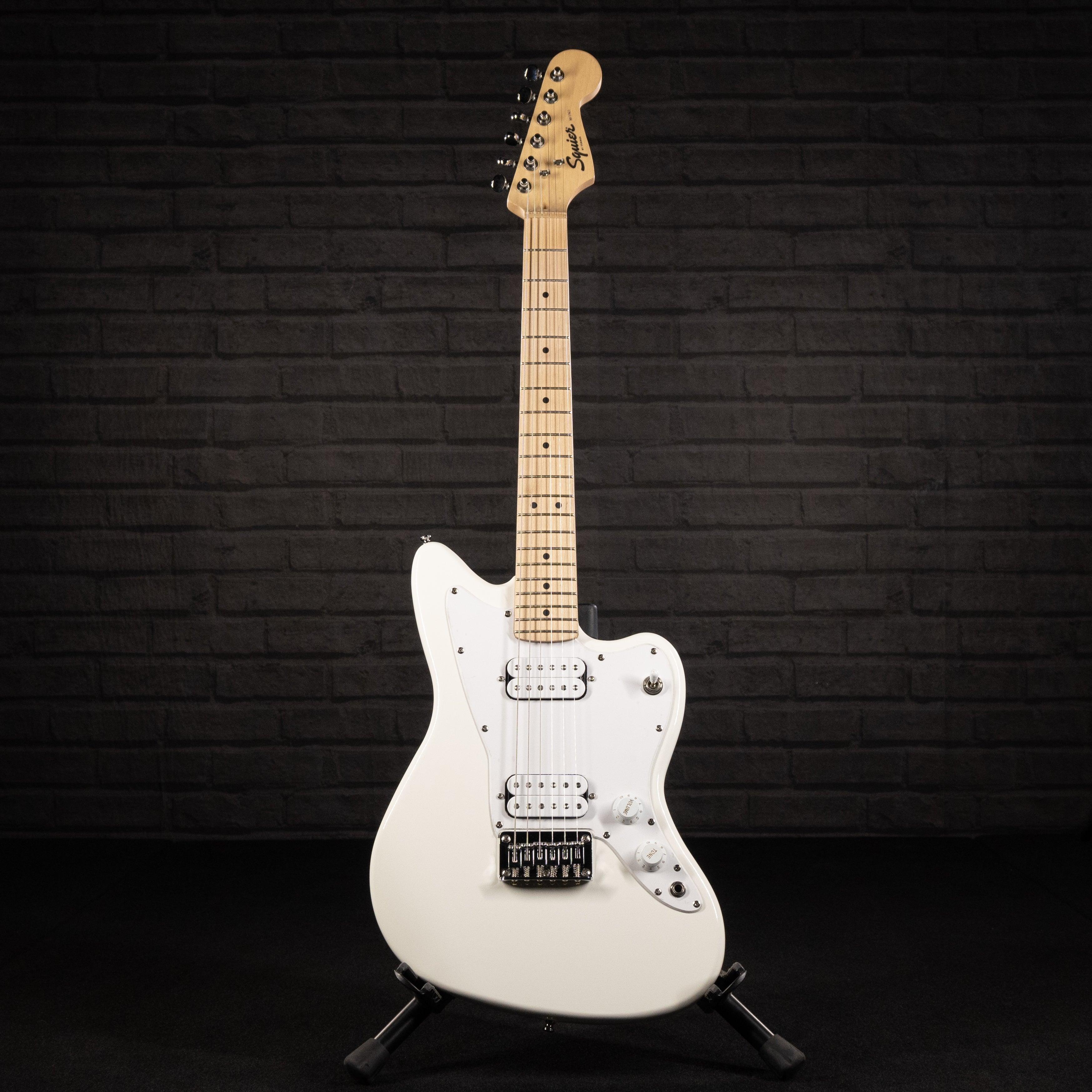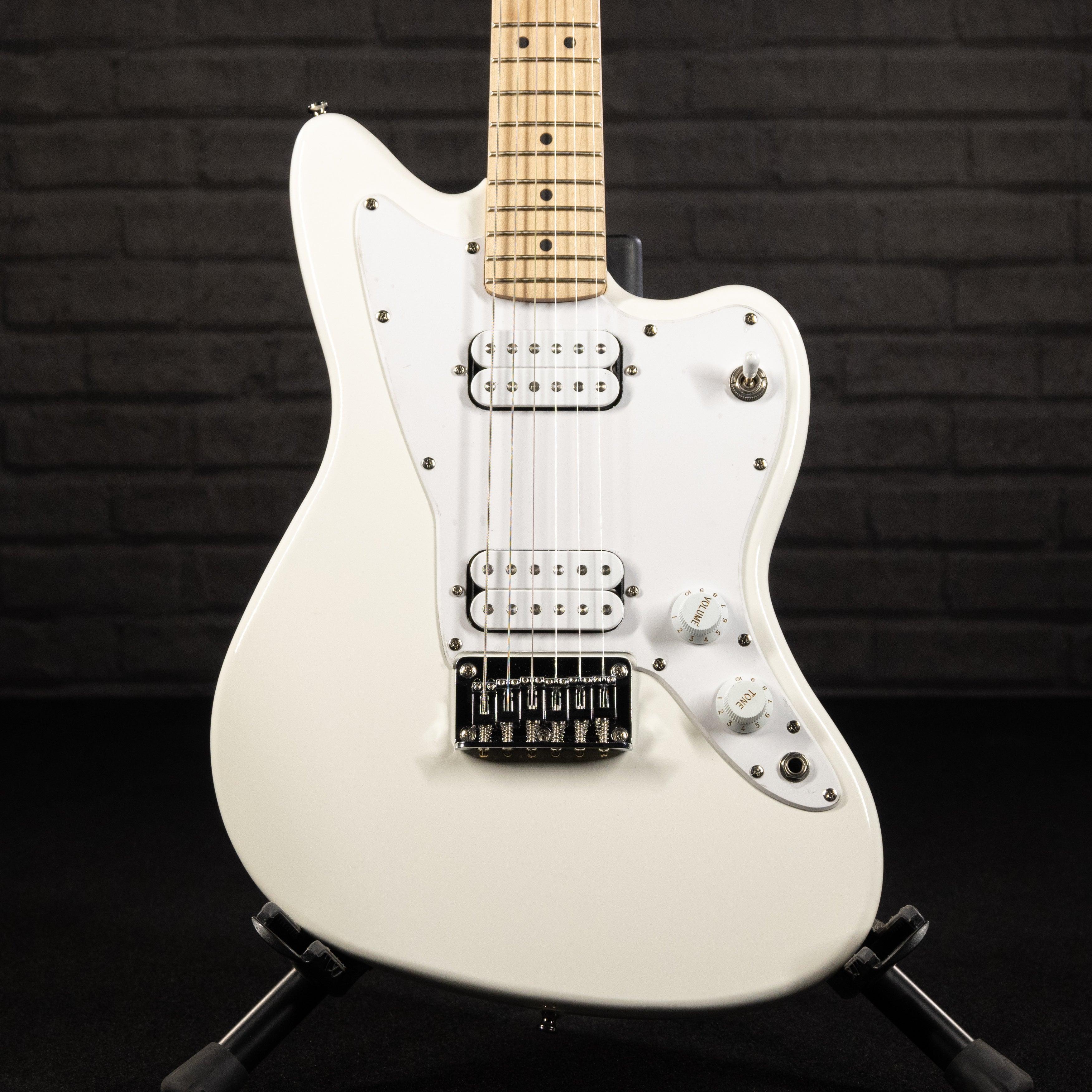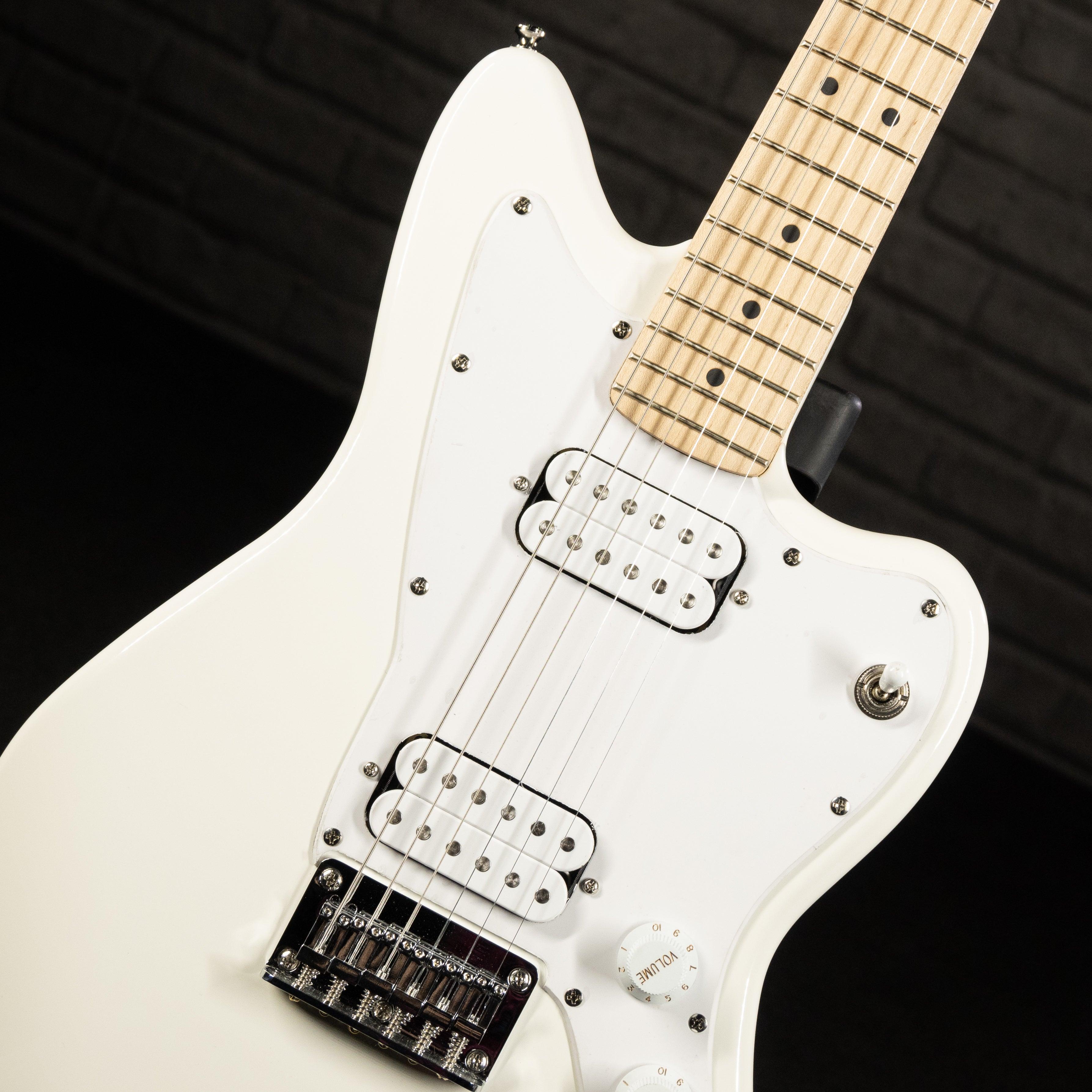 The Squier Mini Jazzmaster® HH is the perfect companion for players seeking a reduced-size instrument with classic styling and familiar Fender® tone. Highlights include a thin and lightweight body, an easy-to-play “C”-shaped neck profile, dual Squier humbucking pickups with 3-way switching for sonic variety, and a hardtail bridge for solid tuning stability.