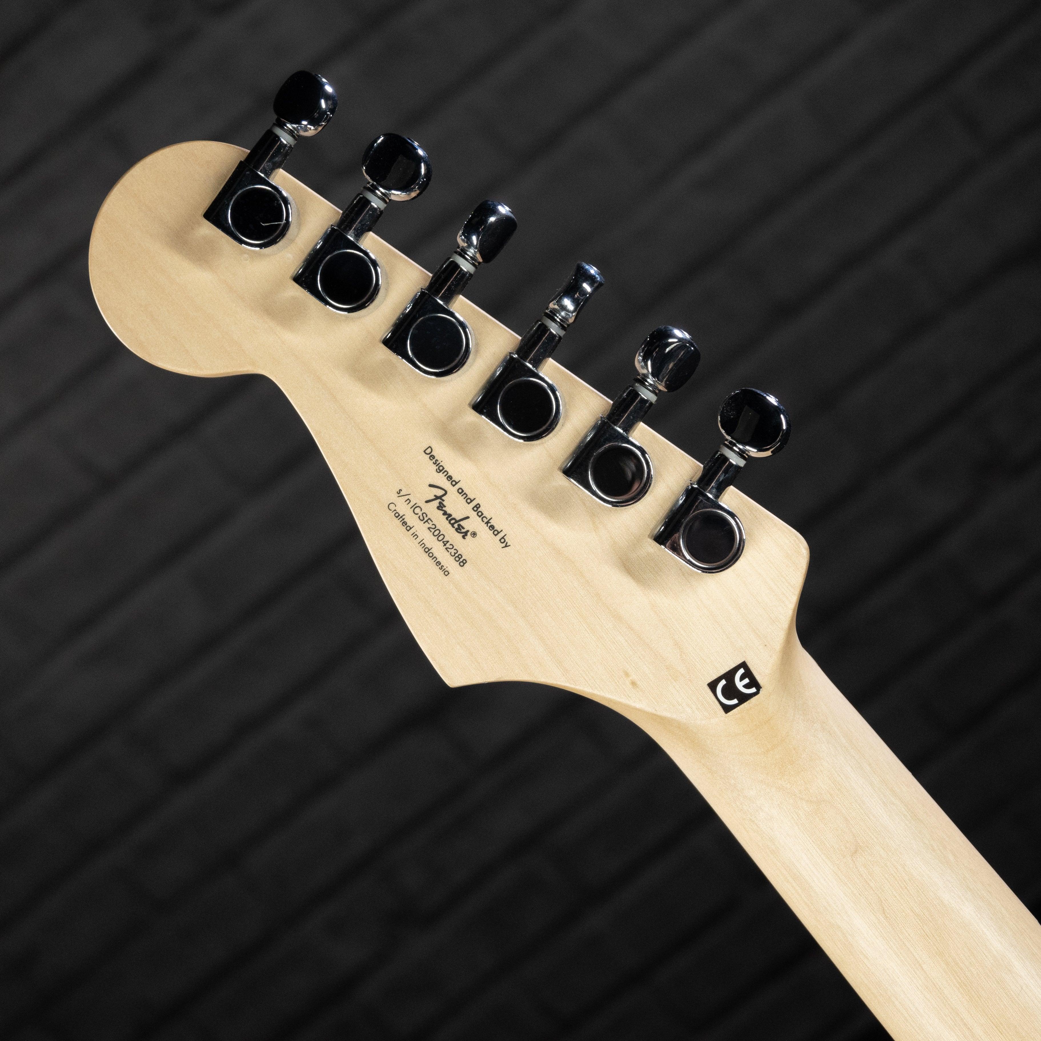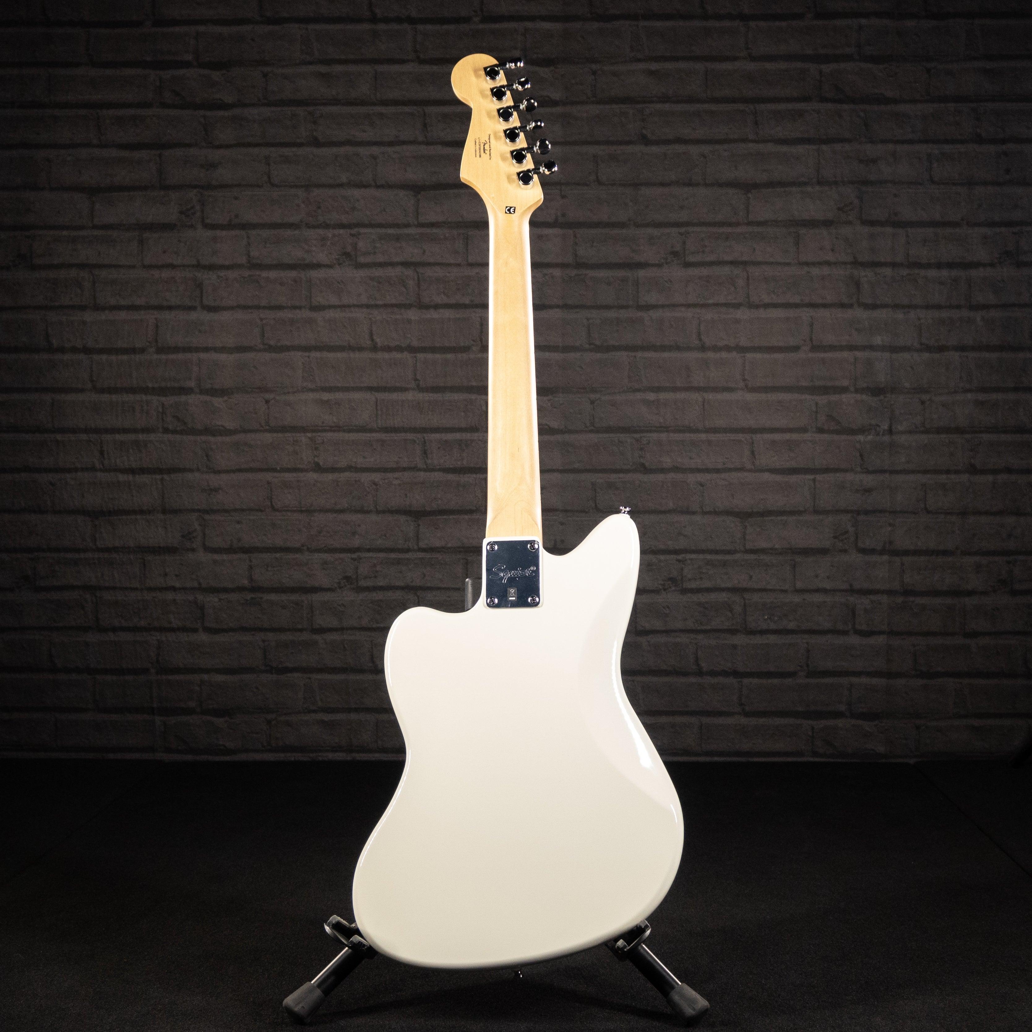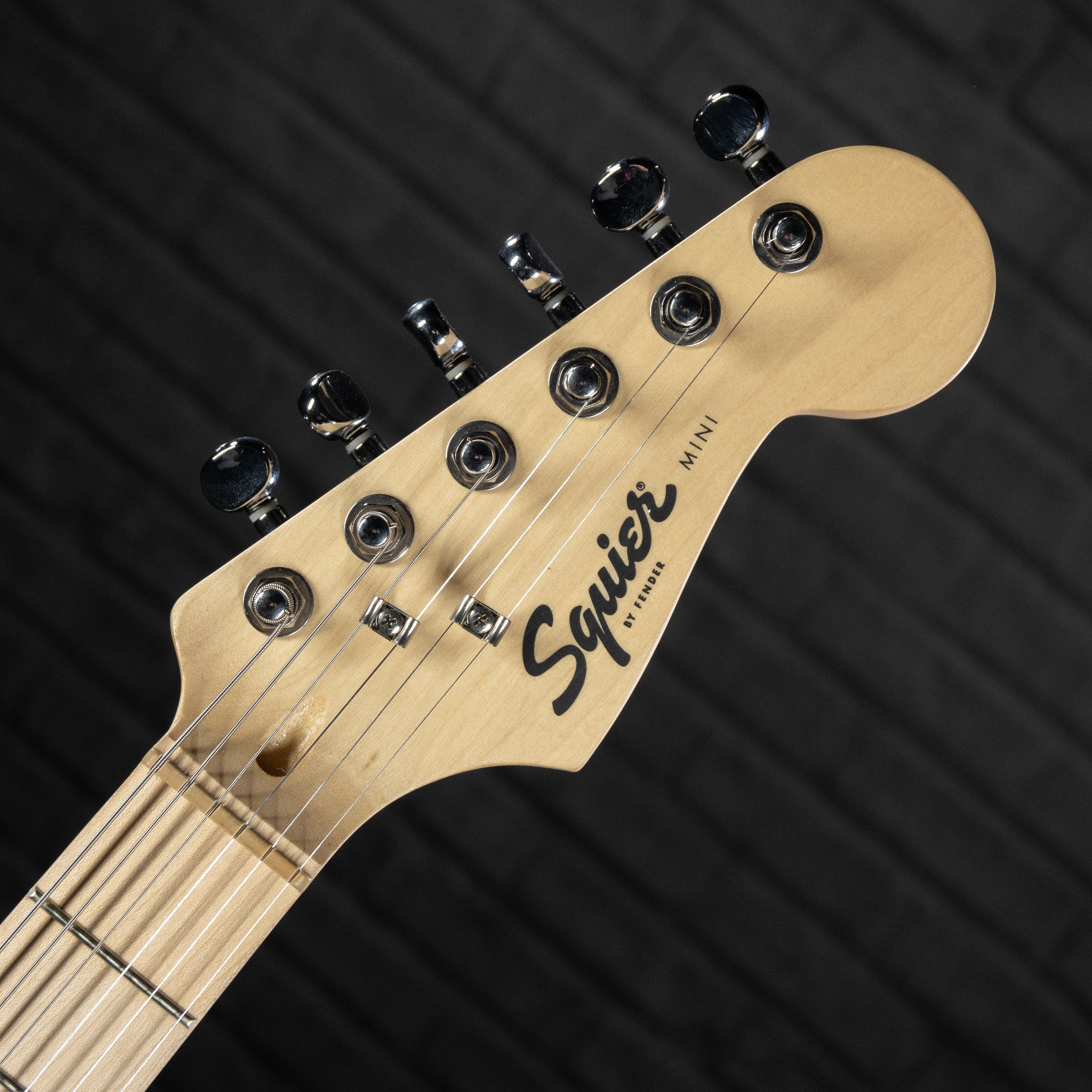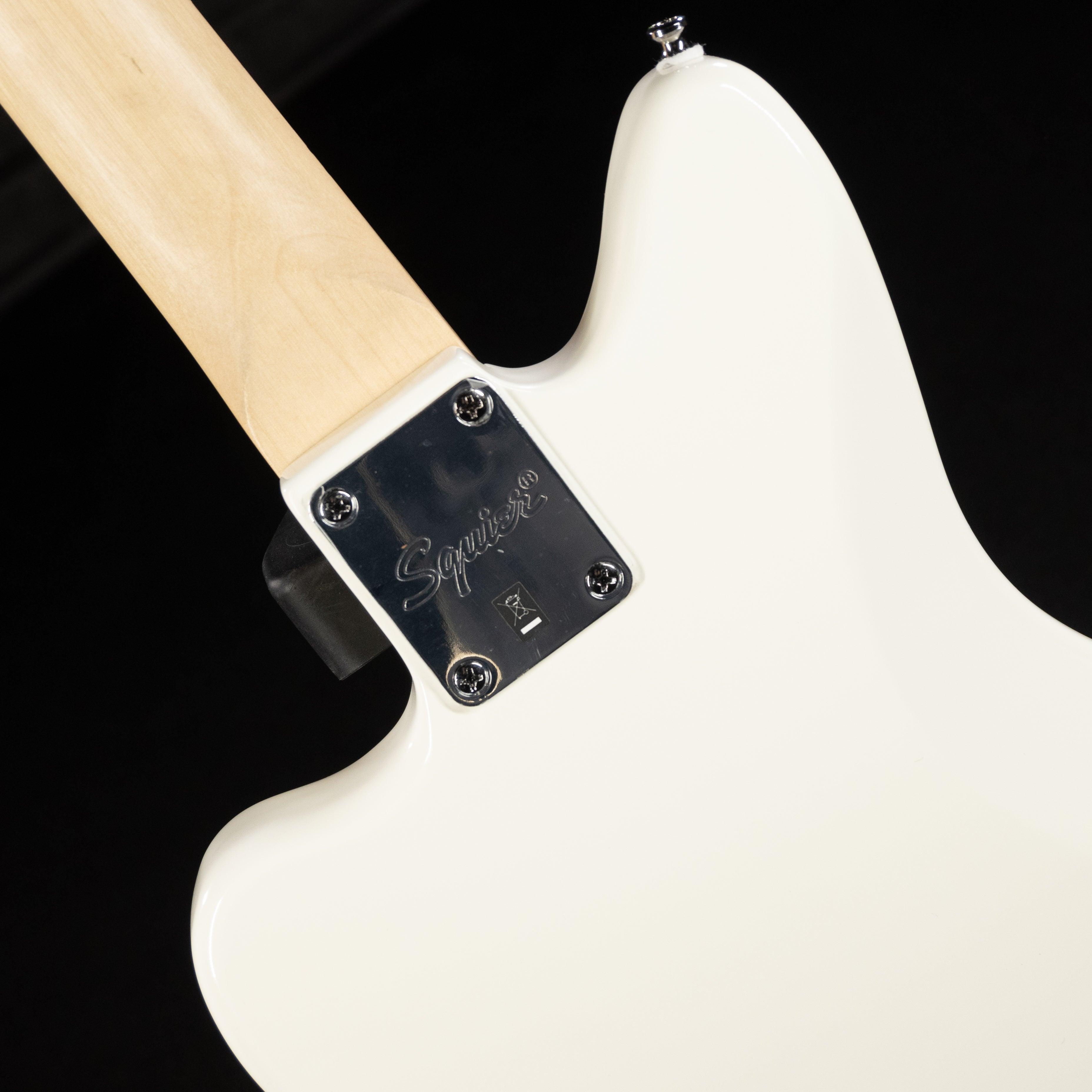 The Squier Mini Jazzmaster® HH is the perfect companion for players seeking a reduced-size instrument with classic styling and familiar Fender® tone. Highlights include a thin and lightweight body, an easy-to-play “C”-shaped neck profile, dual Squier humbucking pickups with 3-way switching for sonic variety, and a hardtail bridge for solid tuning stability.
