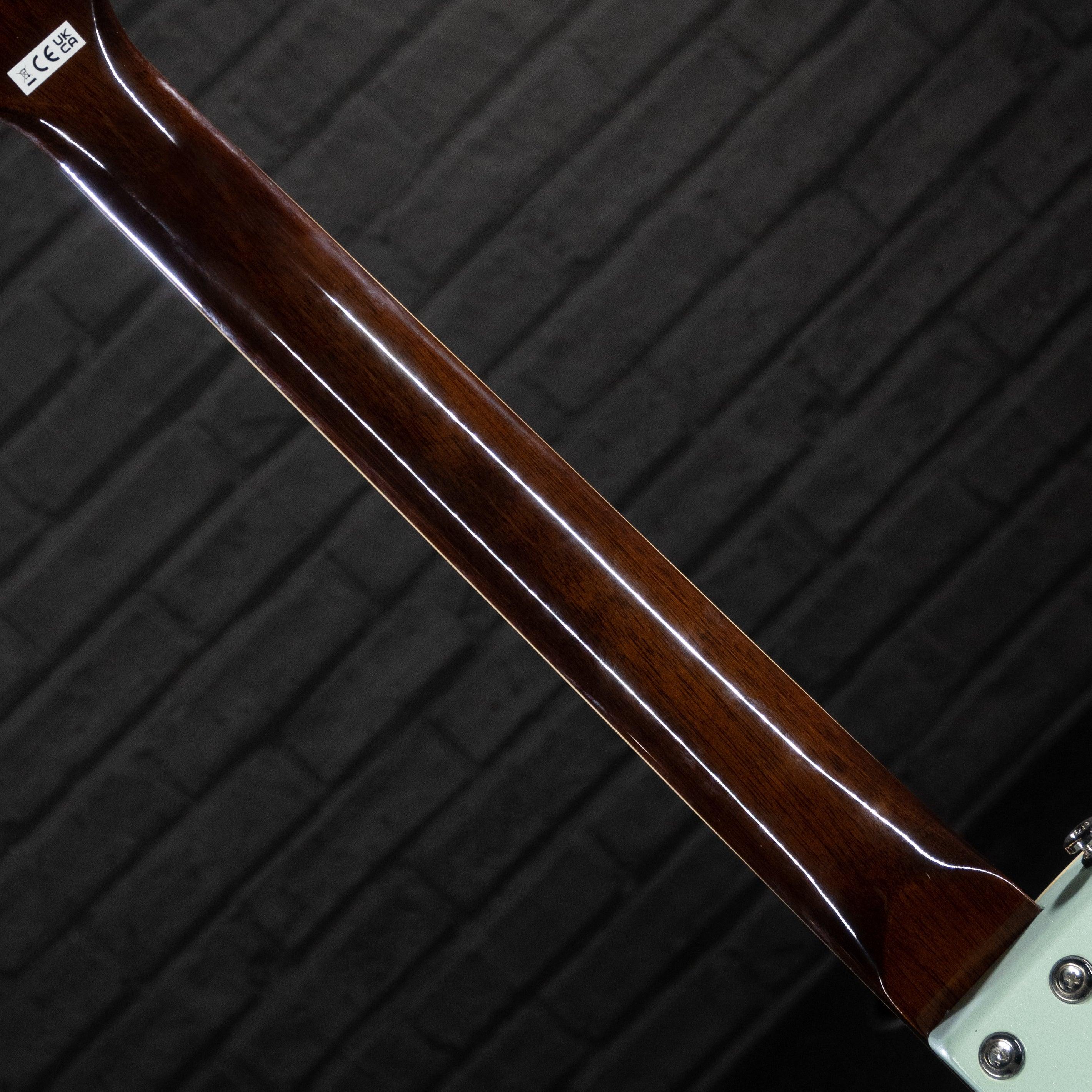 Bound nato bodies with stunning Mint Metallic, Sahara Metallic and Single Barrel Stain finishes are complemented by effortless mahogany-stained necks that feature 12”-radius laurel fingerboards, elegant pearloid Neo-Classic™ thumbnail inlays and 22 medium jumbo frets.