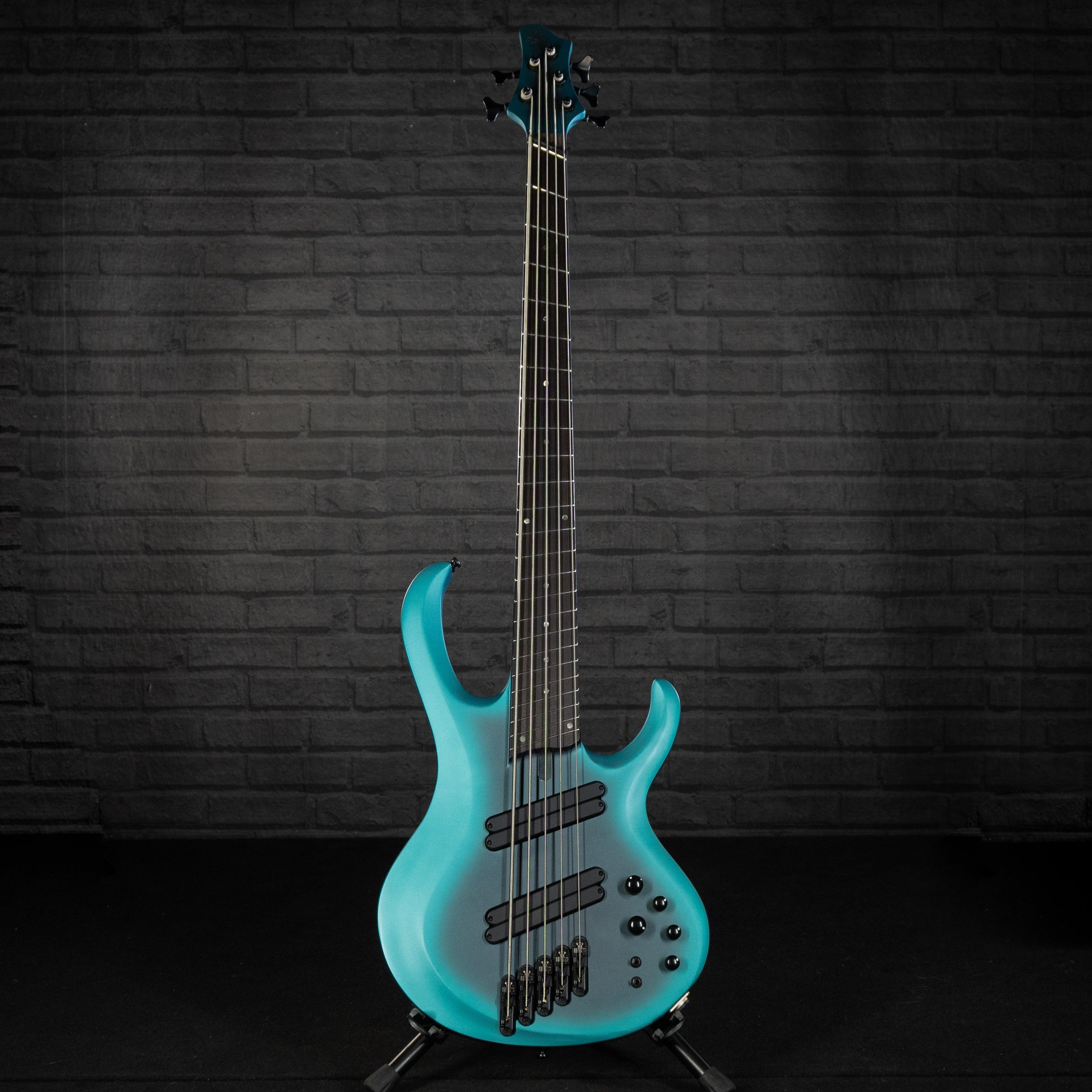 The Ibanez BTB605MS Electric Bass Guitar (Cerulean Aura Burst Matte) is an inspiring instrument, allowing you to easily power the stage or studio! Its 5-string neck-through design offers smooth playability, while the T1 humbucking pickups deliver velvety tones with powerful lows and mids. You can shape your sound with the 3-band EQ and mid frequency switch, or use the EQ bypass switch with its passive tone control - perfect for that "just right" tone! Get an exceptional bass experience with the Ibanez BTB605MS!