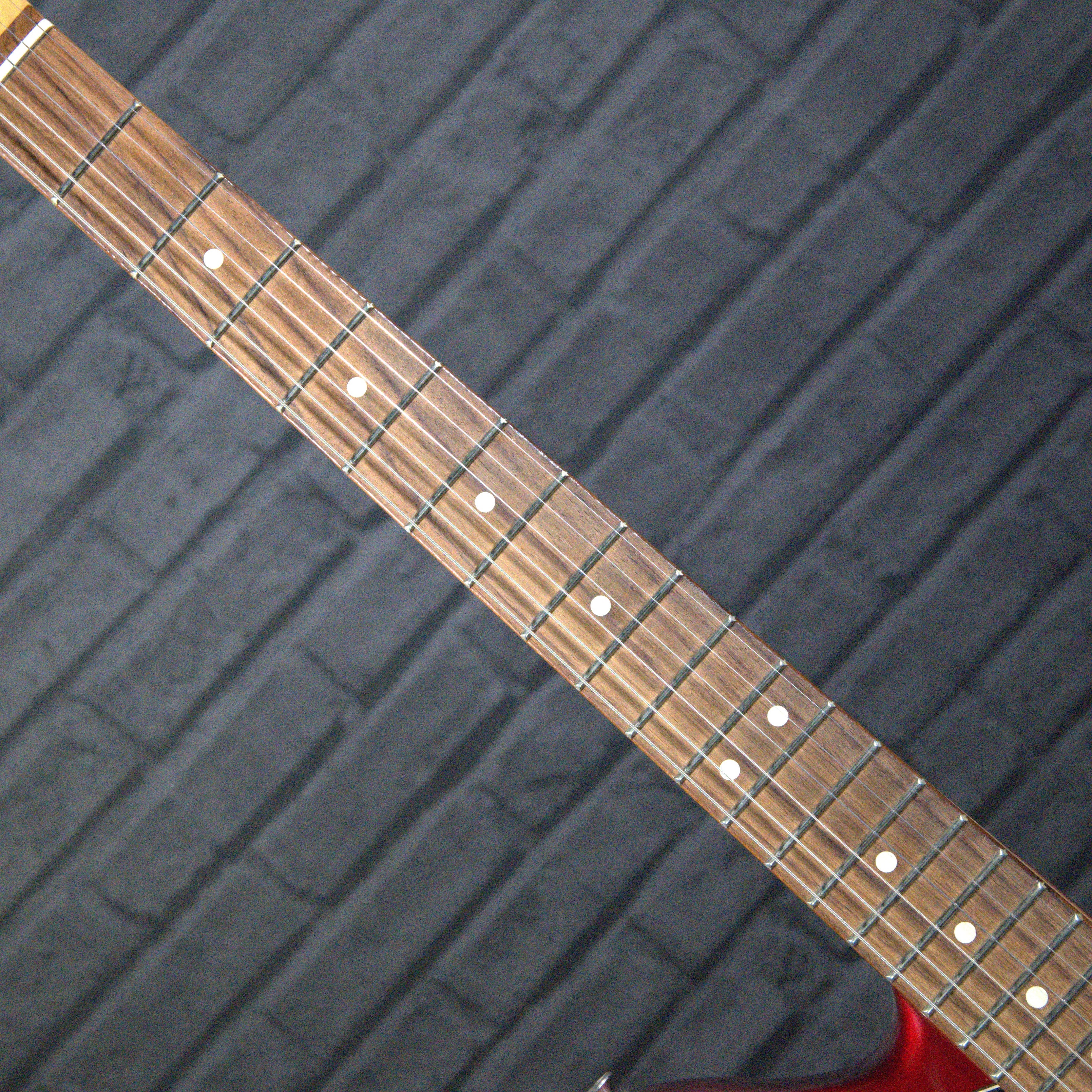 Experience the ultimate in playability and sound with the Legator N7FR (Crimson Fade). Featuring a bolt-on 1 Piece Roasted Maple neck, 27" scale, and 16" Radius Ebony Fingerboard with 24 medium jumbo Nickel Frets, this guitar offers an unparalleled playing experience. Enjoy additional features like MOP Offset Dot Inlays, Luminlay Side Dots, an Ash body, FISHMAN PU, master volume, 3-way blade, FLOYD ROSE 1500 series & locking tuners, and a sophisticated satin finish. Experience the ultimate in sound and style with the Legator N7FR!