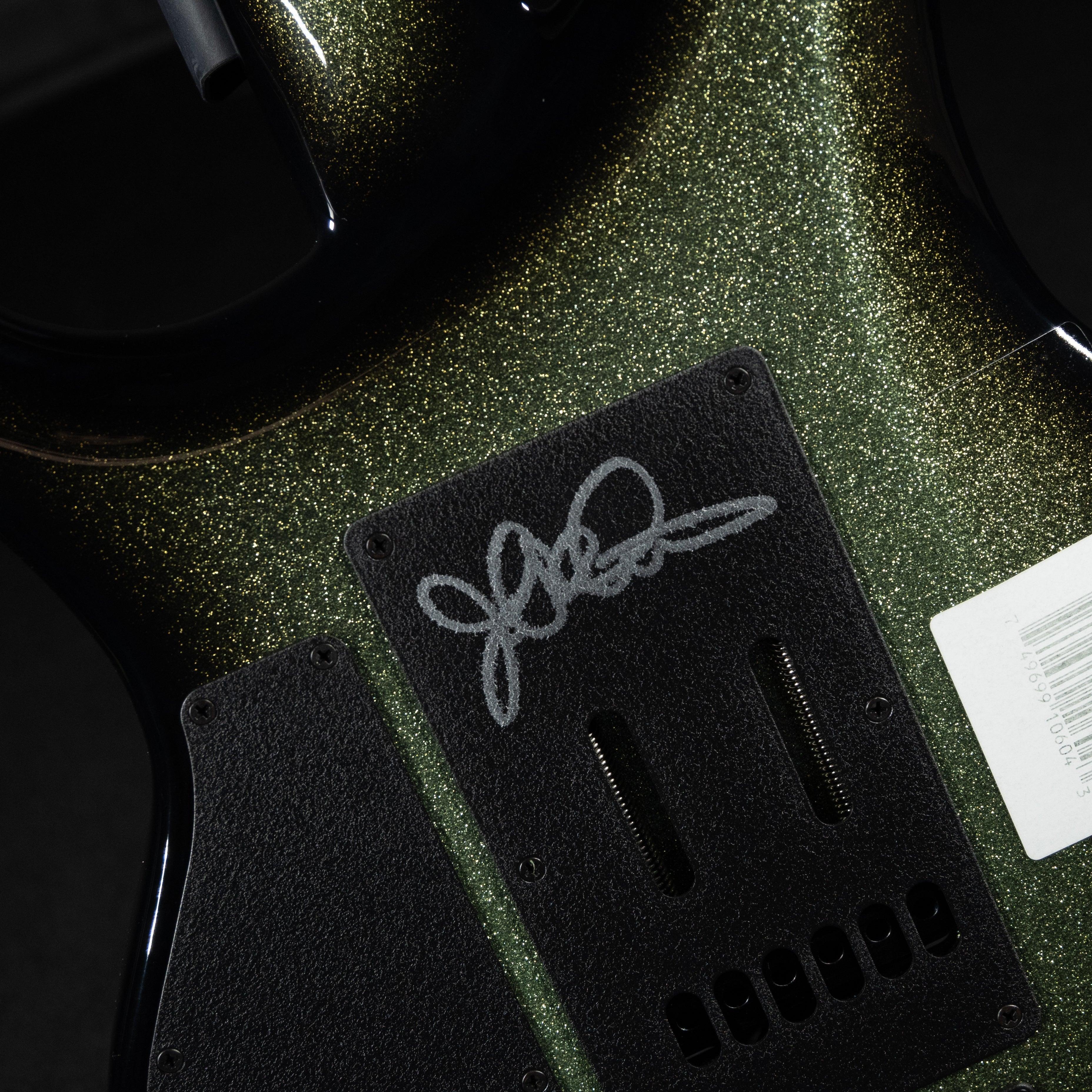 All black hardware includes bridge, knobs, tuners, switches, pole pieces and backplates including a tremolo cover hand-signed by John Petrucci.