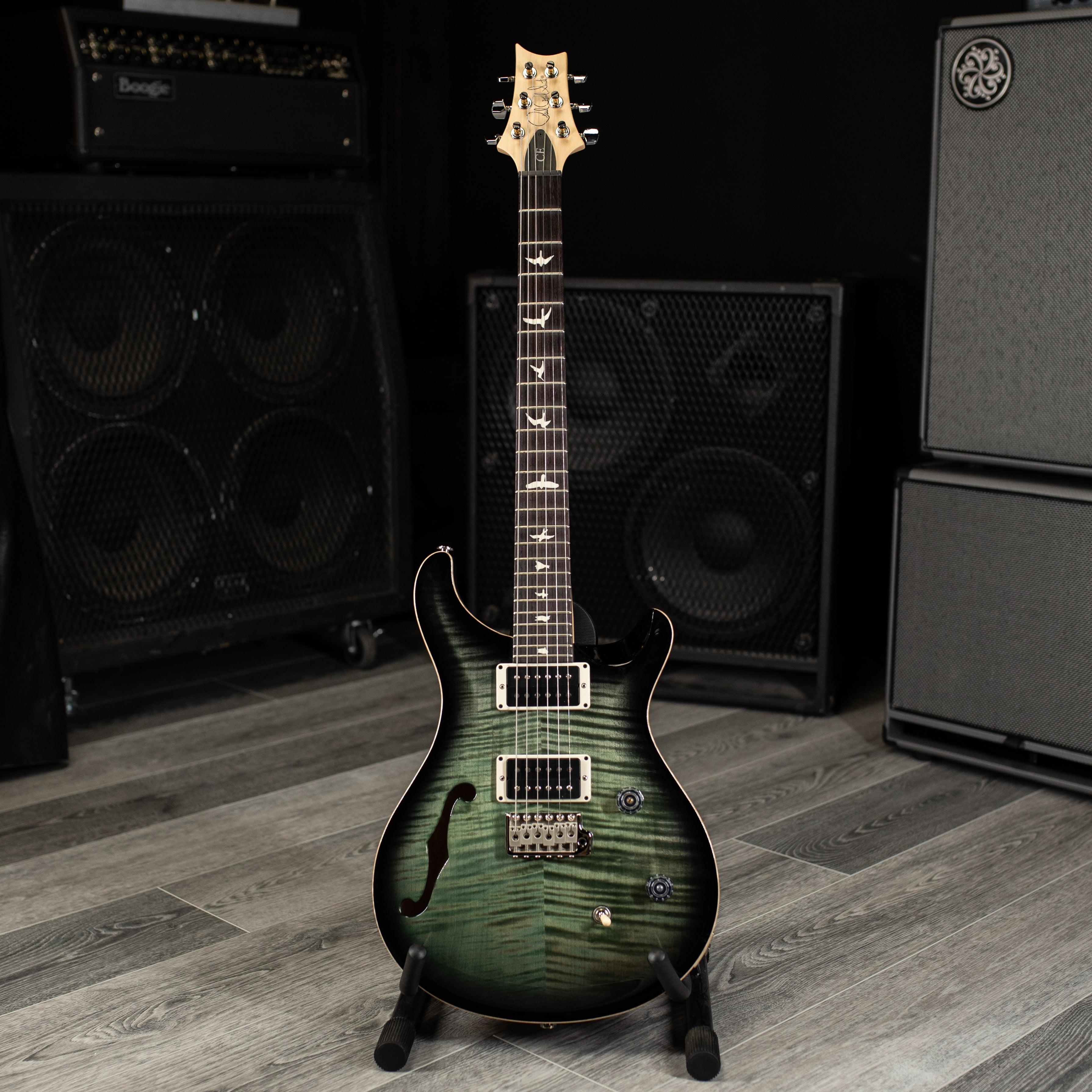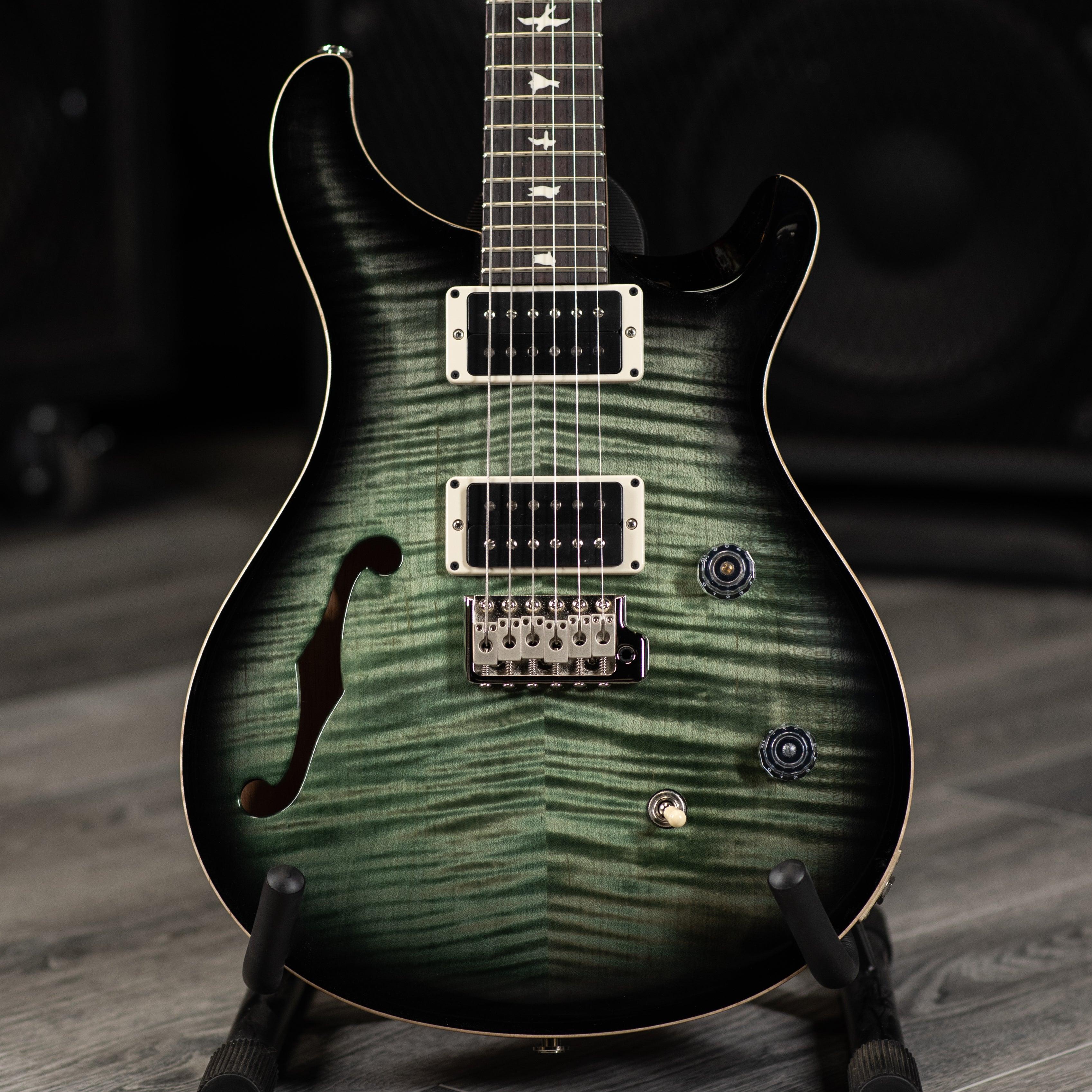 Combining the snap and sustain of a bolt-on guitar with the airy resonance of a semi-hollow body, the CE 24 Semi-Hollow is a truly unique addition to the PRS Bolt-On lineup. The body pairs the traditional combination of a mahogany back and maple top with a bolt-on maple neck and rosewood fretboard. The neck features a Pattern Thin carve and satin nitro finish for a natural, addictive feel. The electronics consist of a volume and push/pull tone control with a 3-way toggle switch, giving a total of six classic sounds from the PRS 85/15 pickups.