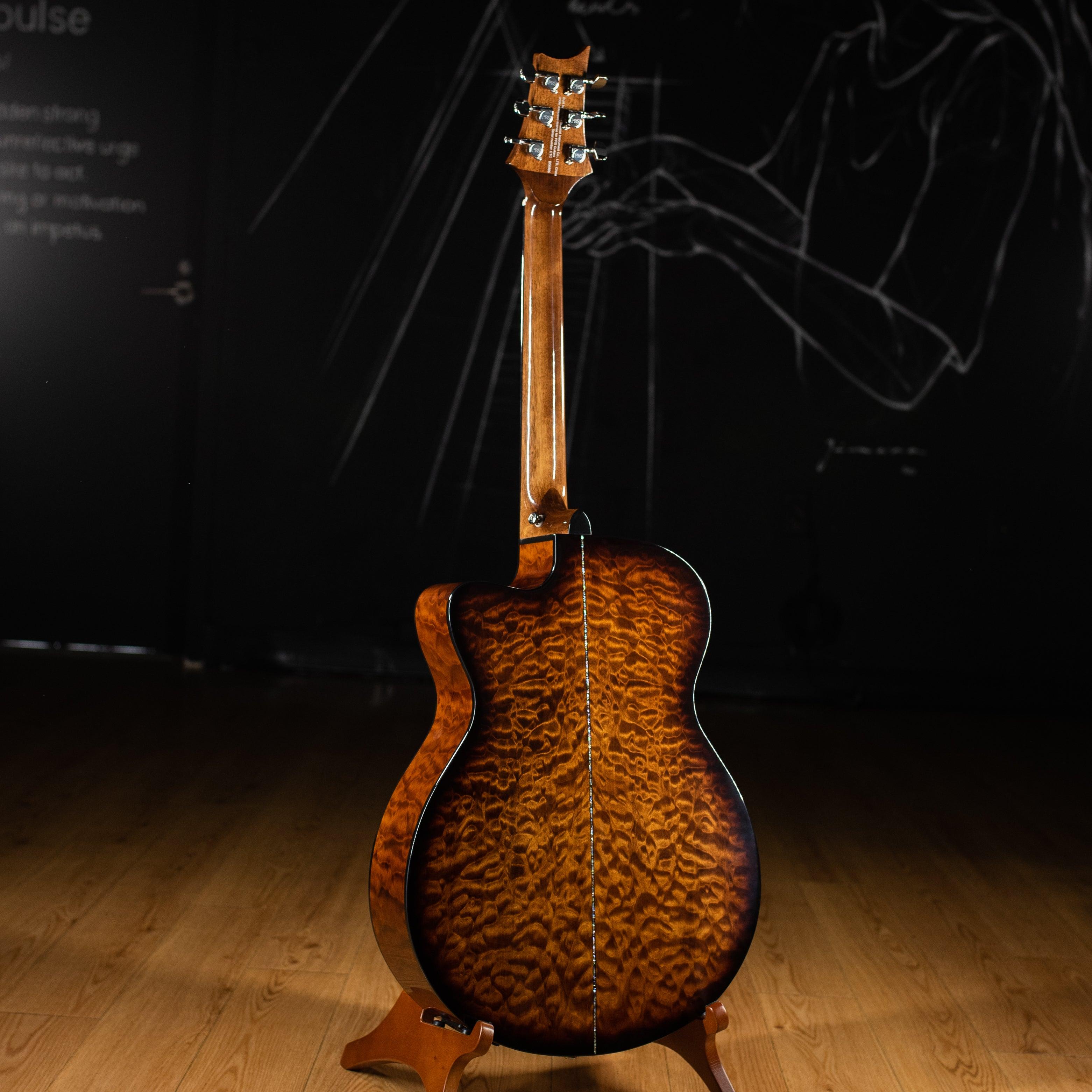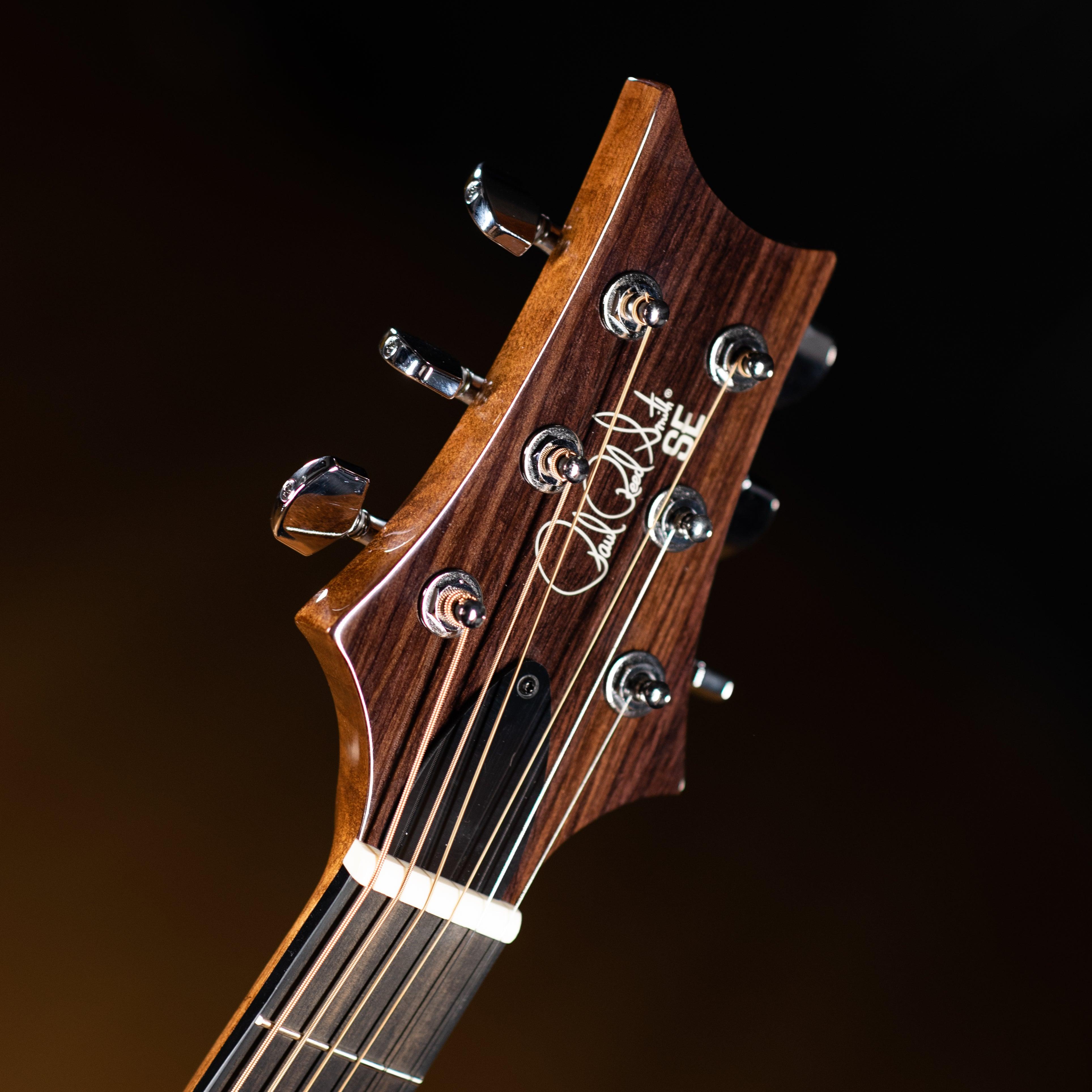 Additional high-quality features include a solid spruce top, ebony fretboard and bridge, bone nut and saddle, as well as PRS trademark bird inlays and headstock design. Ships with a high-quality hardshell case.