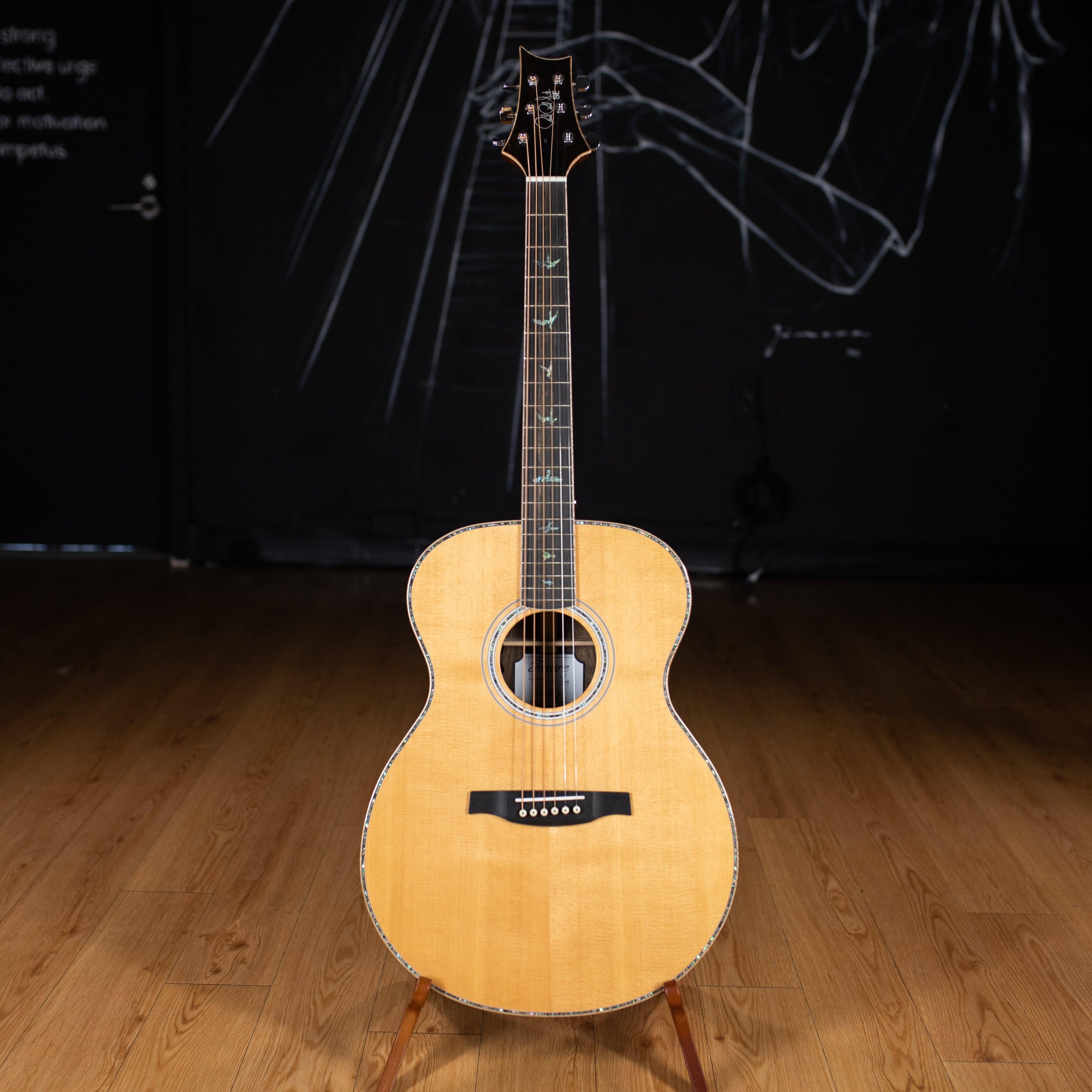 The SE T60E is beautifully appointed with abalone and figured maple accents. Additional high-quality features include a solid spruce top, ebony fretboard and bridge, bone nut and saddle, as well as PRS trademark bird inlays and headstock design. Ships with a high-quality hardshell case.
