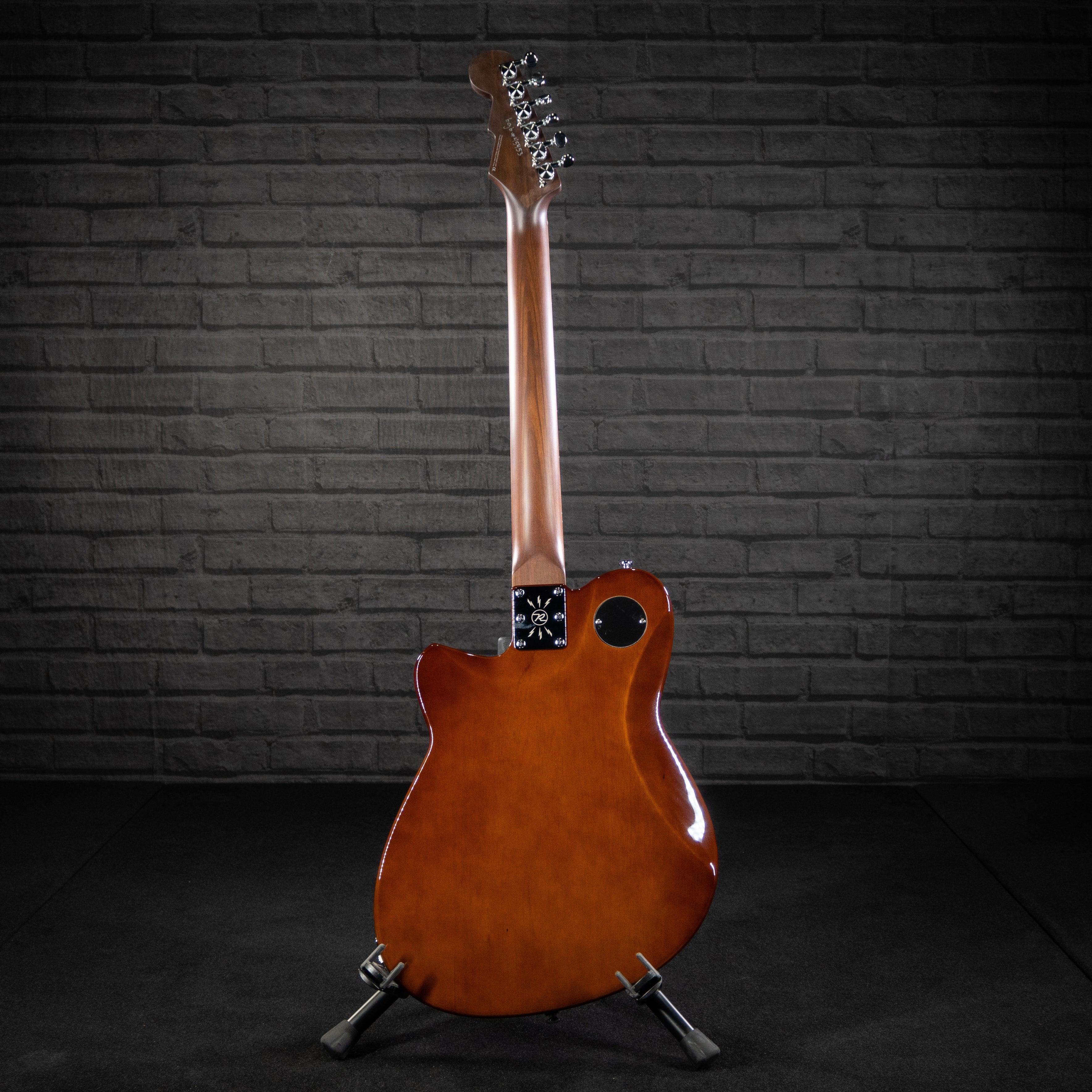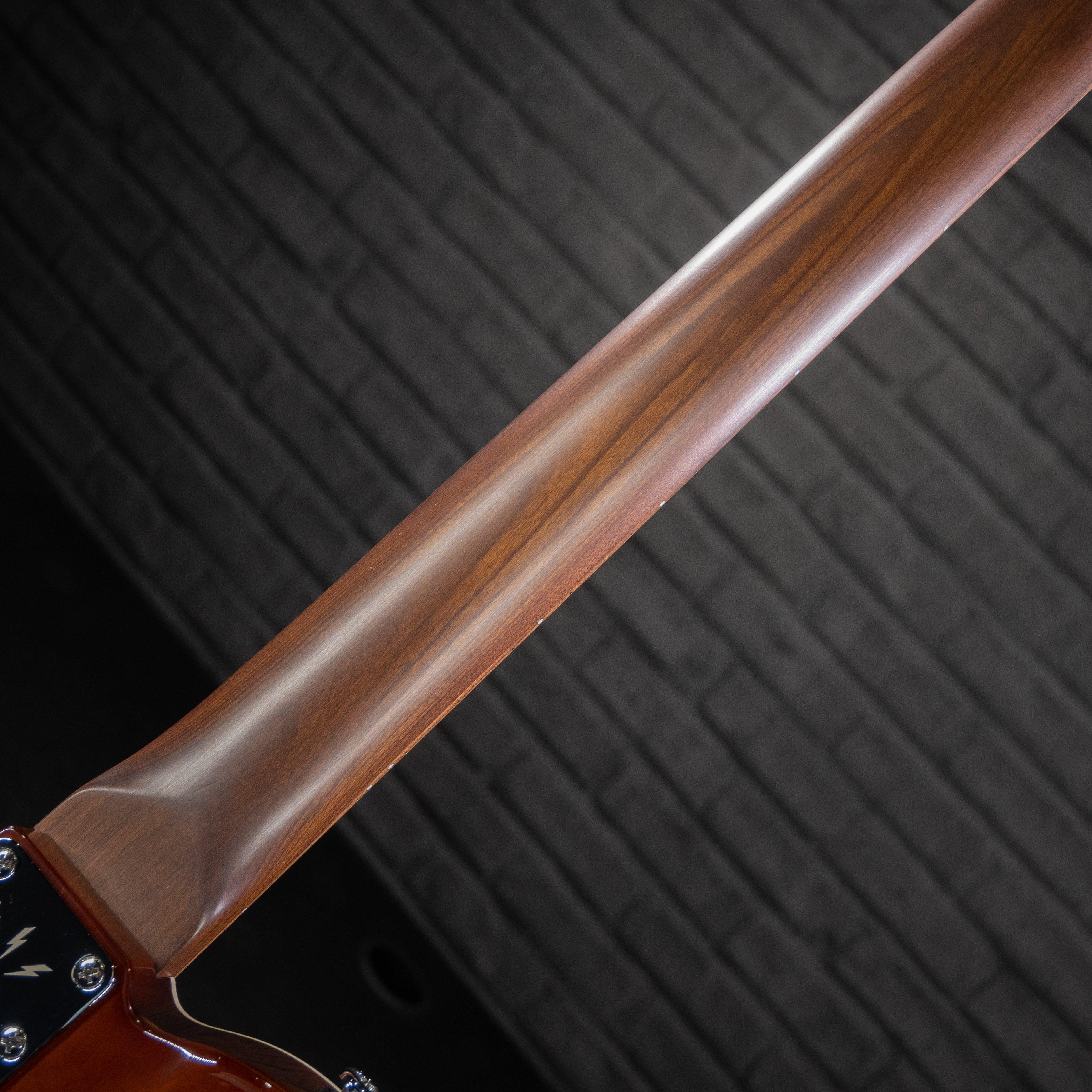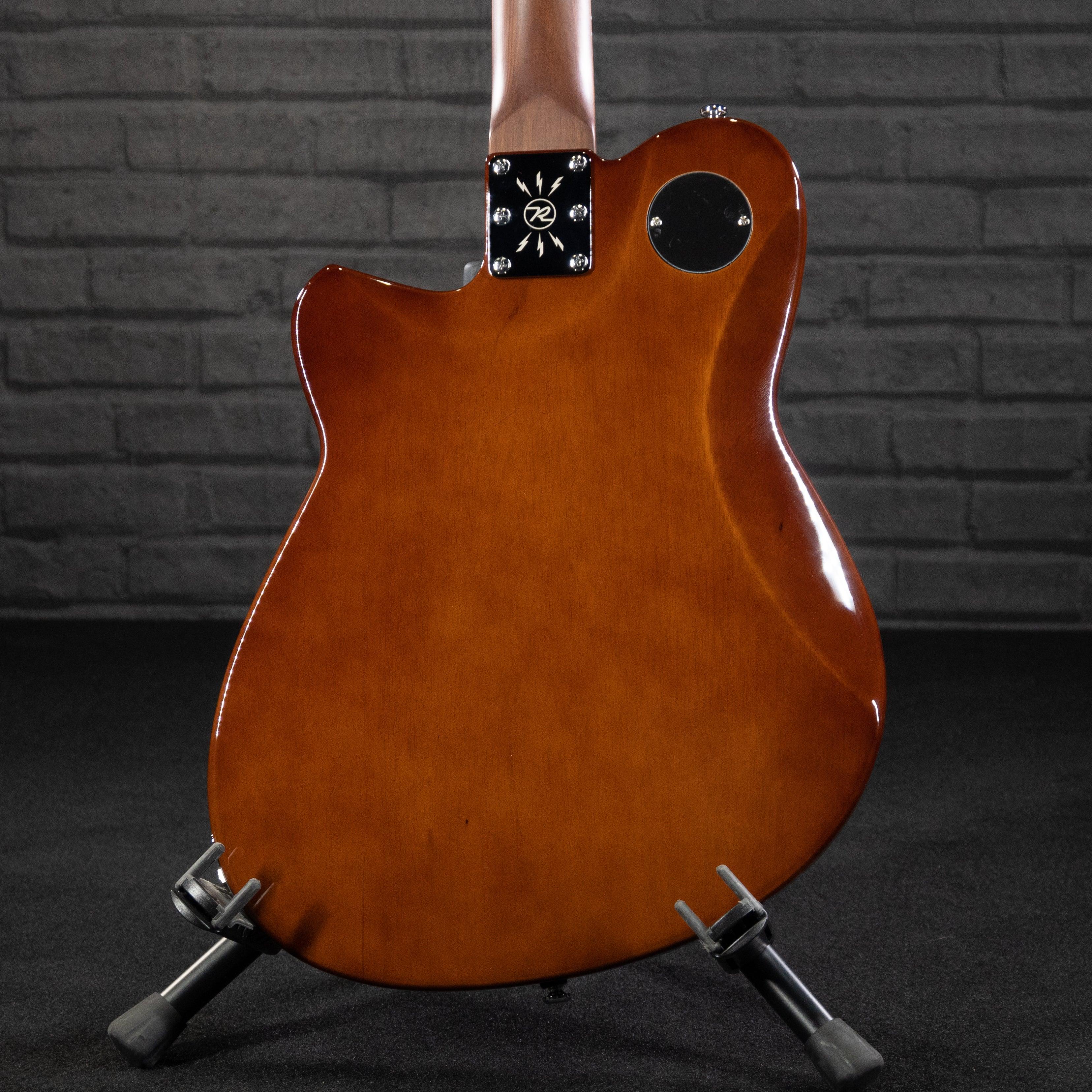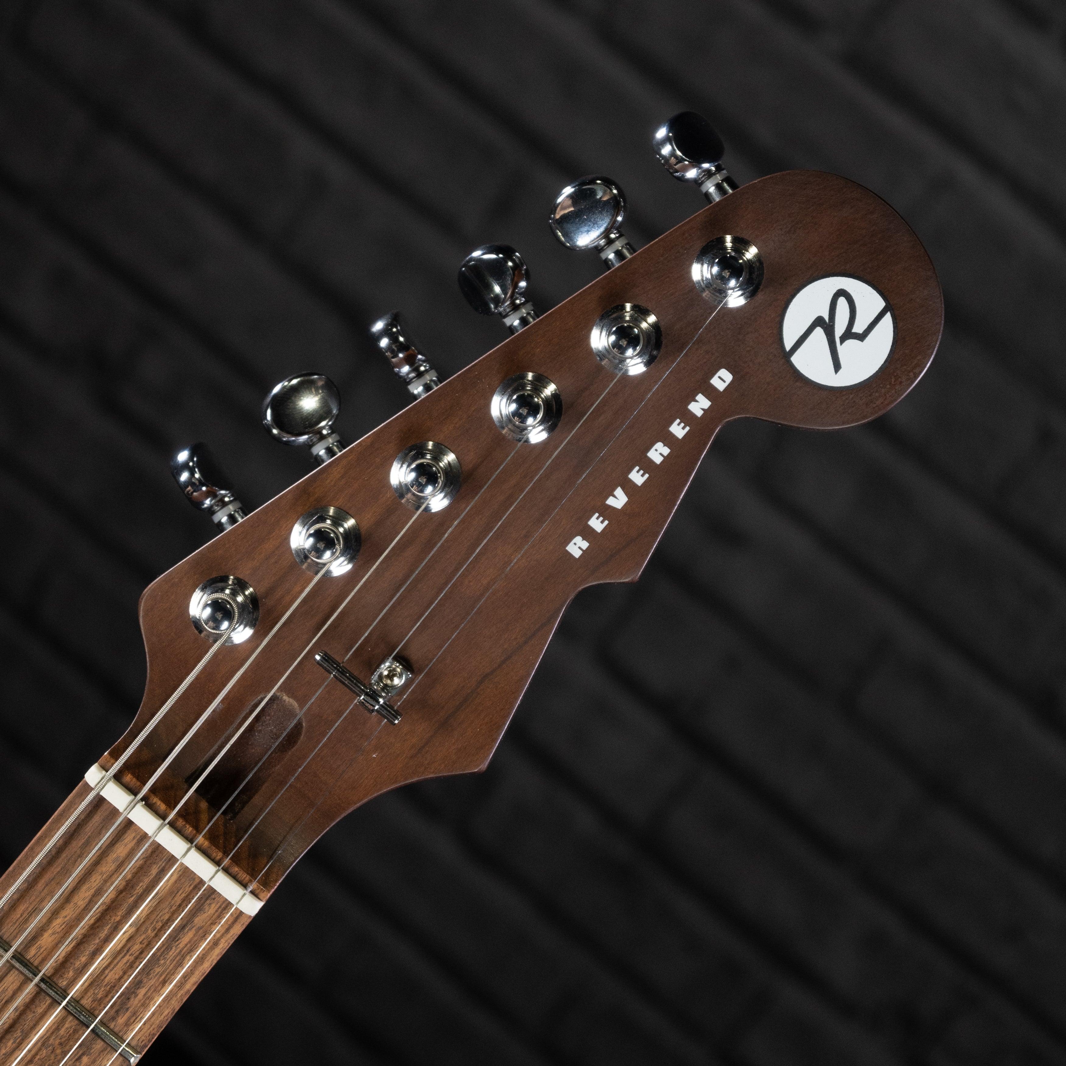 The guitar that everyone’s asking for — The Reverend Charger RA! With a Railhammer Hyper Vintage Humbucker at the bridge, a Railhammer Nuevo 90 at the neck, flame maple tops and dark roasted maple necks, this guitar is fierce.