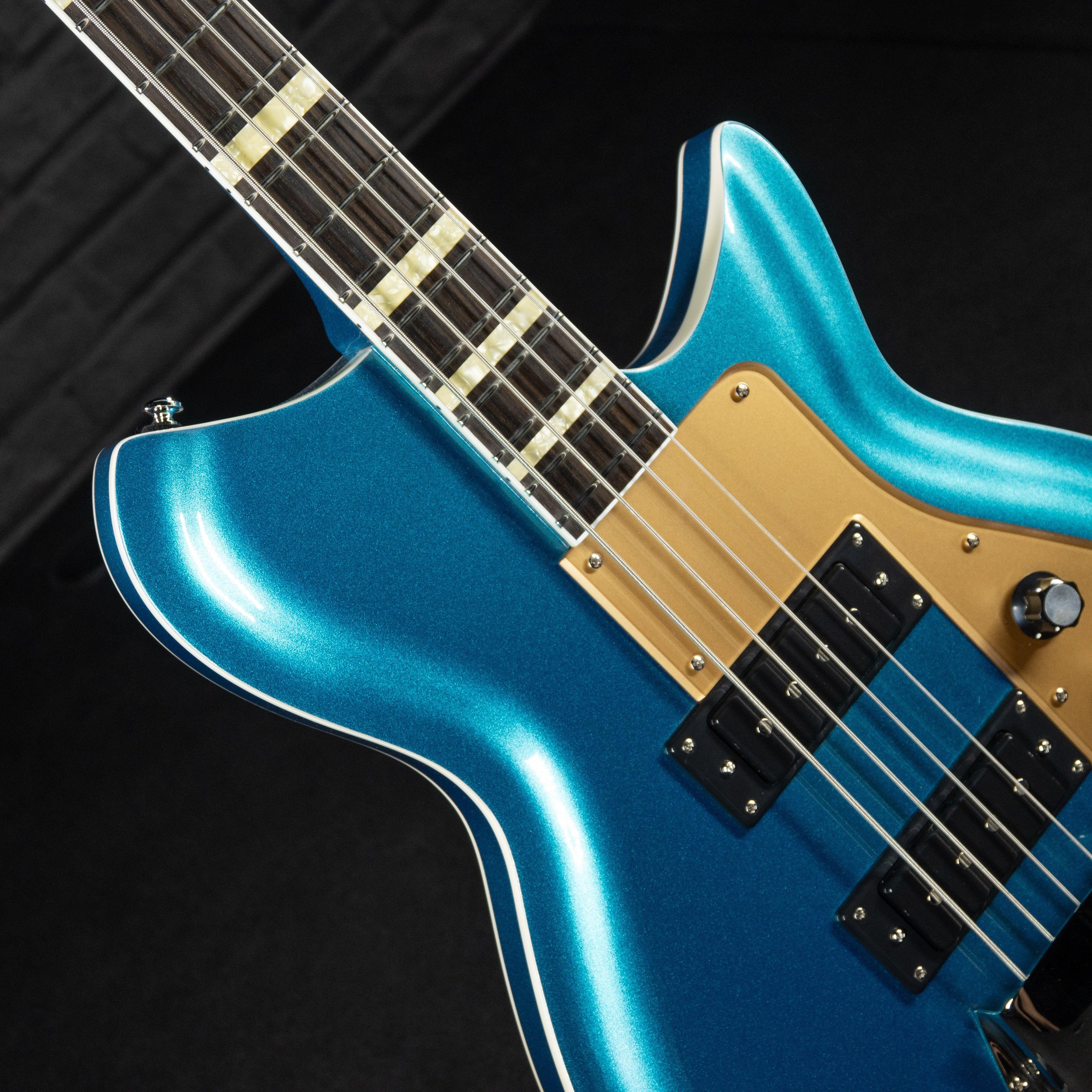 Other features include our signature Rivolta full width fretboard inlays, bound body, fretboard and headstock, 20 medium jumbo frets and gold plexi appointments.