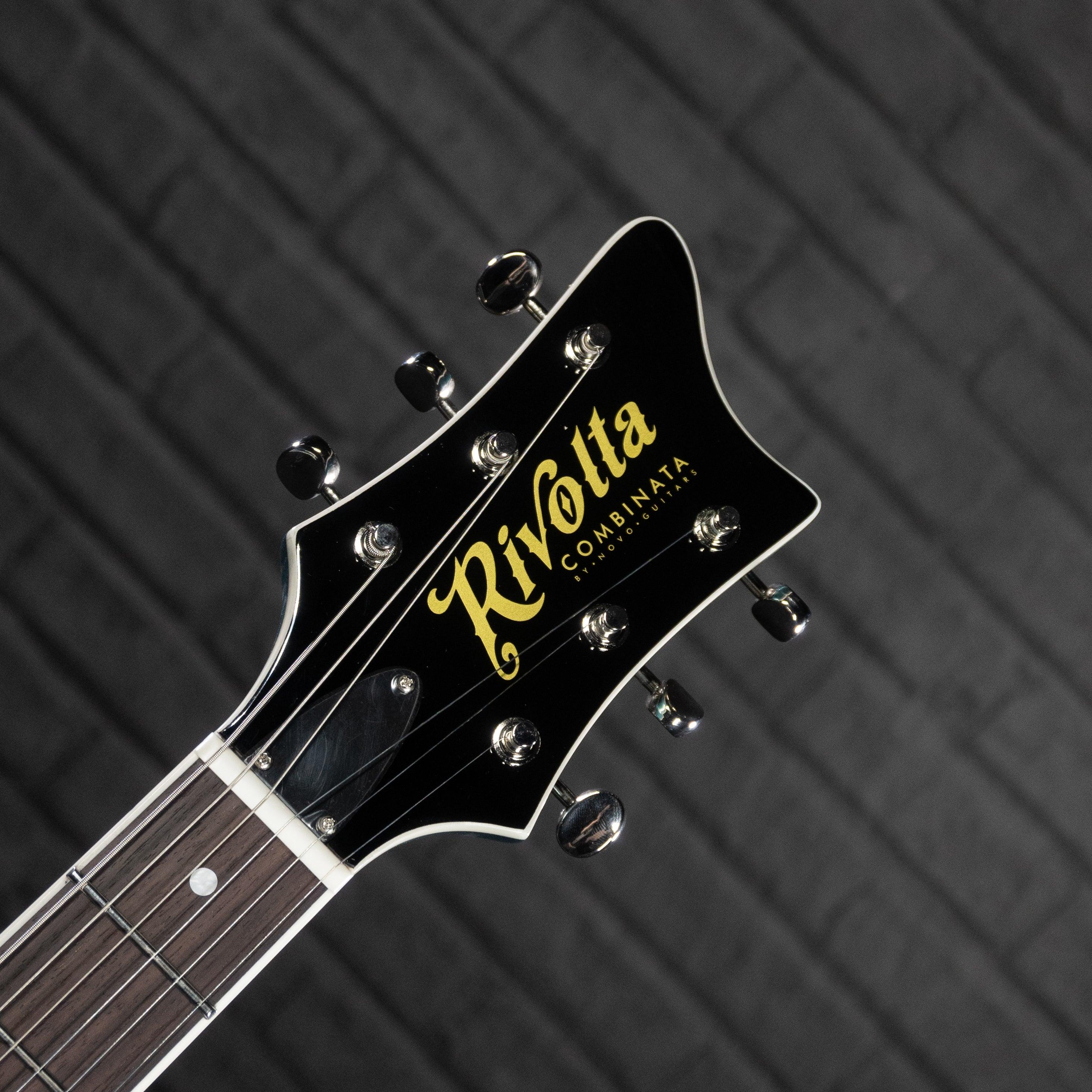 The Mondo Combinata is the evolution of a design with which followers of Dennis Fano should be very familiar. The larger and slightly offset body give the Combinata a shapely silhouette and more substantial feel. The chambered mahogany body features a sleek German carve which adds a classic, vintage appearance and depth to the Combinata’s aesthetic. The 25″ scale mahogany set-neck sports the comfortably “Rivolta Chunky C” neck profile, with 24 medium jumbo frets.