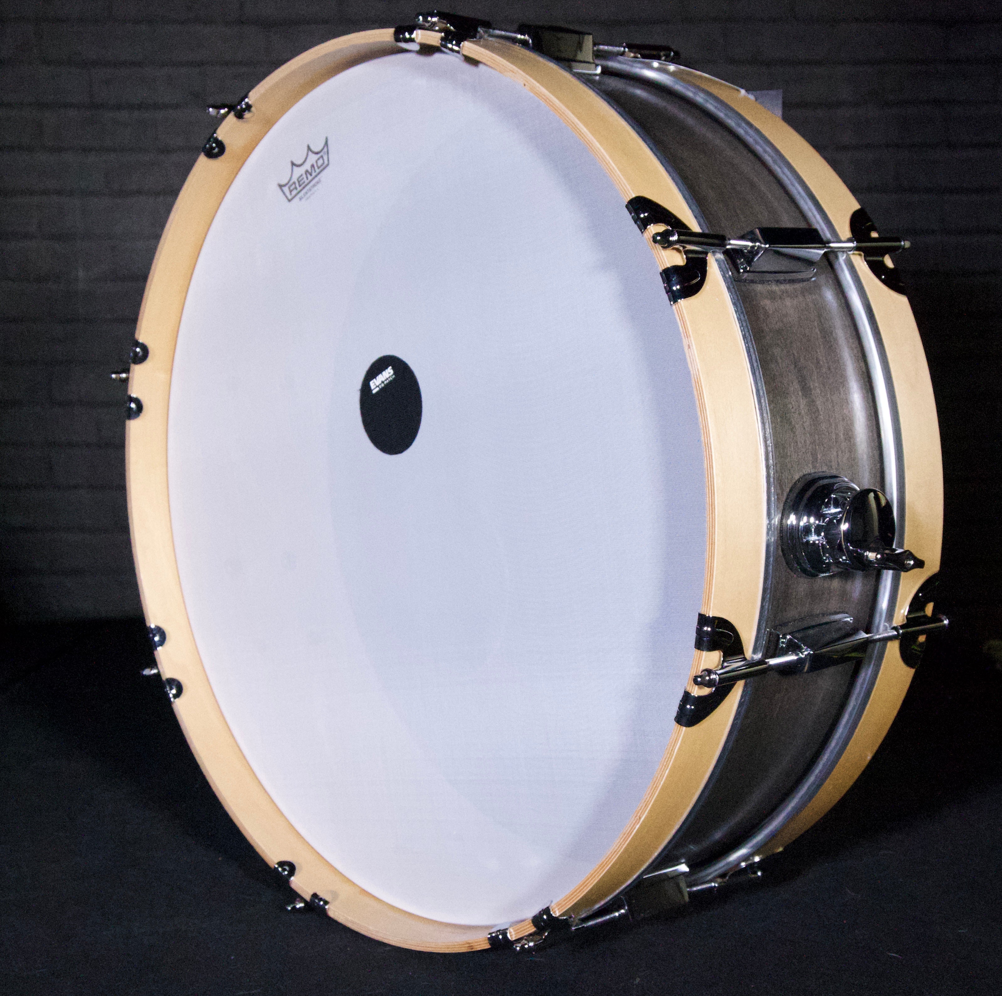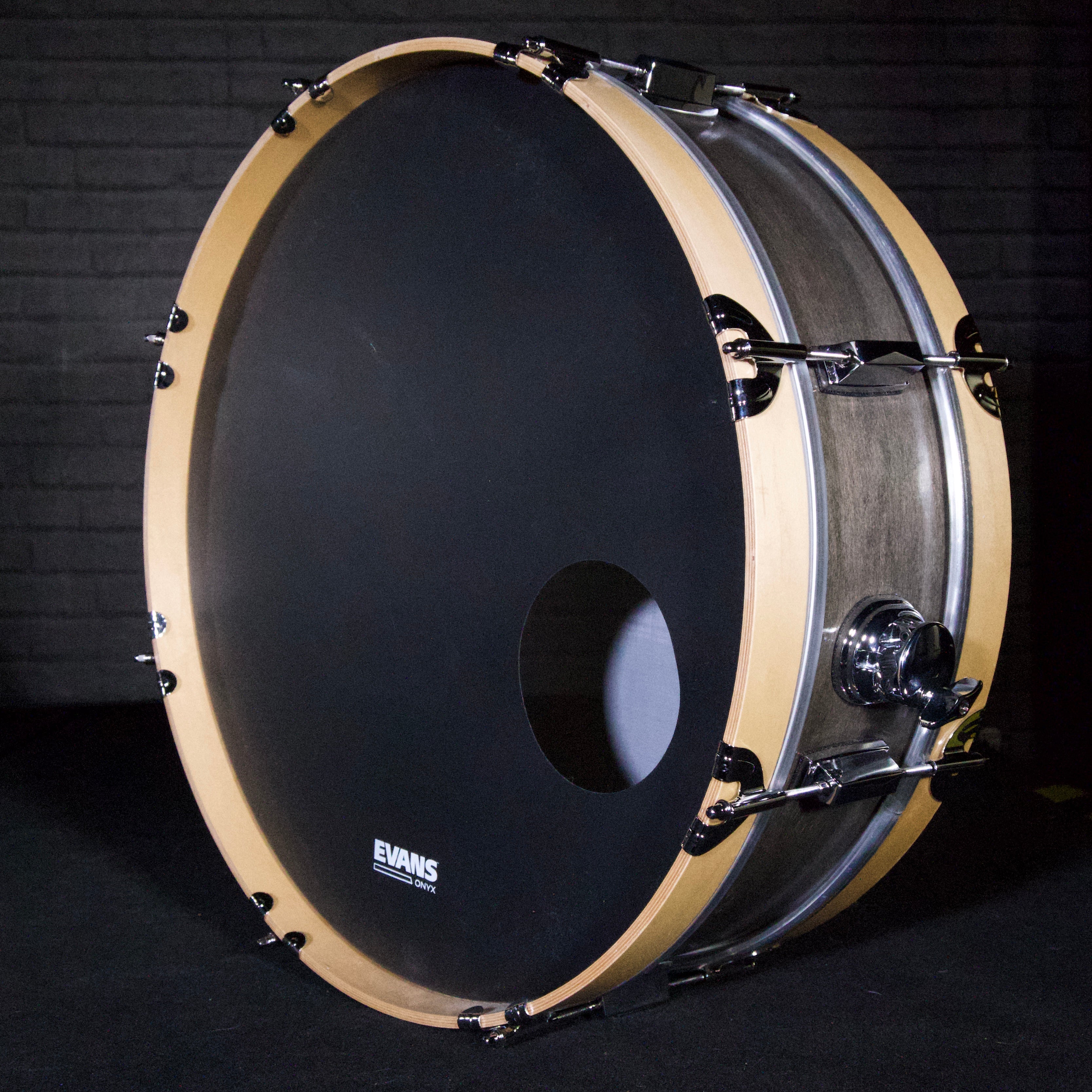 The Skinny Bass Drum 2 Pro model is the perfect solution for the gigging musician that needs a small, compact bass drum but doesn’t want to sacrifice sound. The 6″ deep x 22” diameter Keller maple shells, and high quality hardware give this bass drum a nice punchy mid range bass drum tone. The compact size makes this the perfect solution for playing in tight spaces and small venues where space can be an issue. The Skinny Bass Drum 2 Pro is able to cut through lightly amplified guitars with its punchy tone and also will grab some attention with its unique size and finish with stained shell and maple hoops.