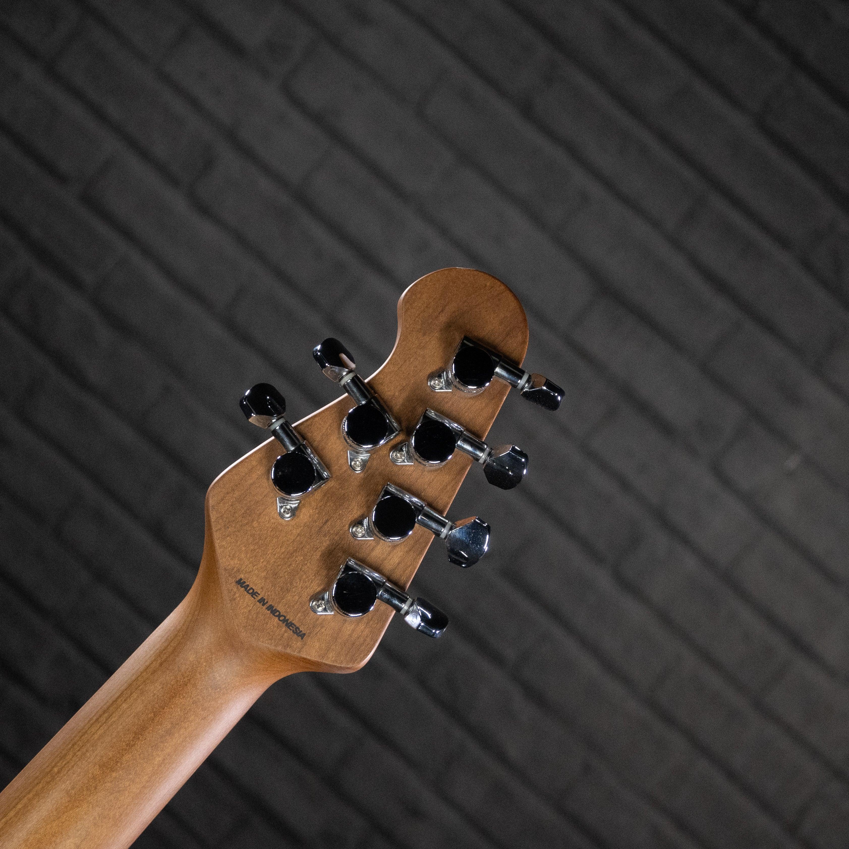 For a classic look and feel in a modern design, the Valentine combines the innovation and playability that Ernie Ball Music Man guitars are known for in a classic, familiar design. Featuring a Mississippi Swamp Ash slab body, two pickups (humbucker in neck & single coil in bridge position, inside a humbucker casing), a 12dB “Push-Push” boost, a roasted maple neck/fretboard, and locking tuning machines, the Valentine has become a classic in its own time.
