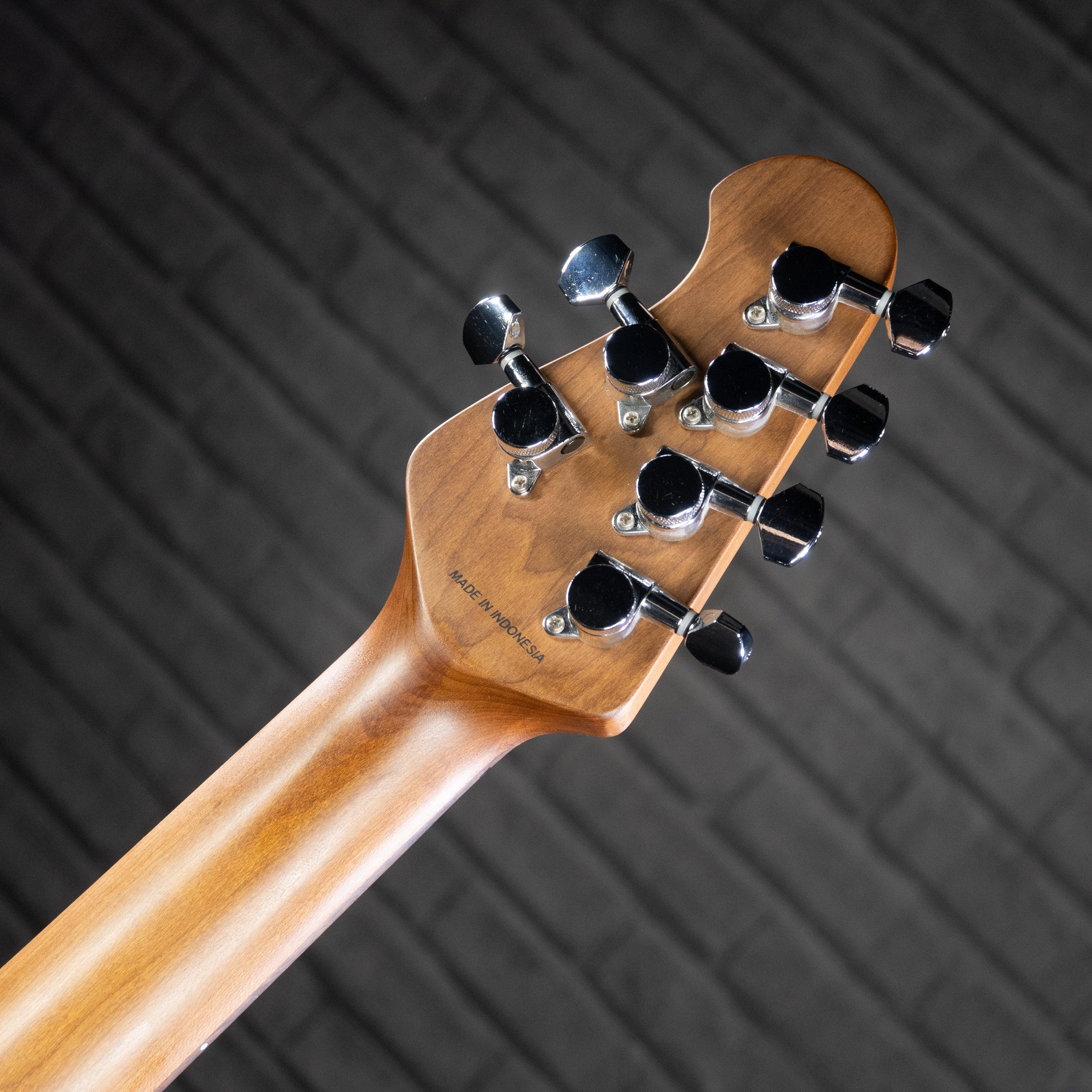 Meet the latest all-new design in the Sterling by Music Man roster: the Sabre. Its eye-catching nyatoh body and flame maple top are crafted into a comfortable, modern shape unlike any other. Loaded with locking tuners, stainless steel frets, and a modern C-shaped roasted maple neck, this guitar makes shredding feel easier than ever. Plus, with the hum-free Fishman Fluence Modern Humbucker pickups, its tone is unmatched, achieving clarity even while handling all of the gain you can throw at it.