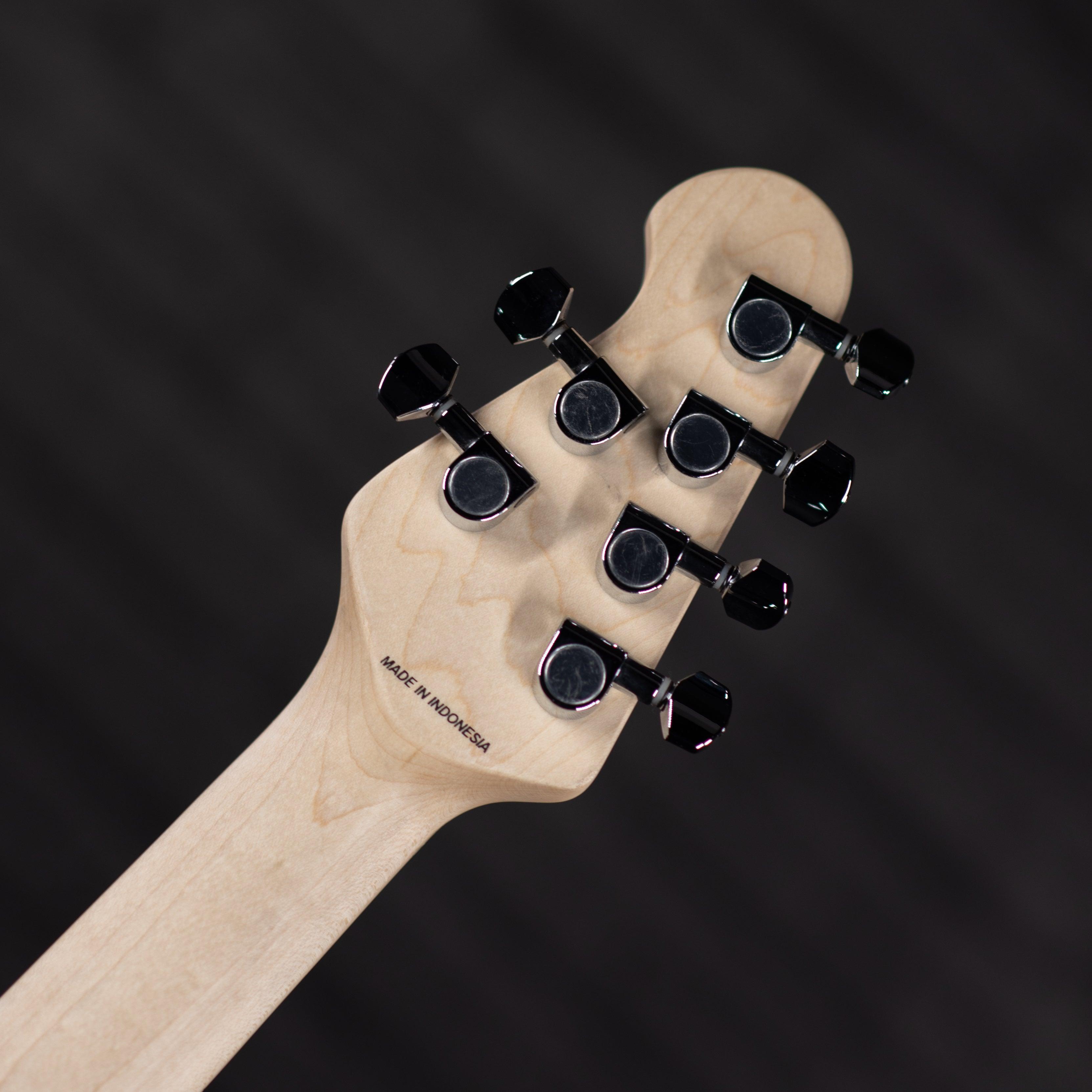 The popular Modern Classic “Cutlass” guitar has returned to Sterling by Music Man, featuring a HSS pickup configuration with 5-way switching, vintage style tremolo, and an oversized 4 + 2 headstock.