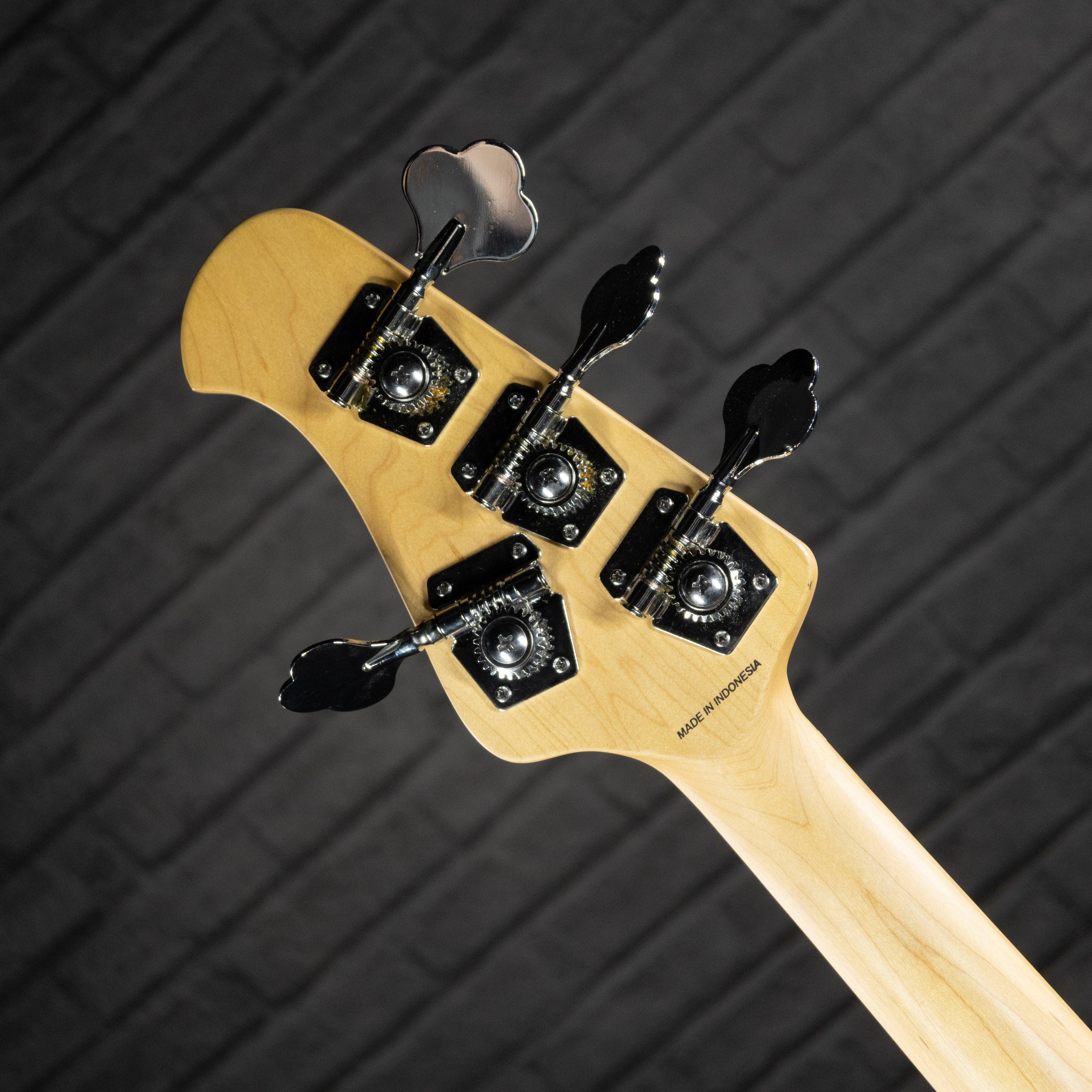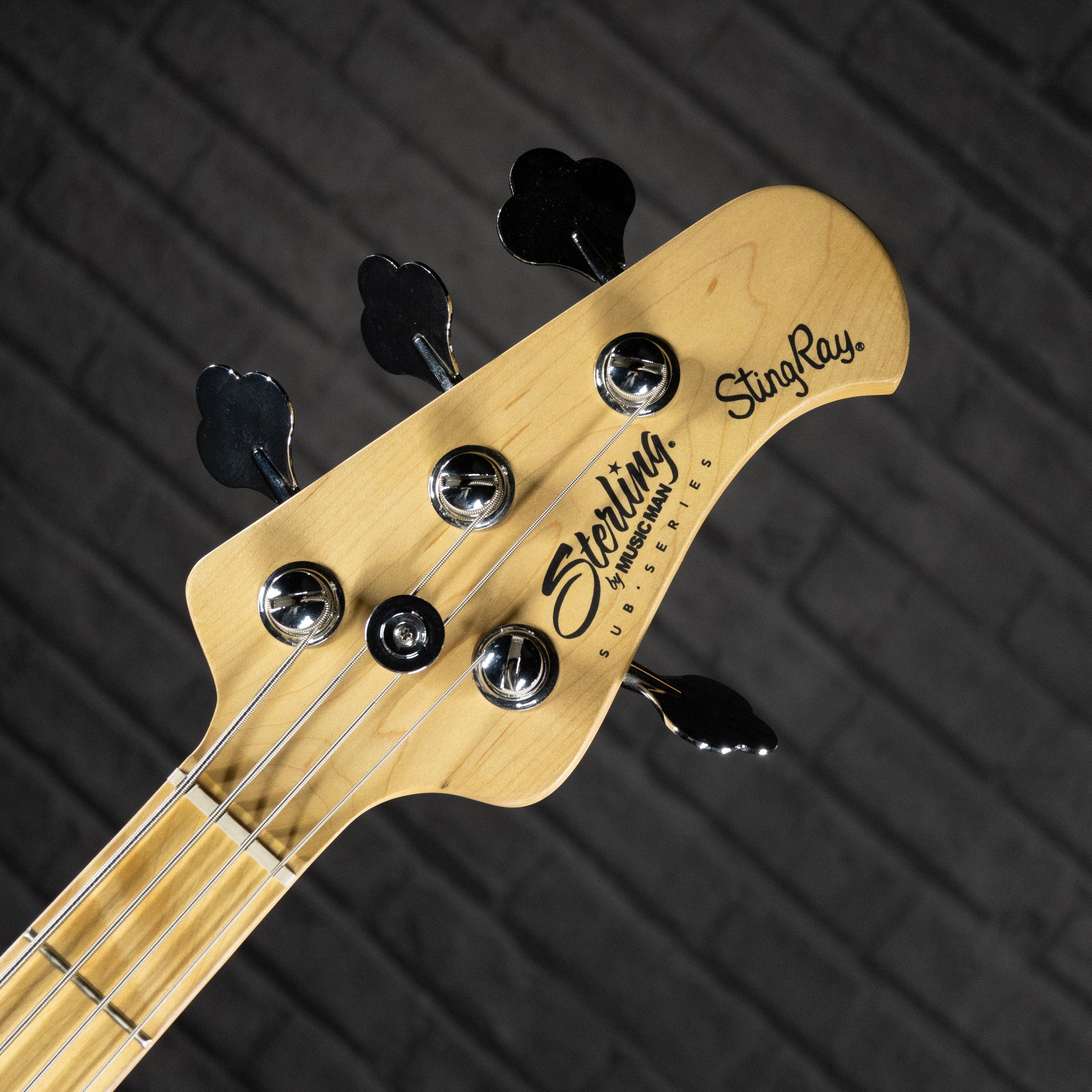 The StingRay Ray4 bass features a 9v active preamp, low noise humbucking pickups, and a fully adjustable heavy duty bridge. The Ray4 comes with a maple fretboard.