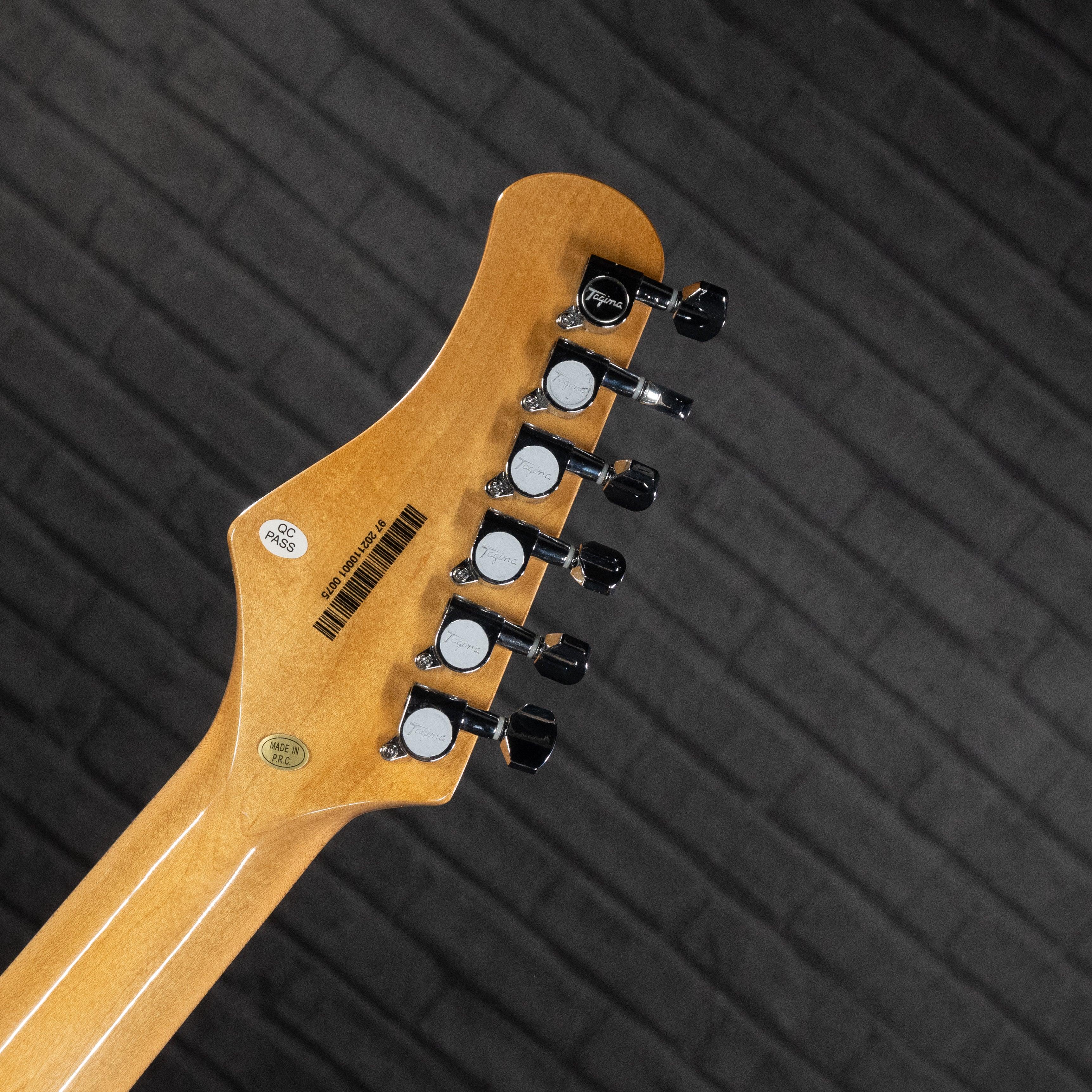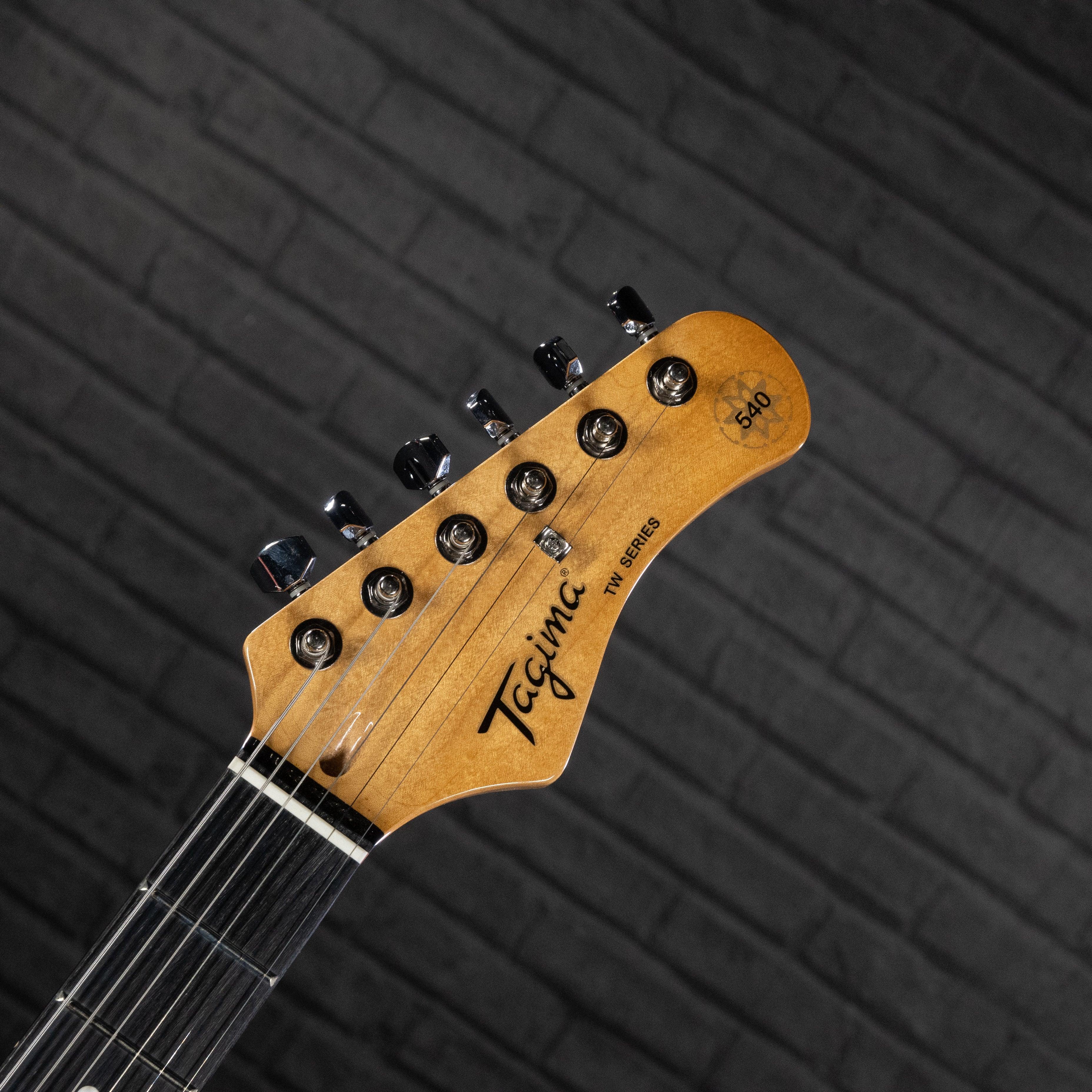 The Tagima TG-540 Electric Guitar: a powerhouse of sound featuring a Basswood body, C-shaped Maple neck, 22 frets on a Maple fingerboard, 1 ceramic humbucker and 2 ceramic single coils. With a 5-way switch and 1 volume and 2 tone controls, this electric guitar is ideal for producing a range of tones. Available in a selection of colors including Olympic White, Black, Sunburst, and Metallic Red.