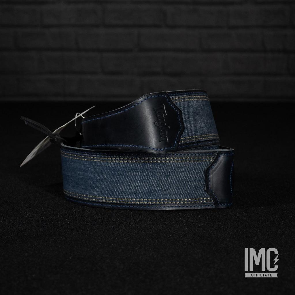 he Taylor Blue Denim Guitar Strap is a perfect harmony of leather and cotton, double-stitched with precision. At 2" wide, this strap provides comfortable support on the shoulder with enough freedom to let you move while you play. It also features a gold embossed Taylor logo and is a true American standard strap. Made in the USA